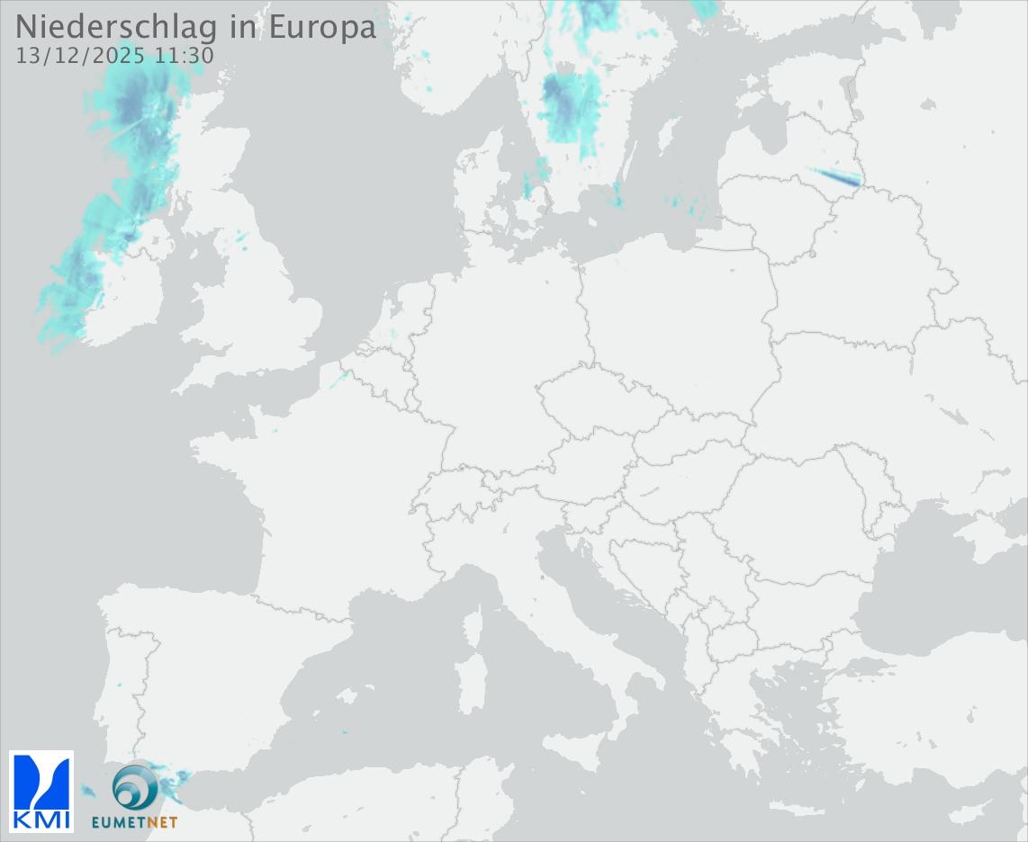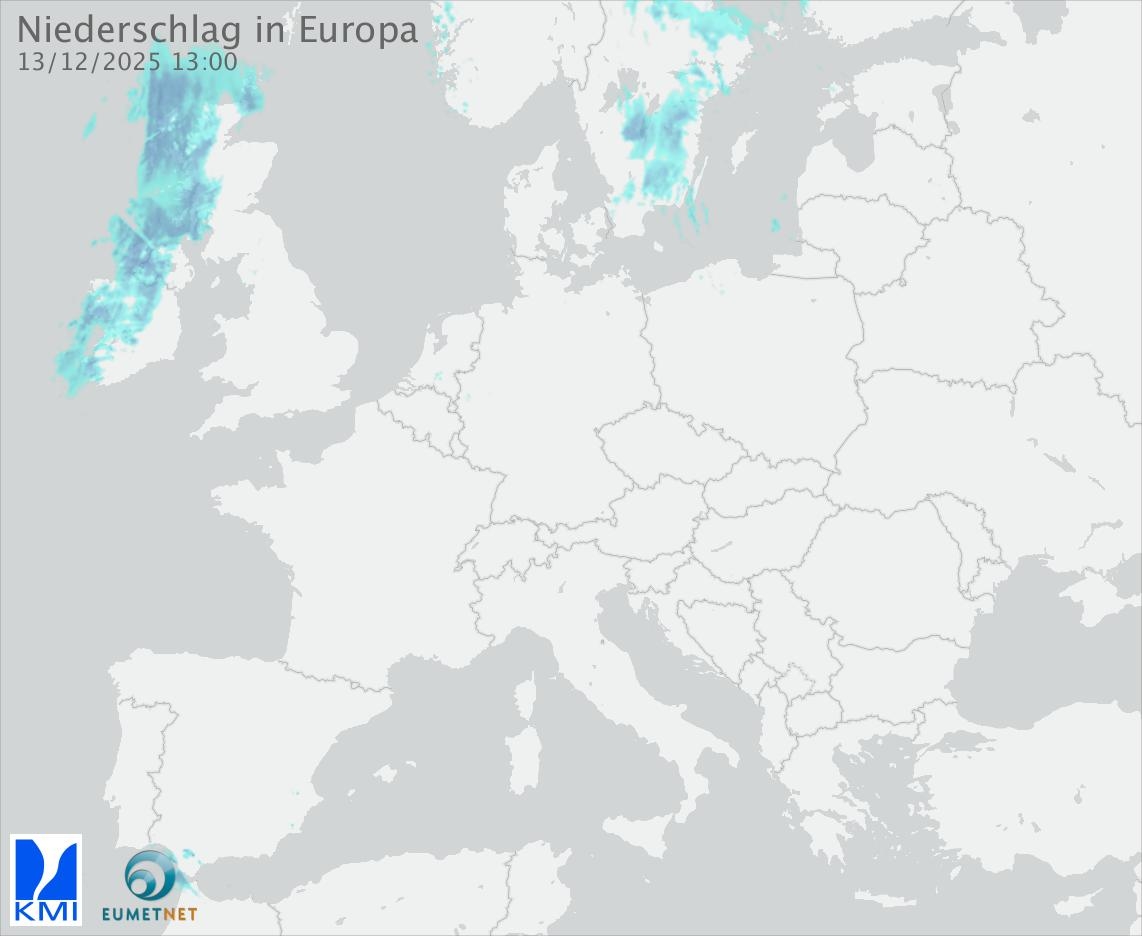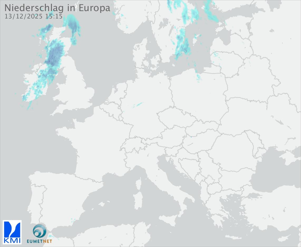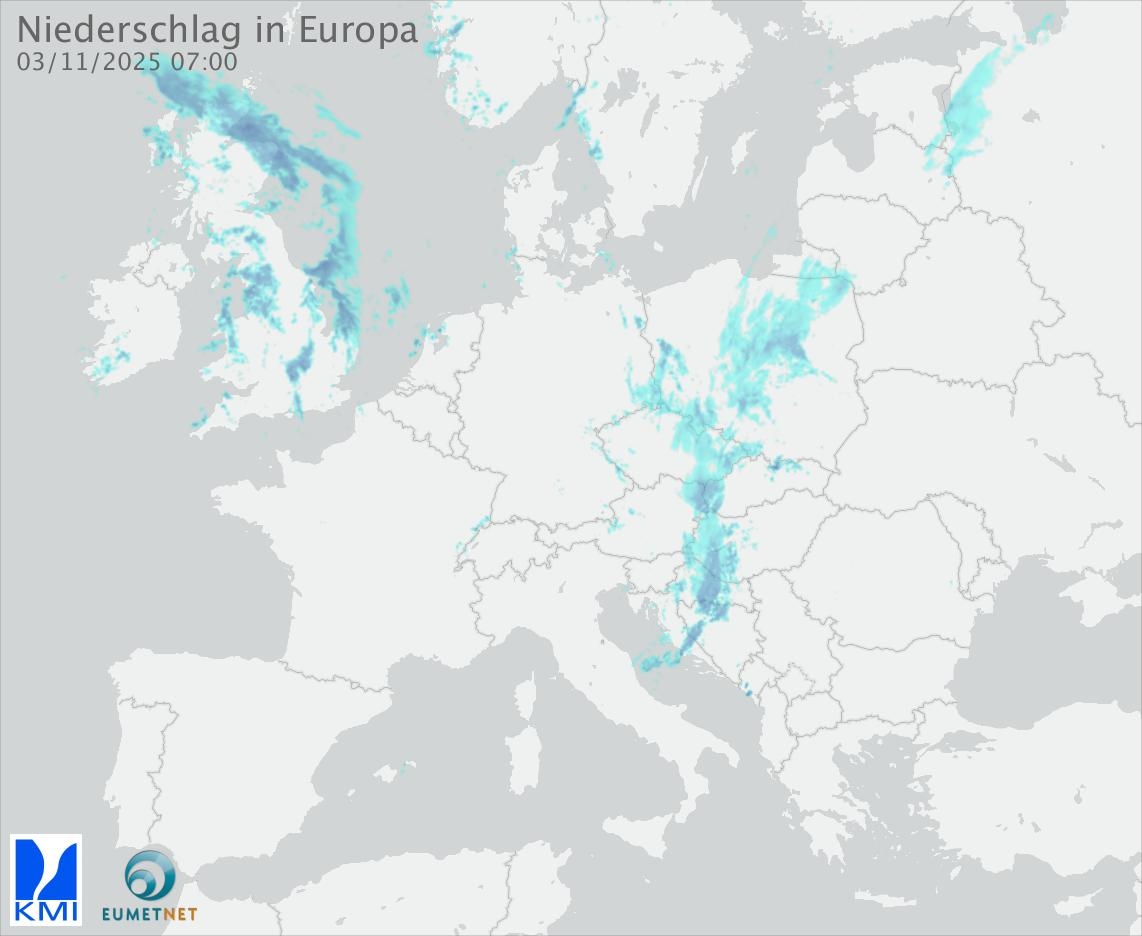 Diese Animation zeigt den gefallenen Niederschlag, gemessen durch die Regenradargeräte der europäischen Teilnehmer des Eumetnet-Programms OPERA (in 15-Minuten-Intervallen).