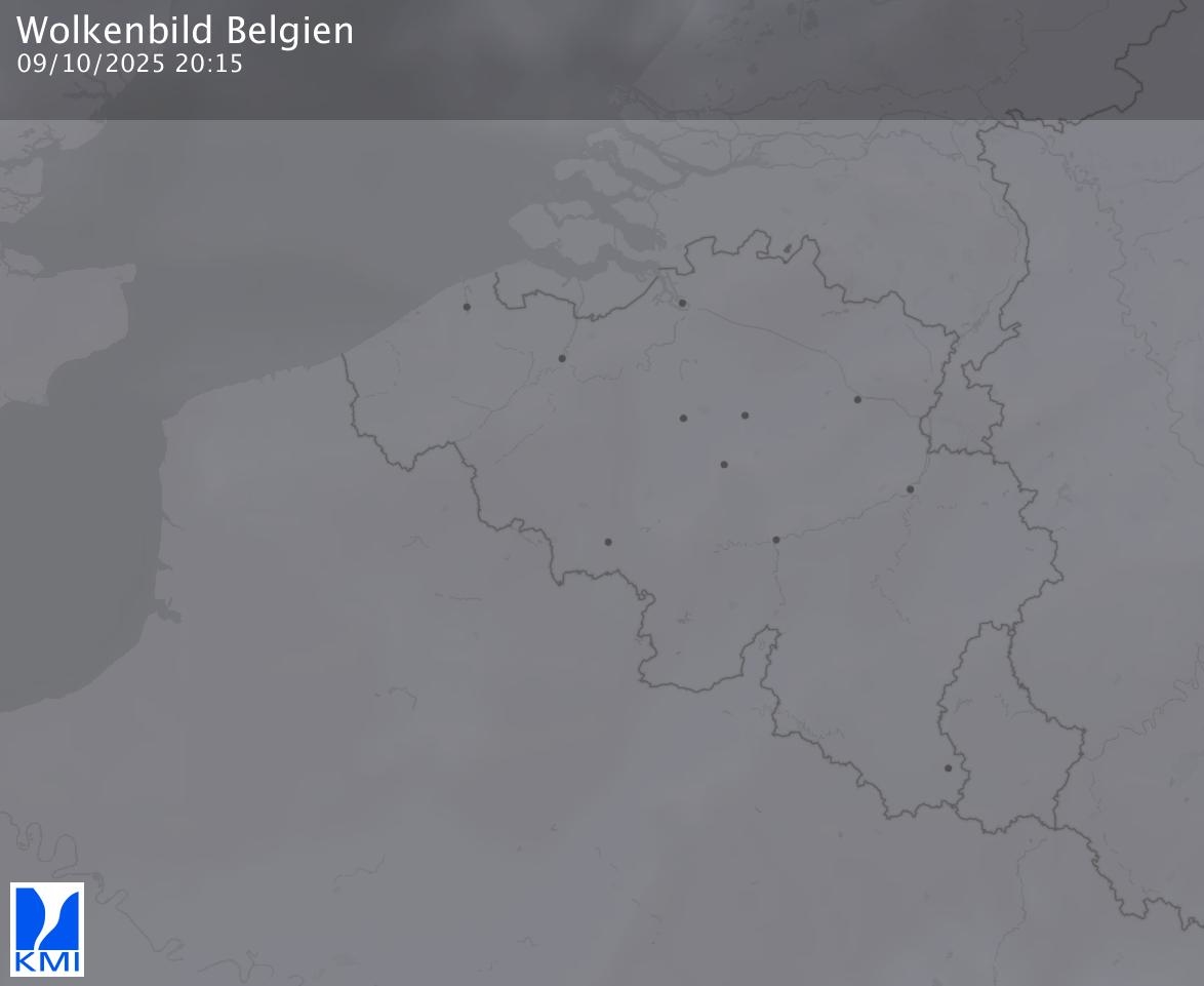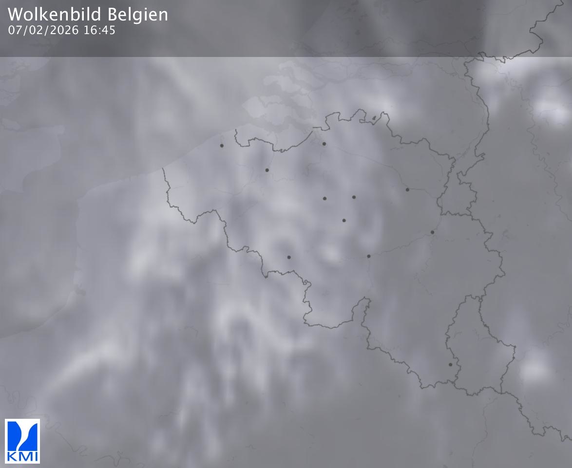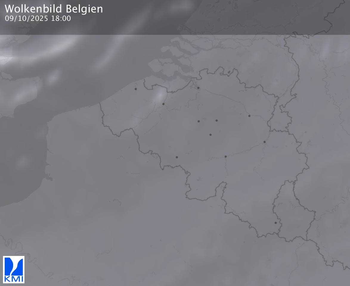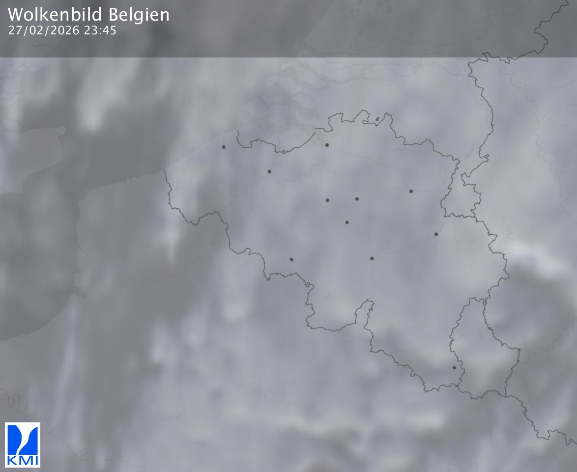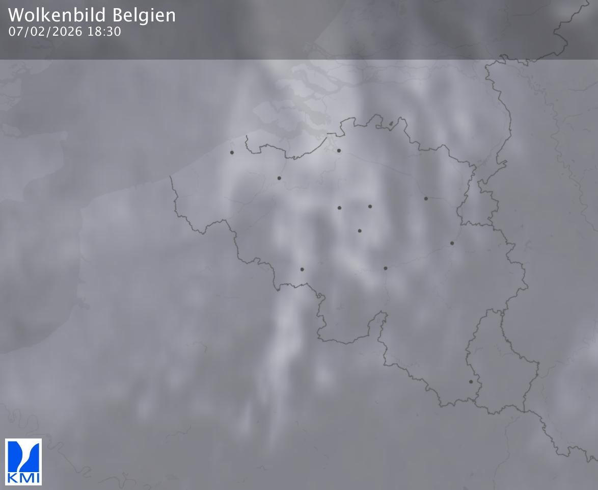 Das Wolkenbild Belgiens ist eine Kombination der sichtbaren und Infrarotkanäle des Satelliten.