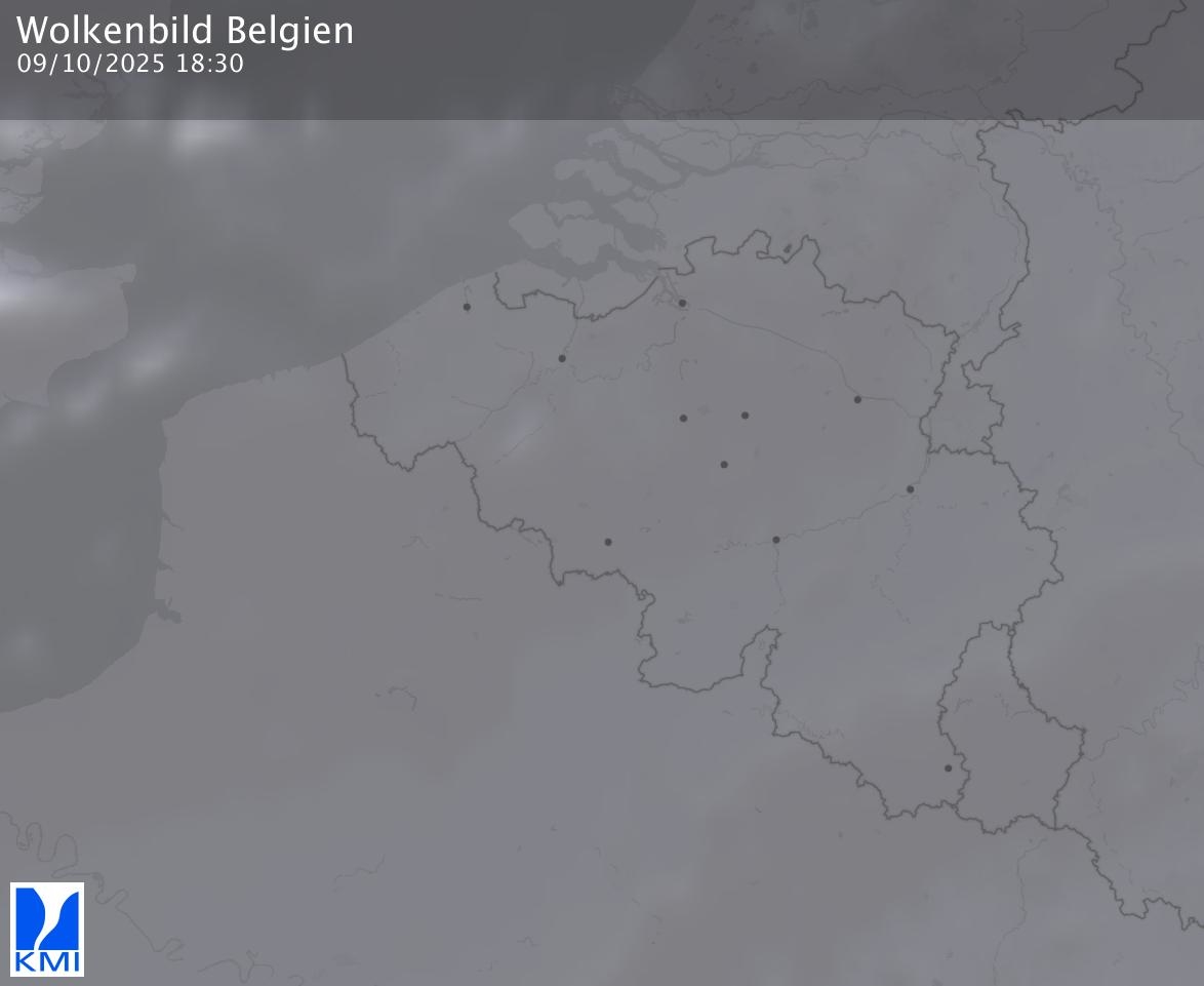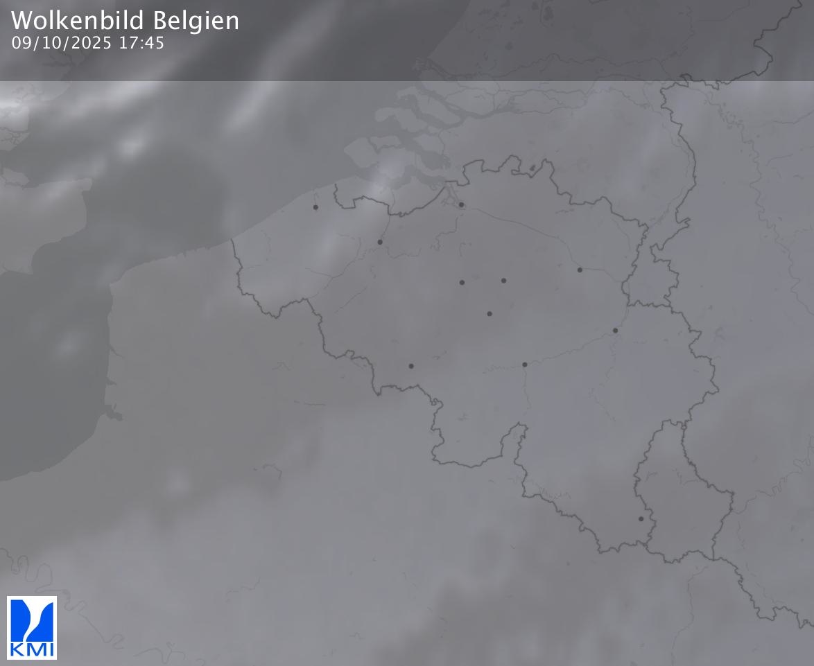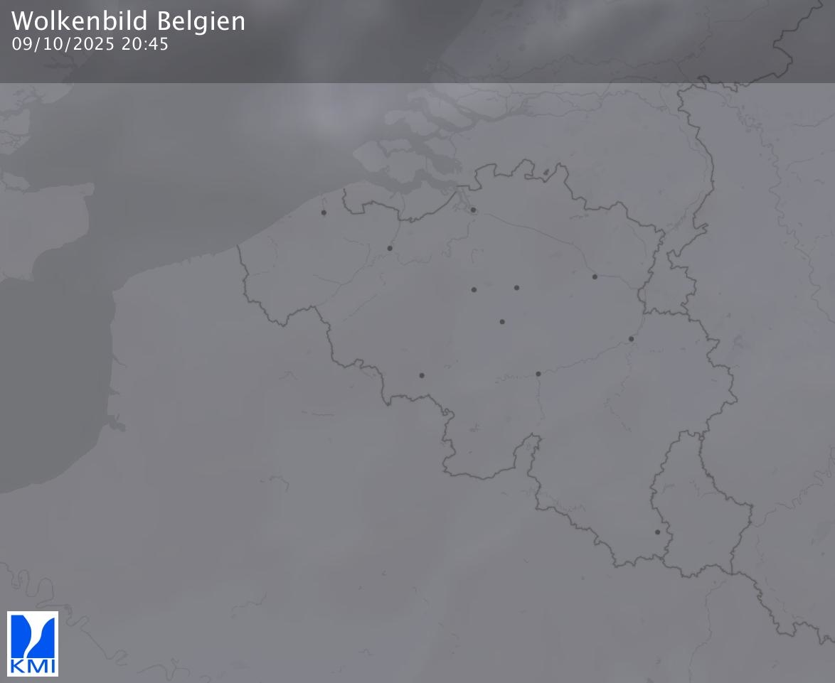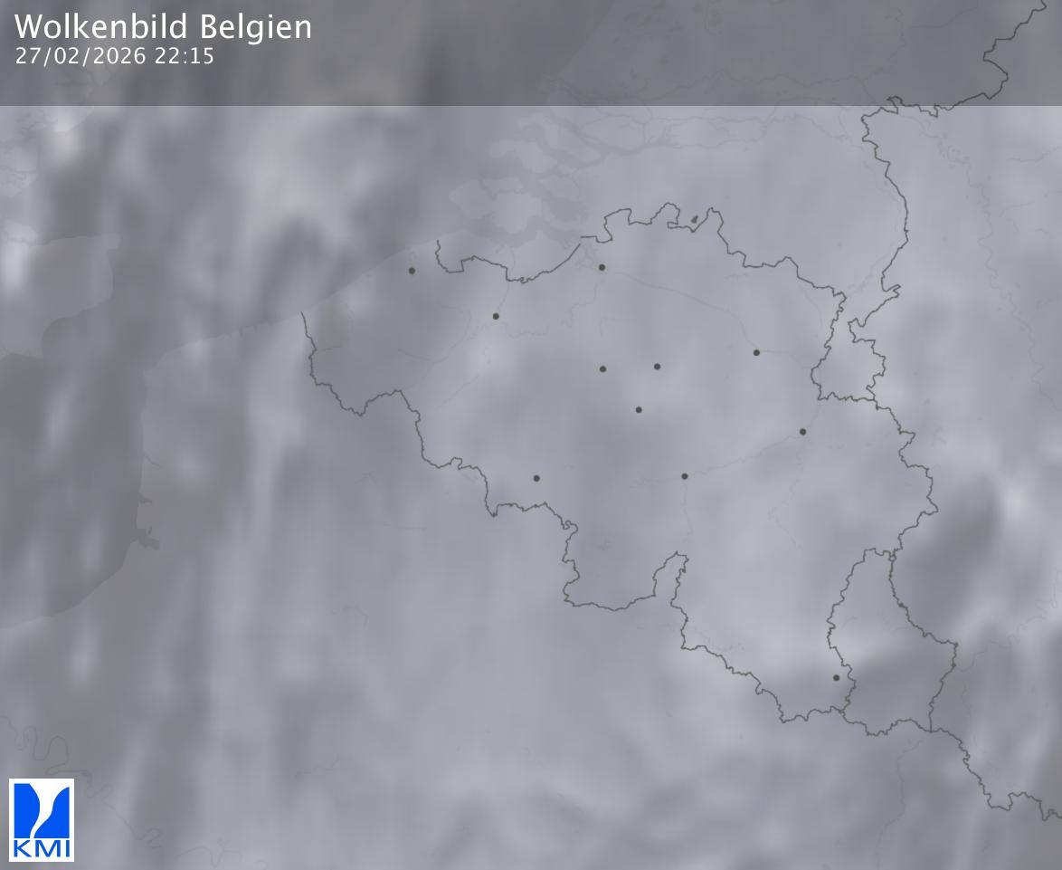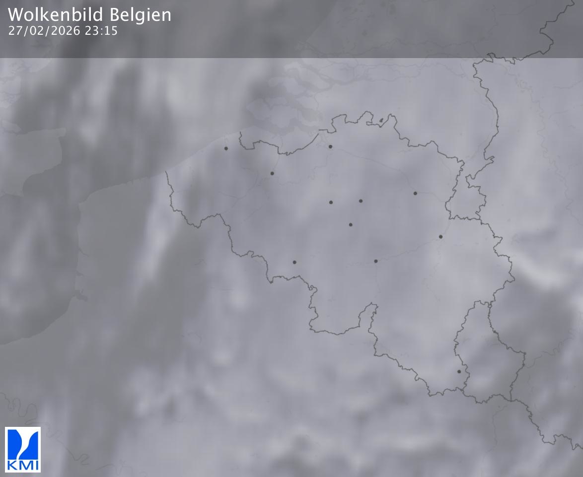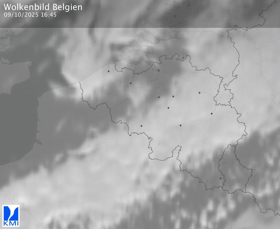 Das Wolkenbild Belgiens ist eine Kombination der sichtbaren und Infrarotkanäle des Satelliten.