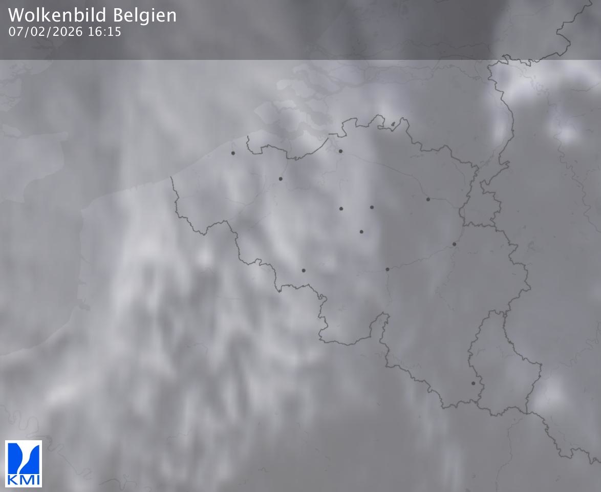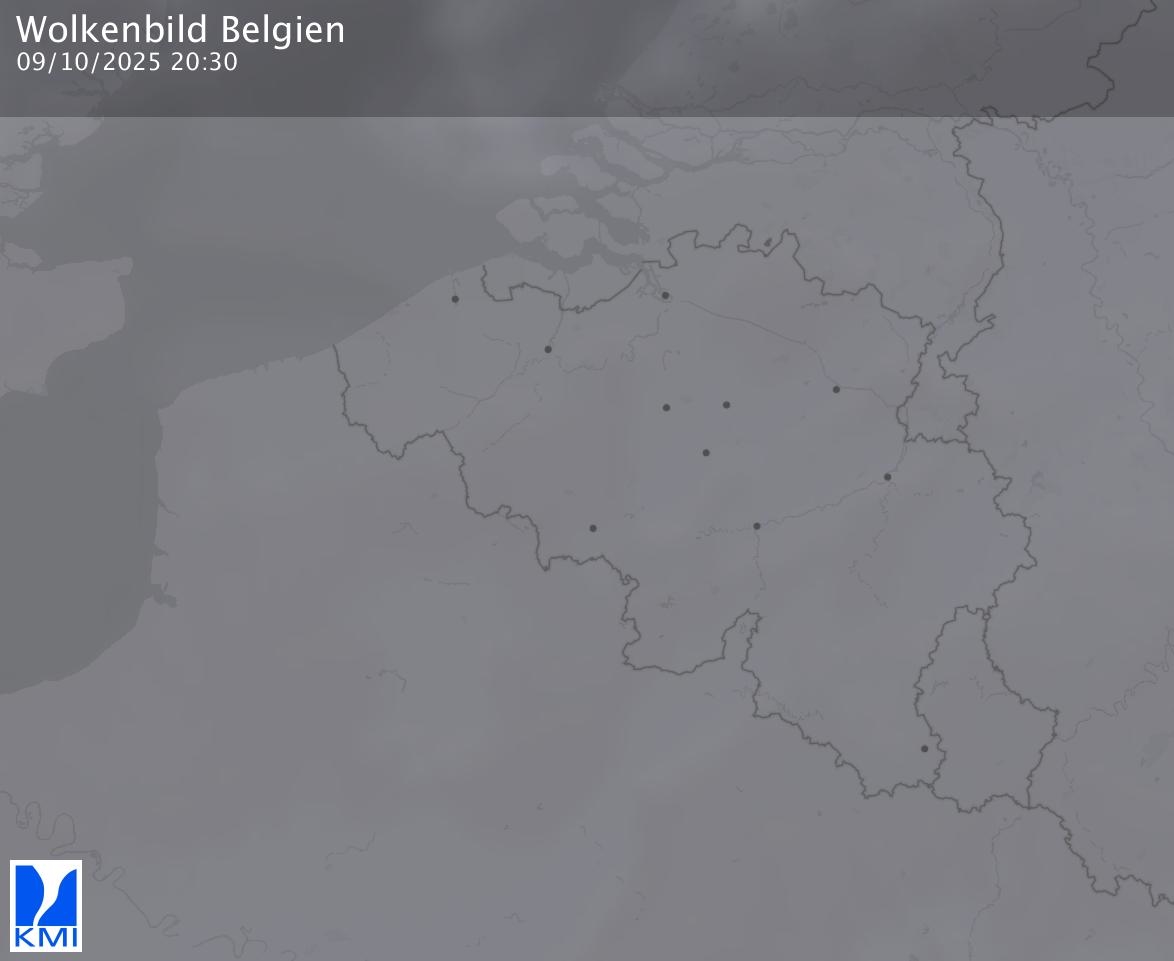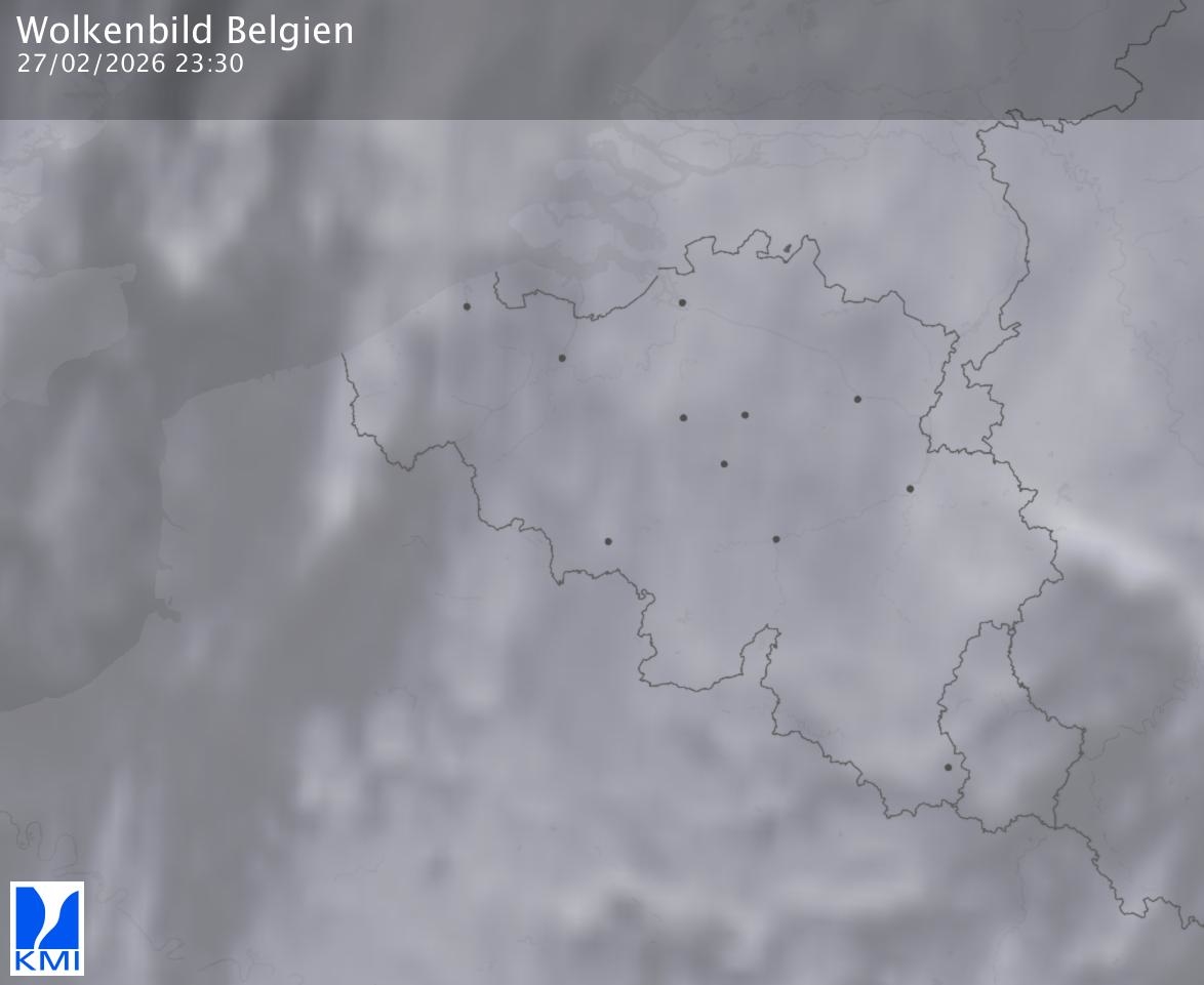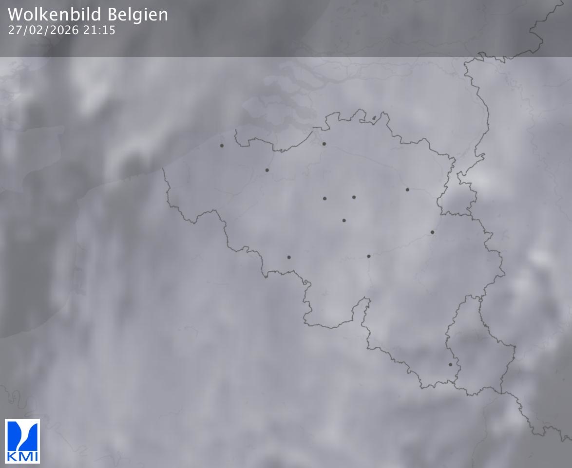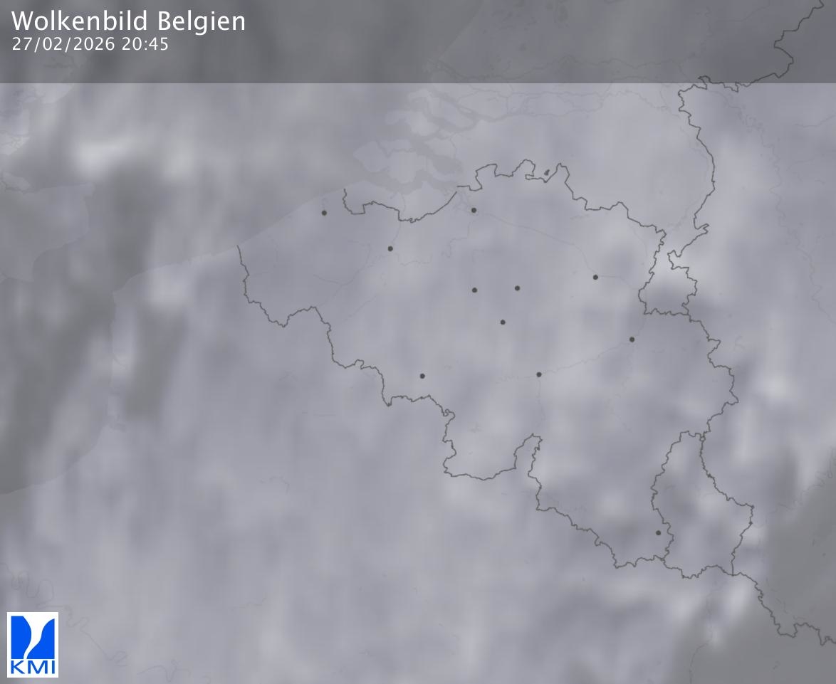 Das Wolkenbild Belgiens ist eine Kombination der sichtbaren und Infrarotkanäle des Satelliten.