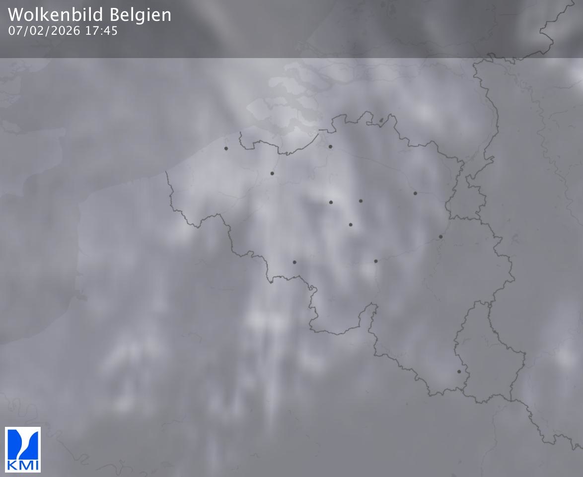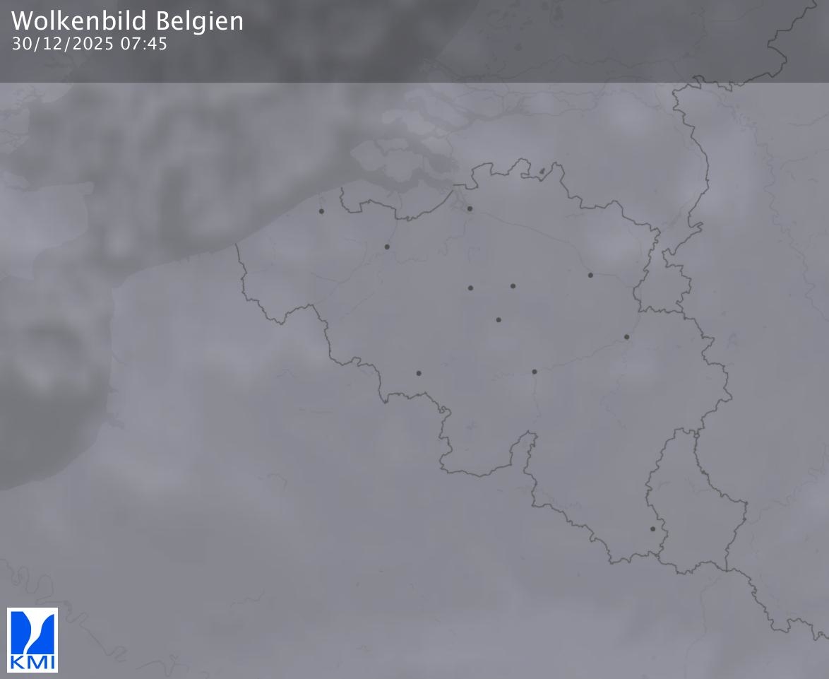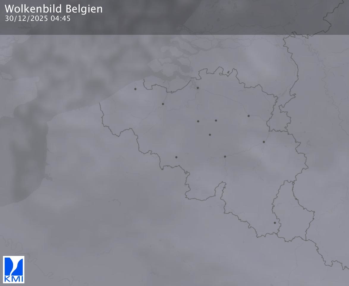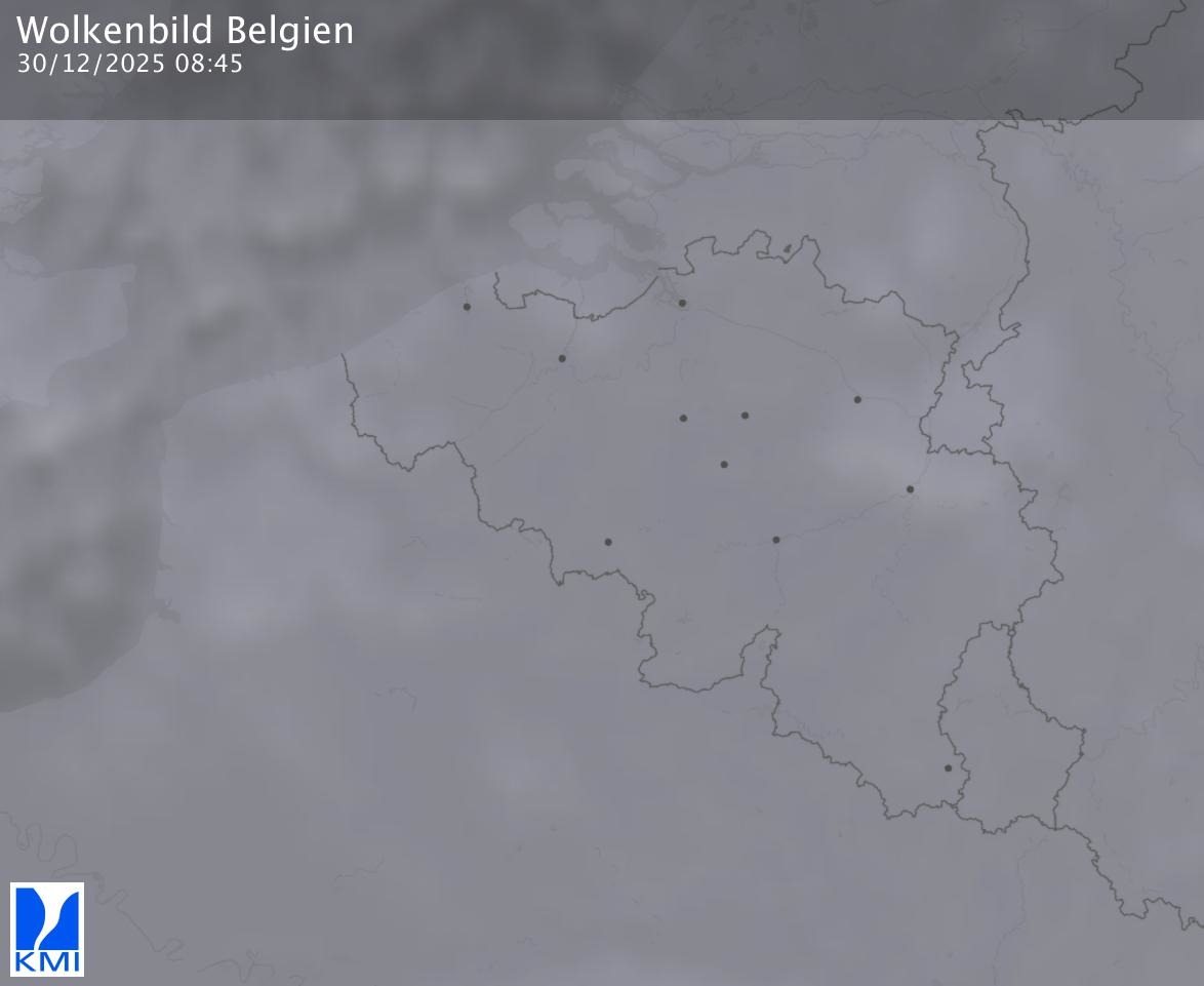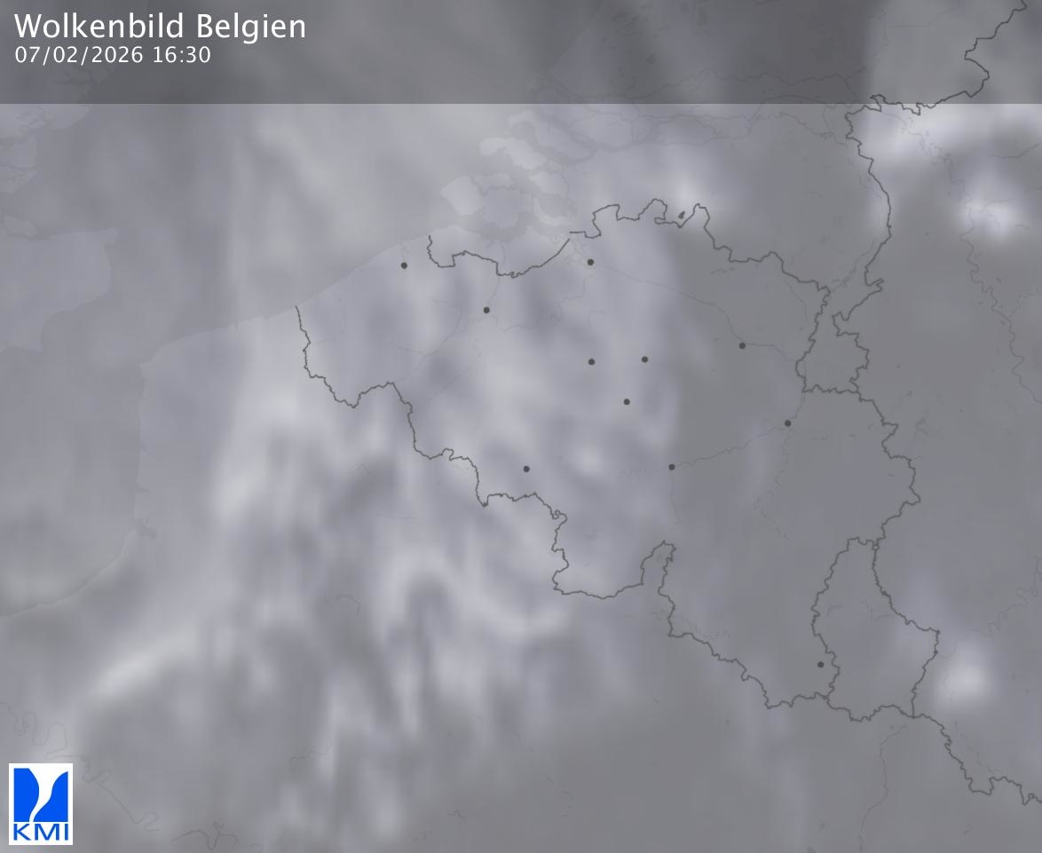 Das Wolkenbild Belgiens ist eine Kombination der sichtbaren und Infrarotkanäle des Satelliten.