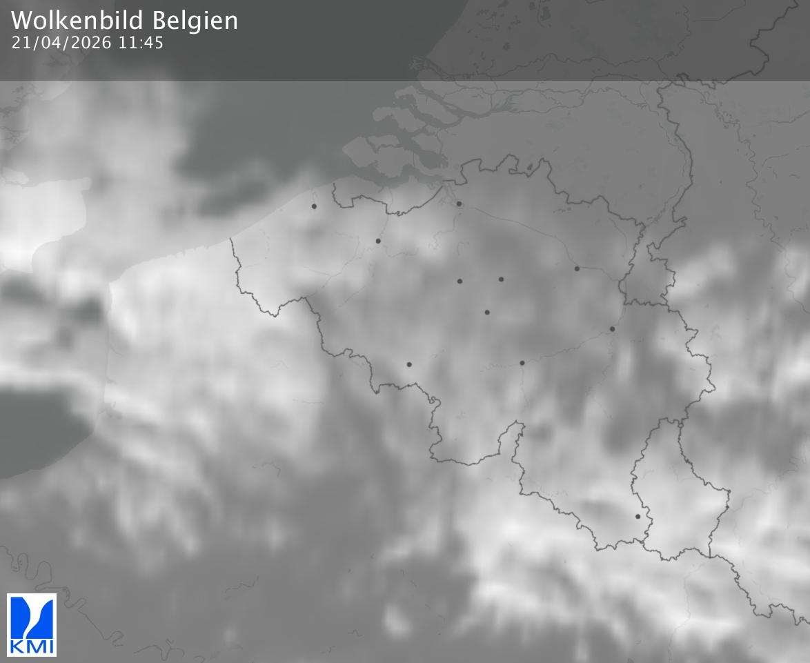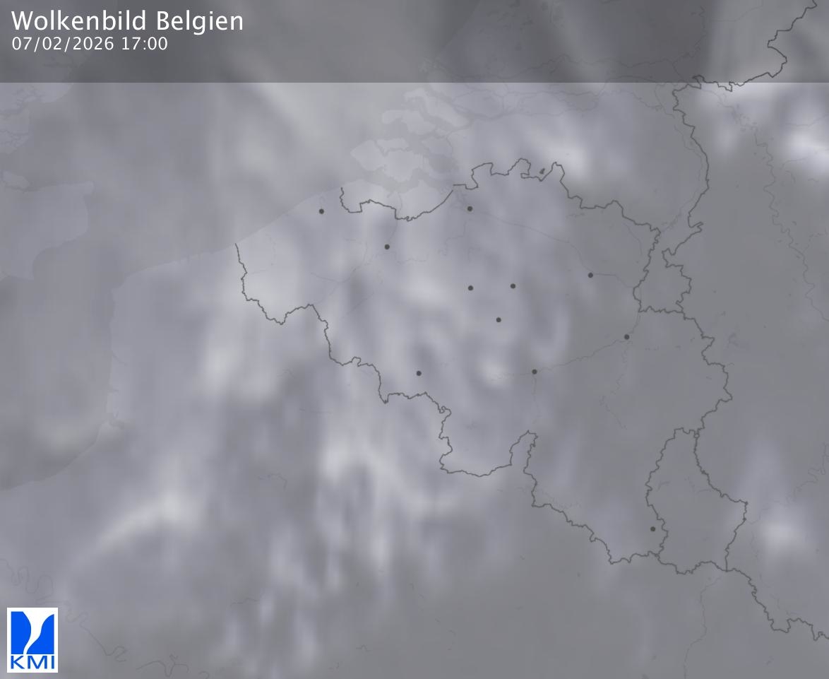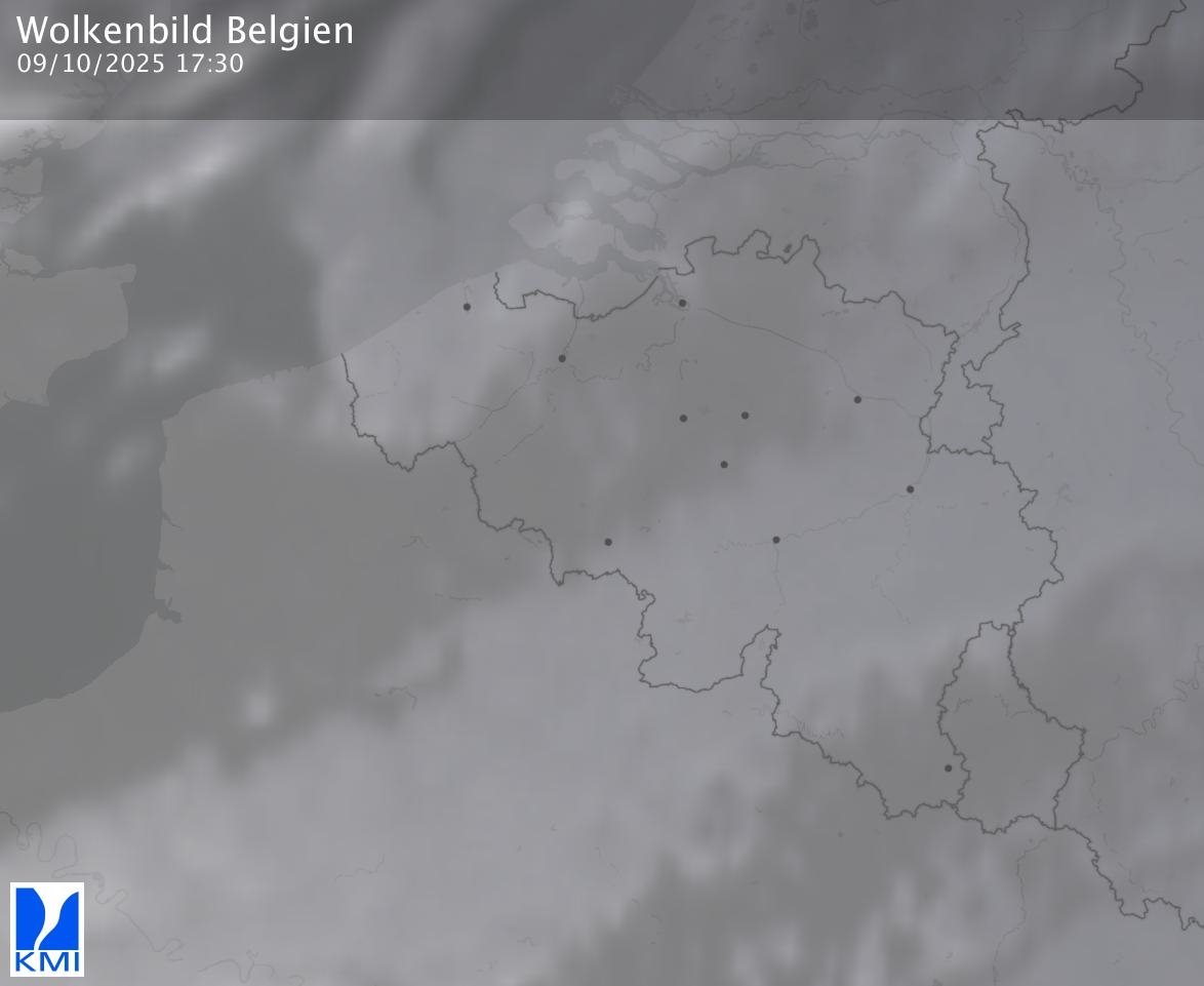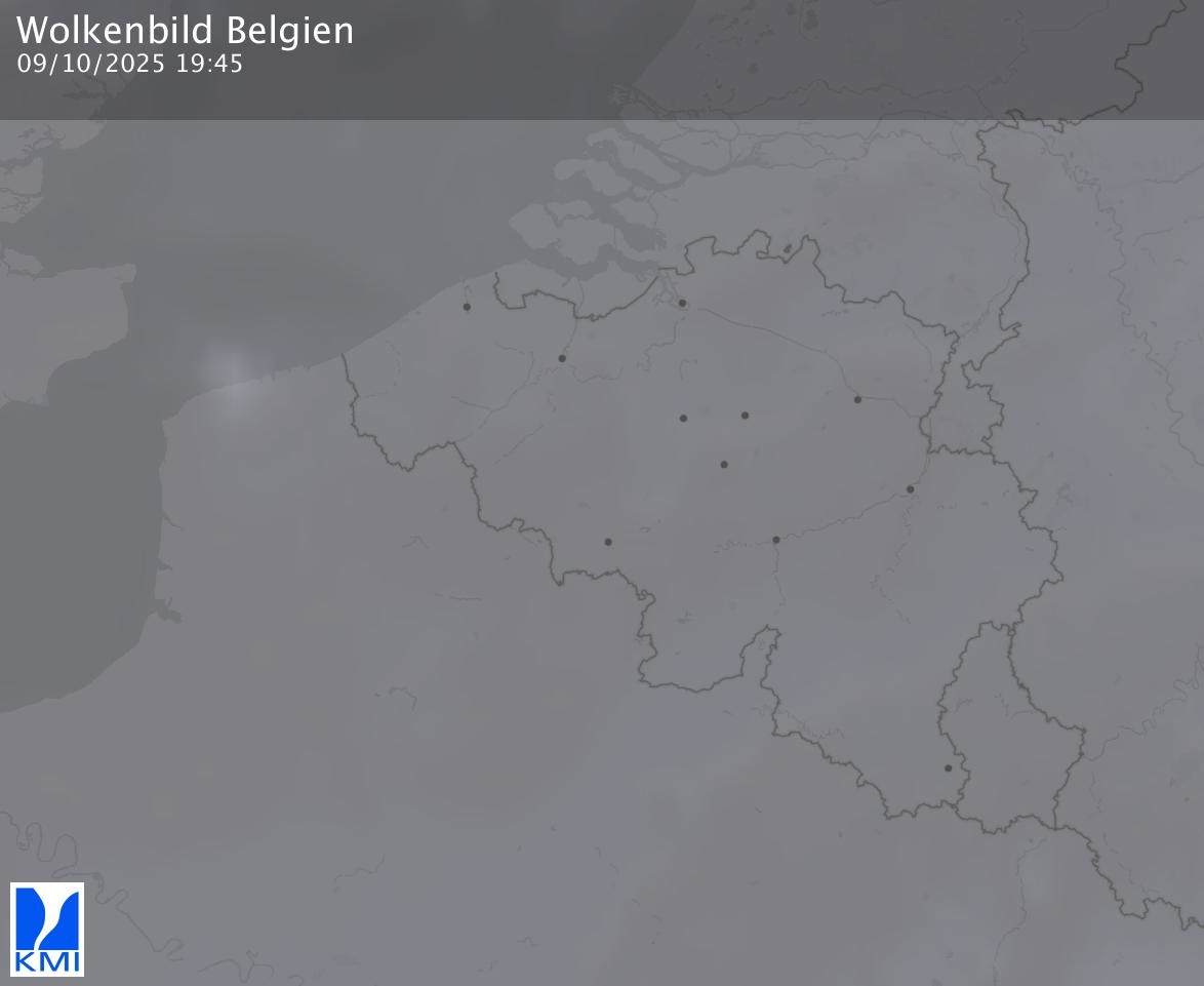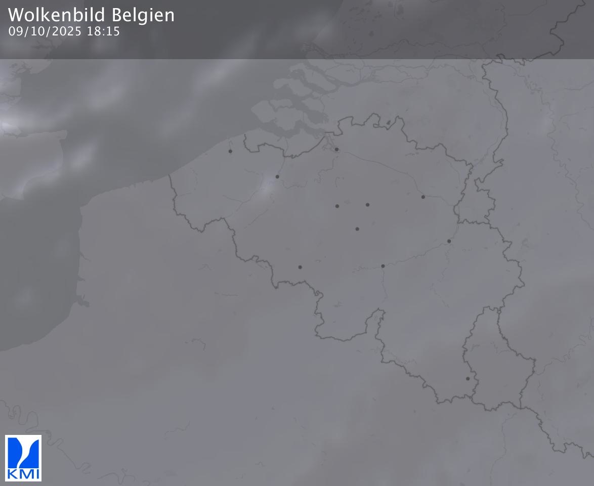 Das Wolkenbild Belgiens ist eine Kombination der sichtbaren und Infrarotkanäle des Satelliten.
