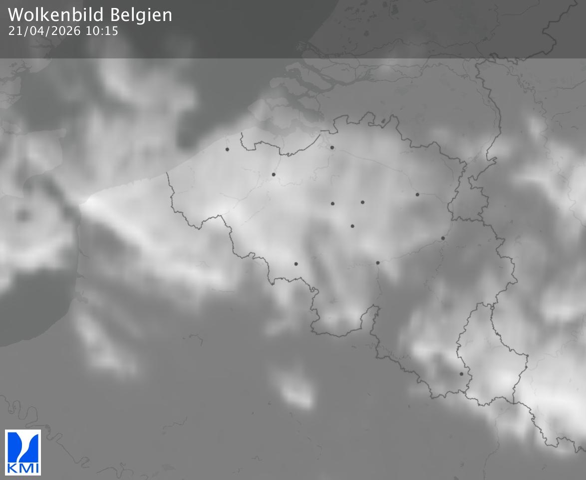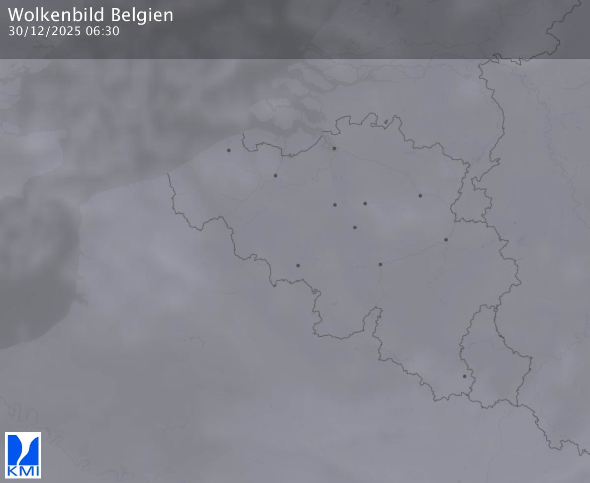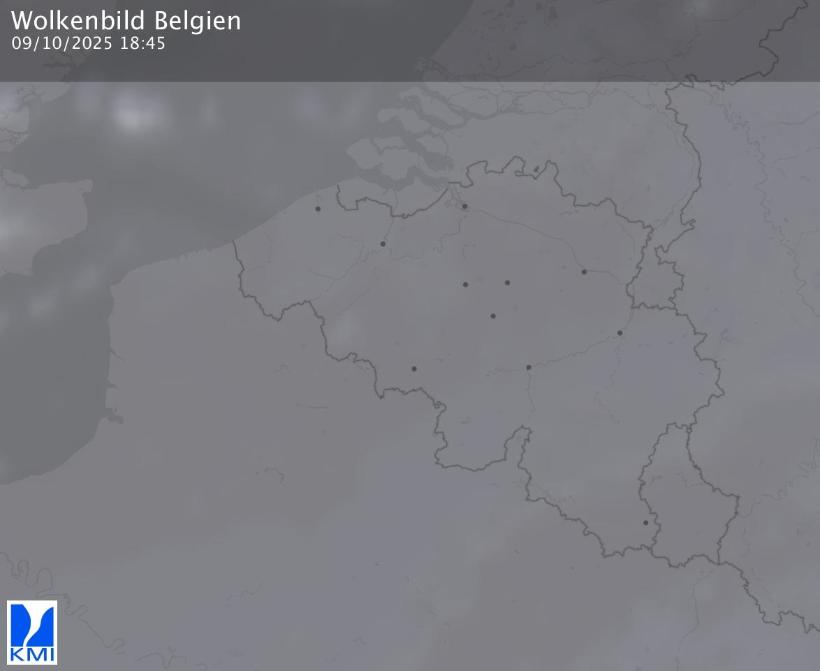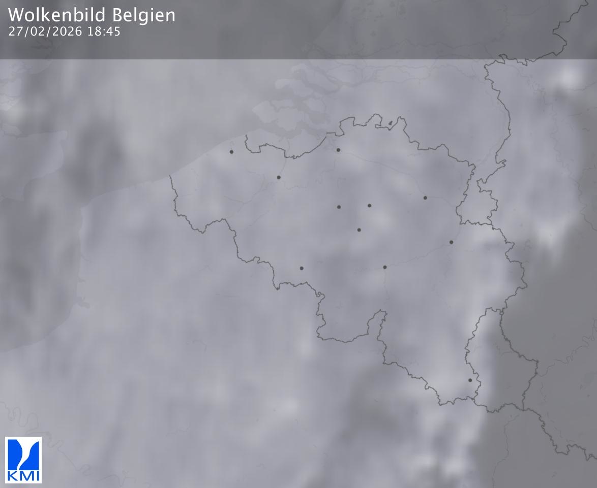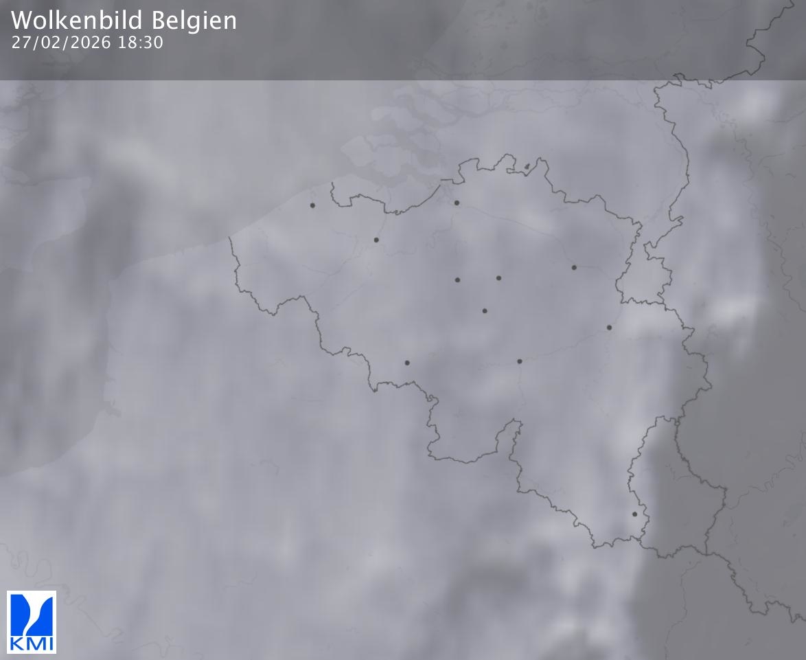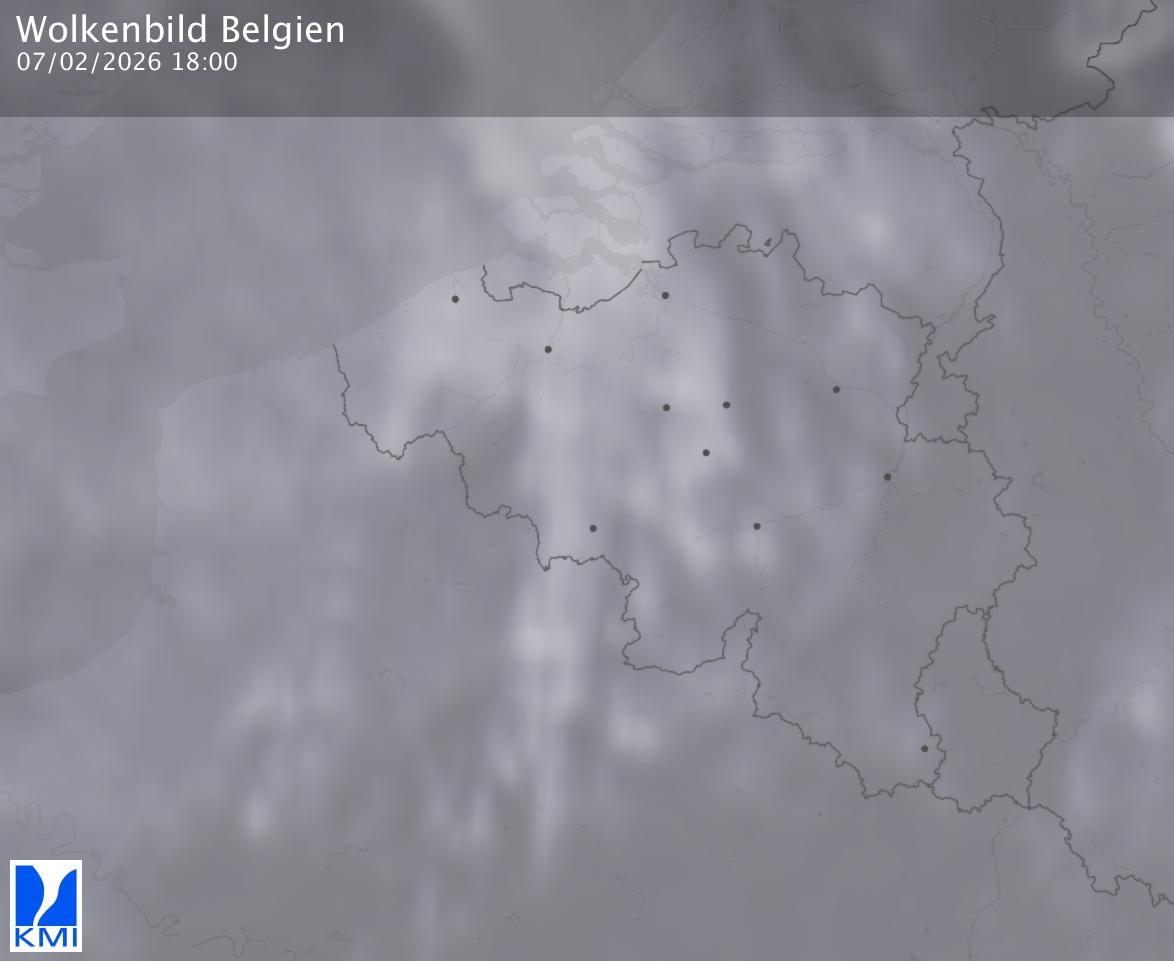Das Wolkenbild Belgiens ist eine Kombination der sichtbaren und Infrarotkanäle des Satelliten.