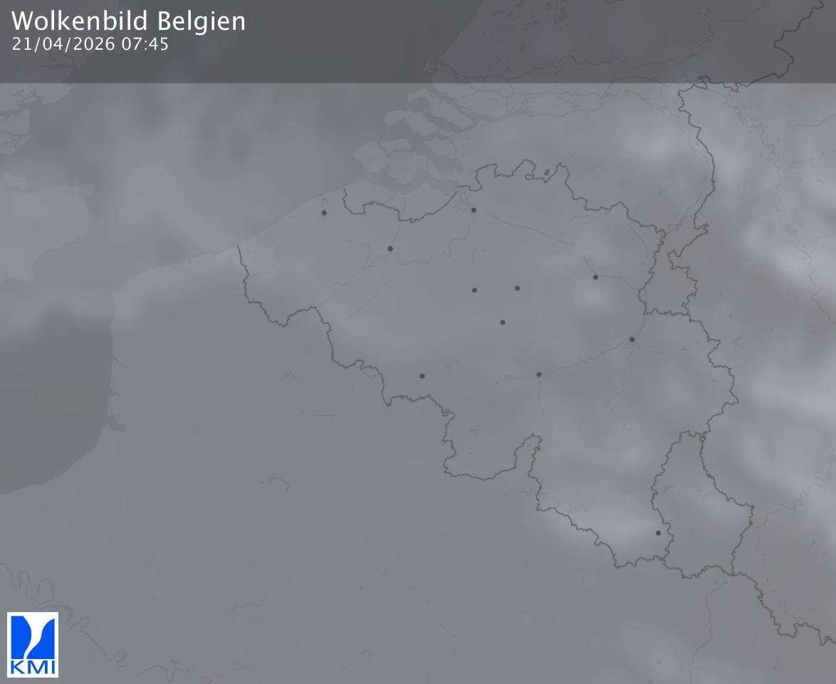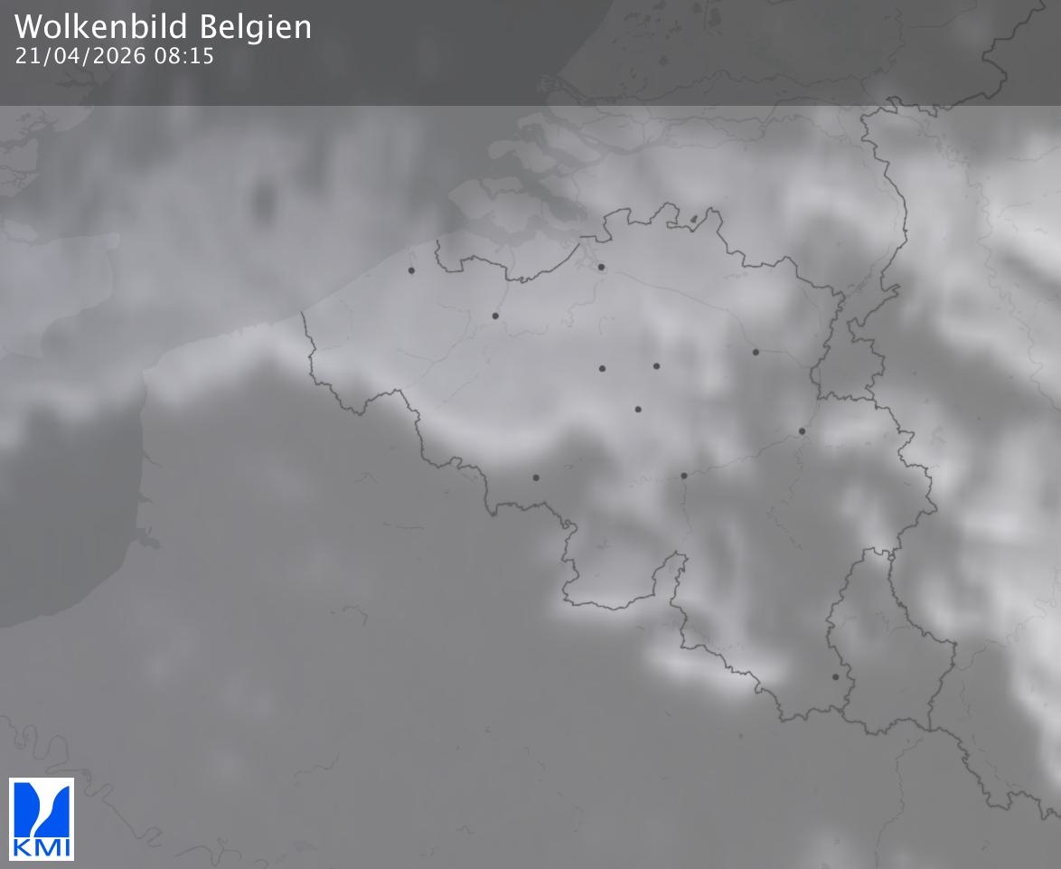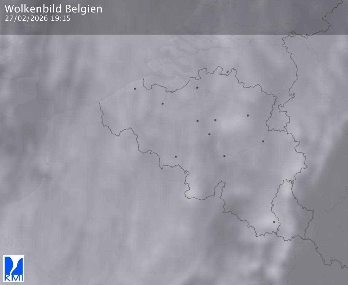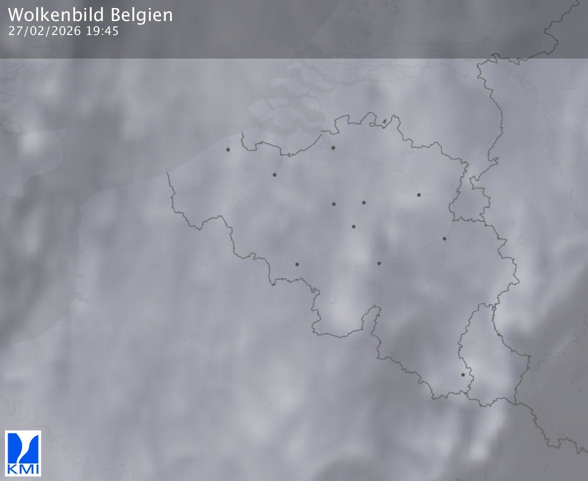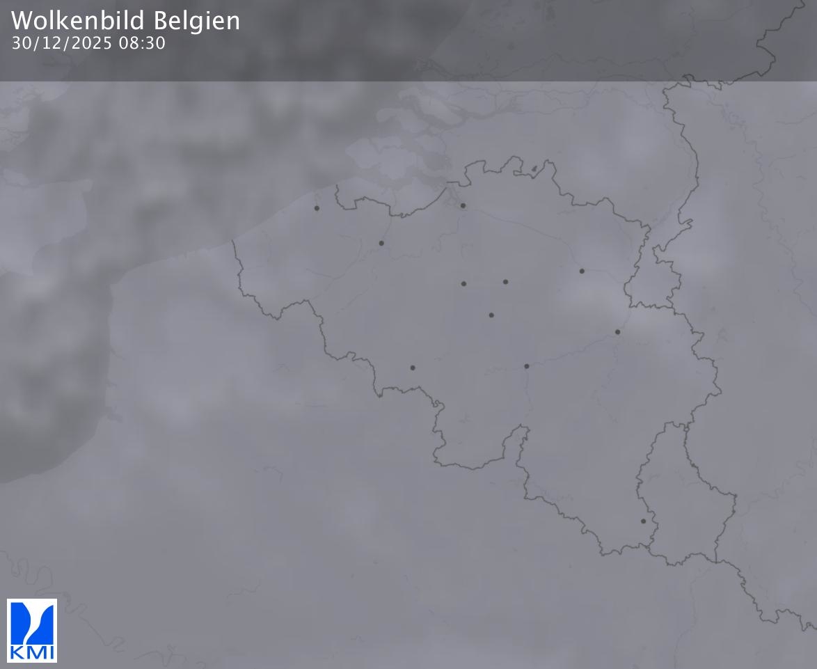 Das Wolkenbild Belgiens ist eine Kombination der sichtbaren und Infrarotkanäle des Satelliten.