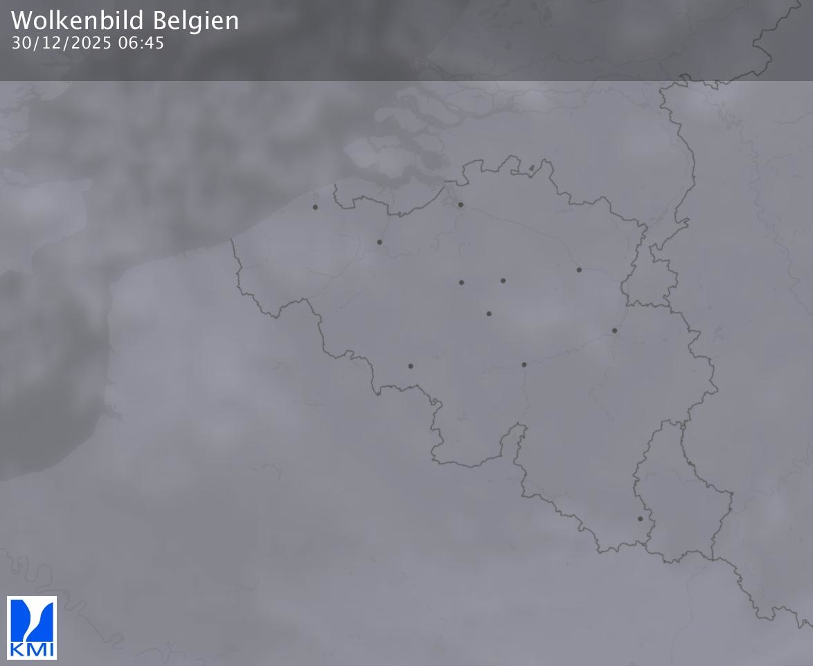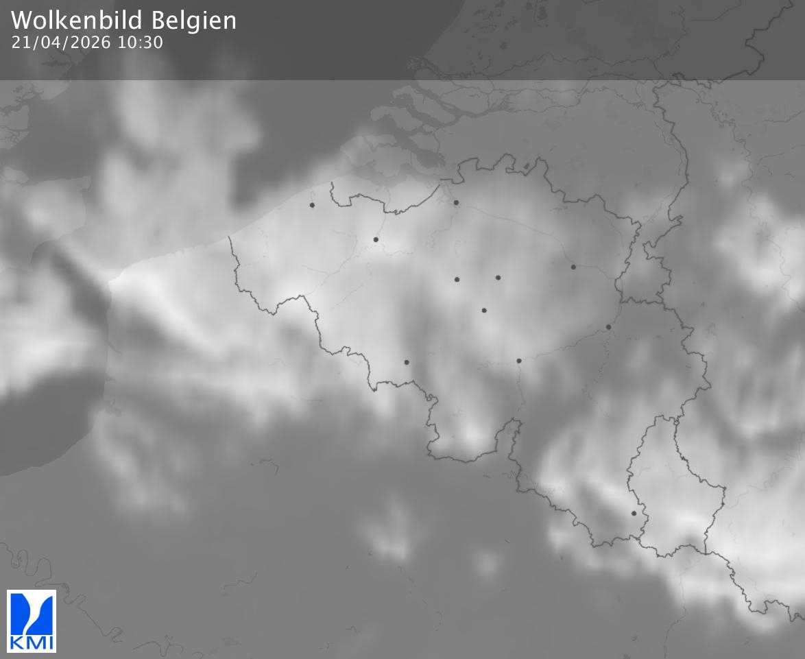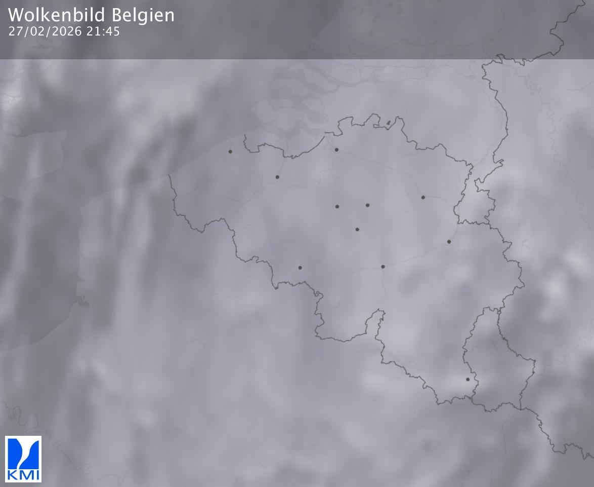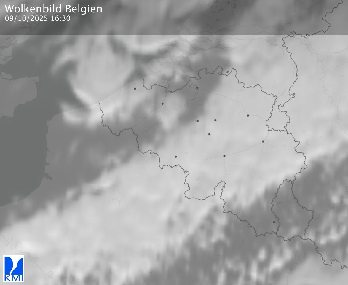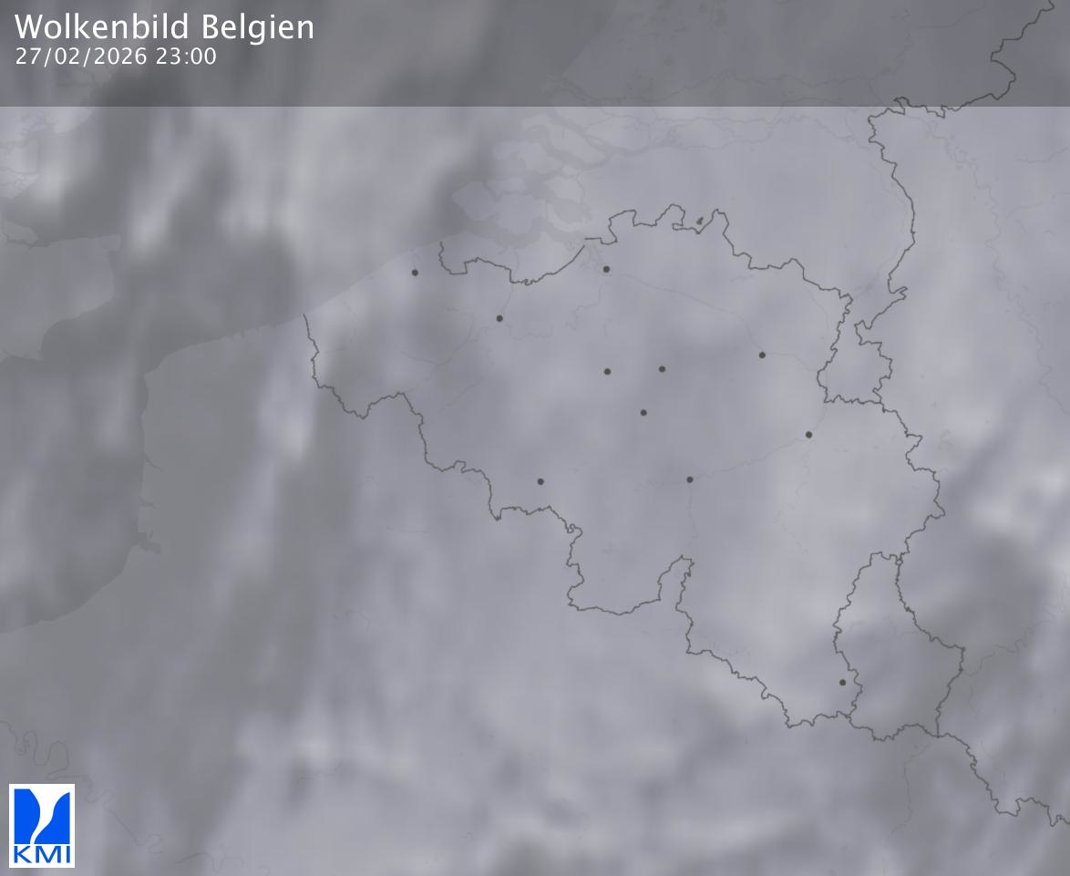 Das Wolkenbild Belgiens ist eine Kombination der sichtbaren und Infrarotkanäle des Satelliten.