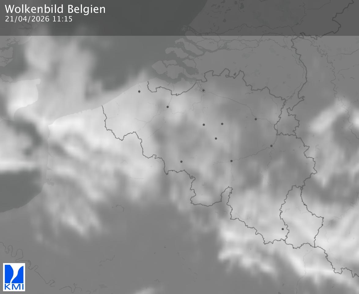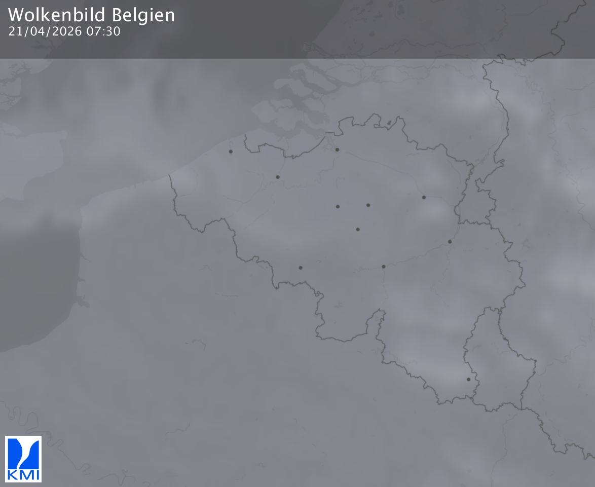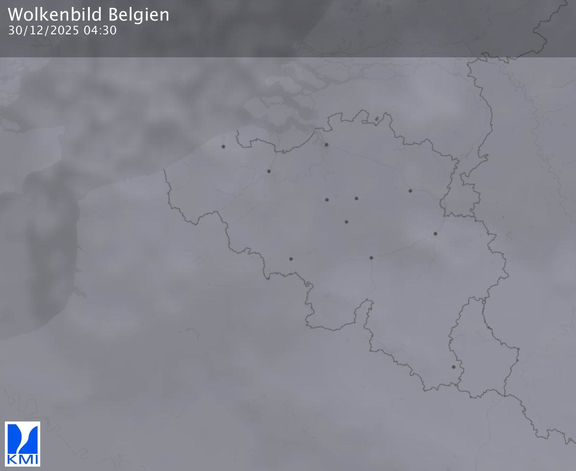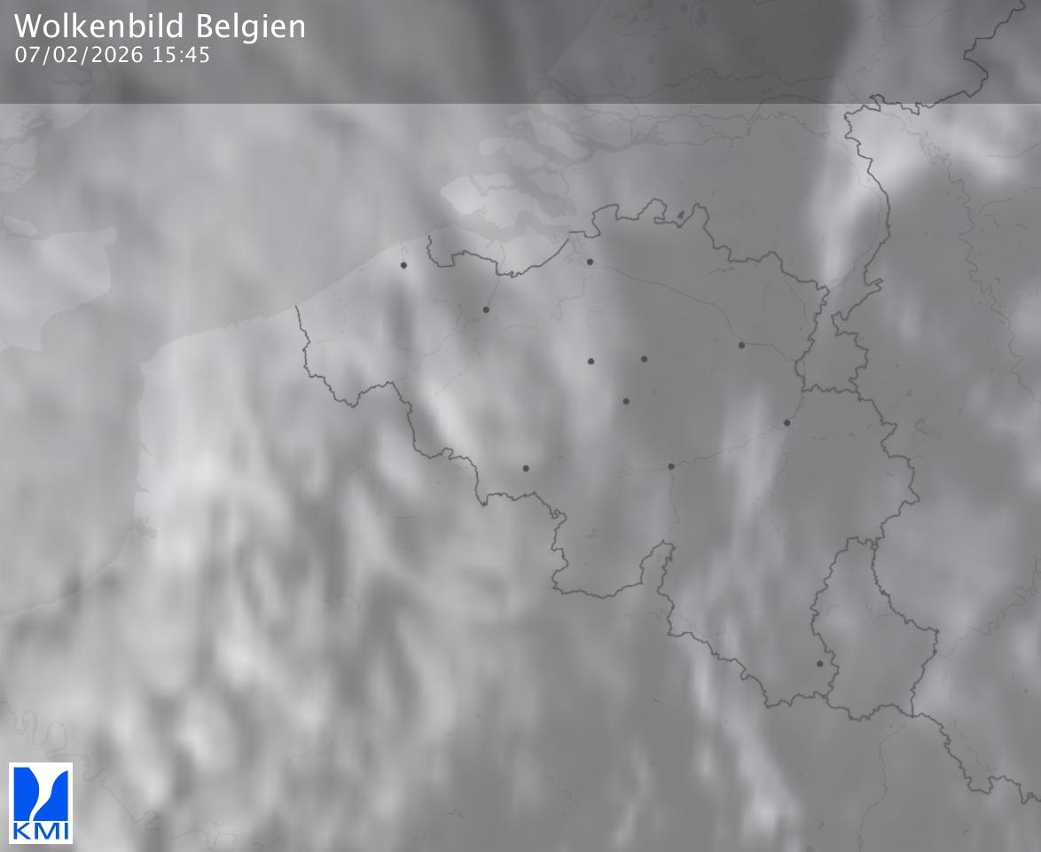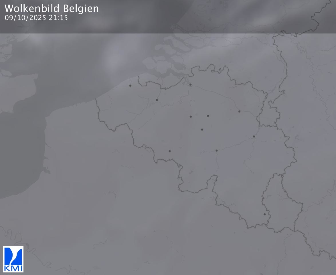 Das Wolkenbild Belgiens ist eine Kombination der sichtbaren und Infrarotkanäle des Satelliten.