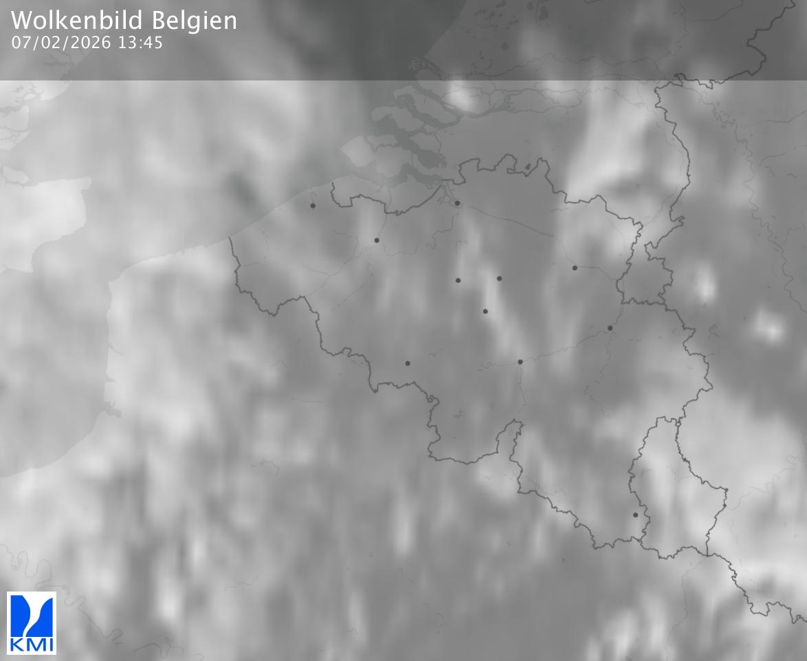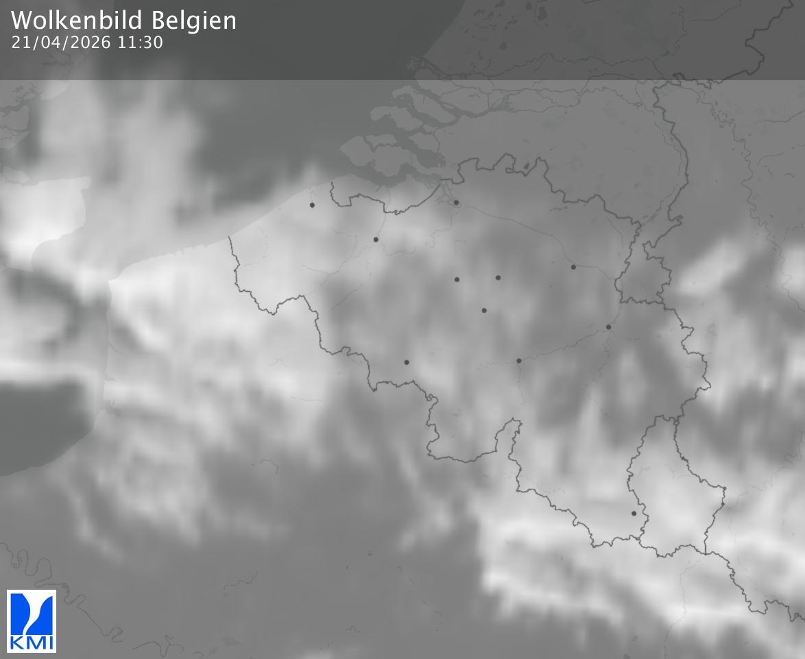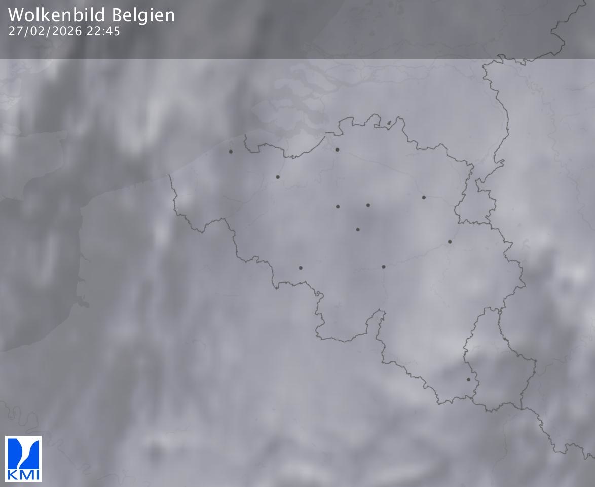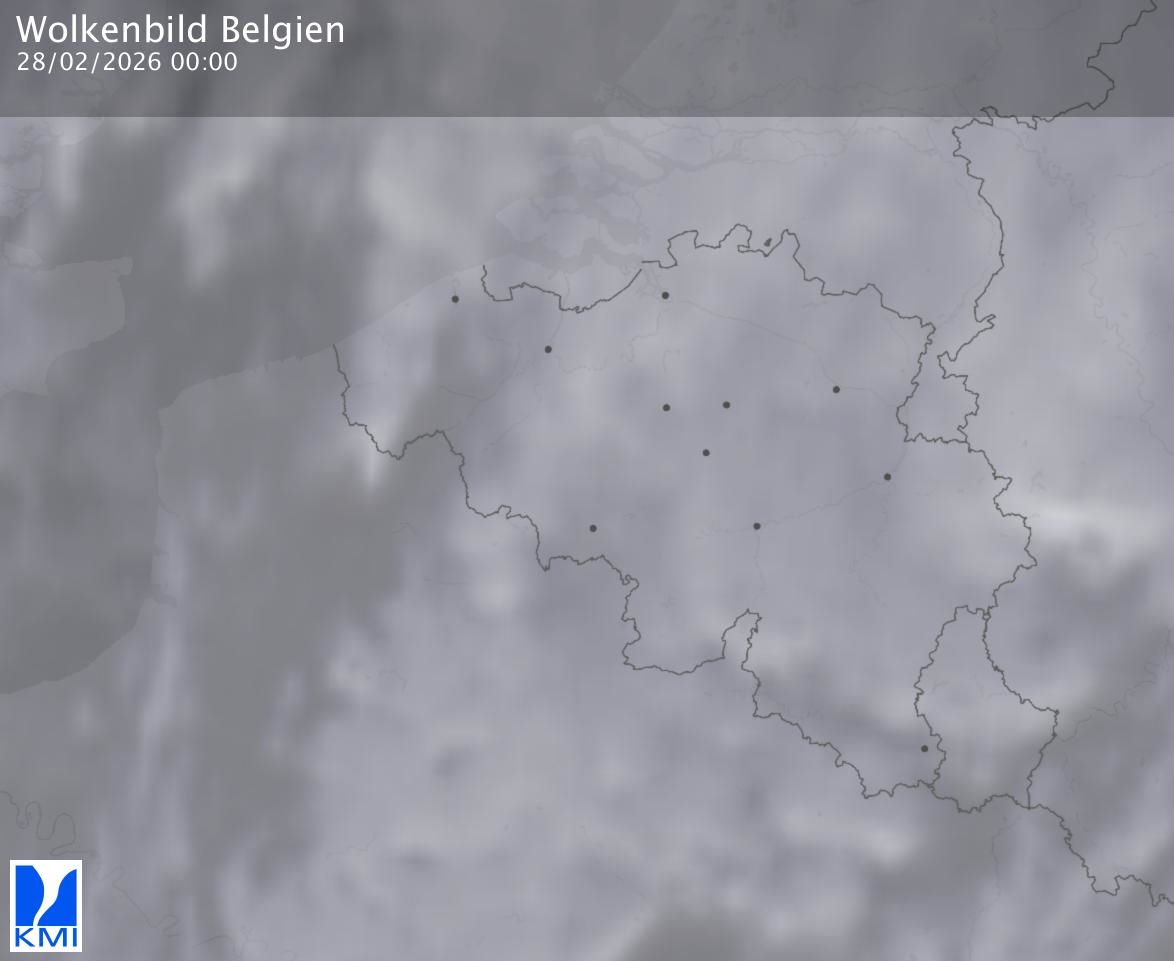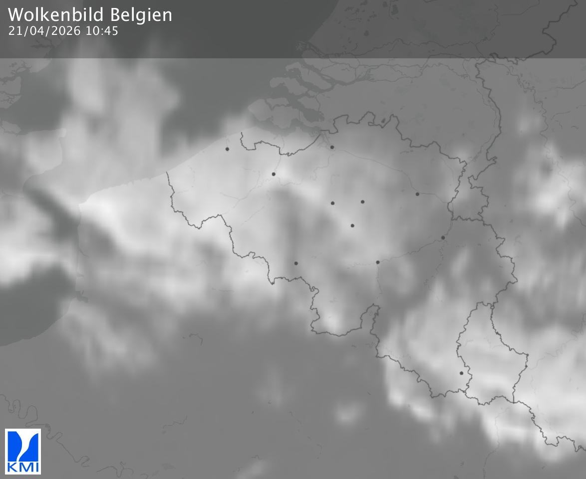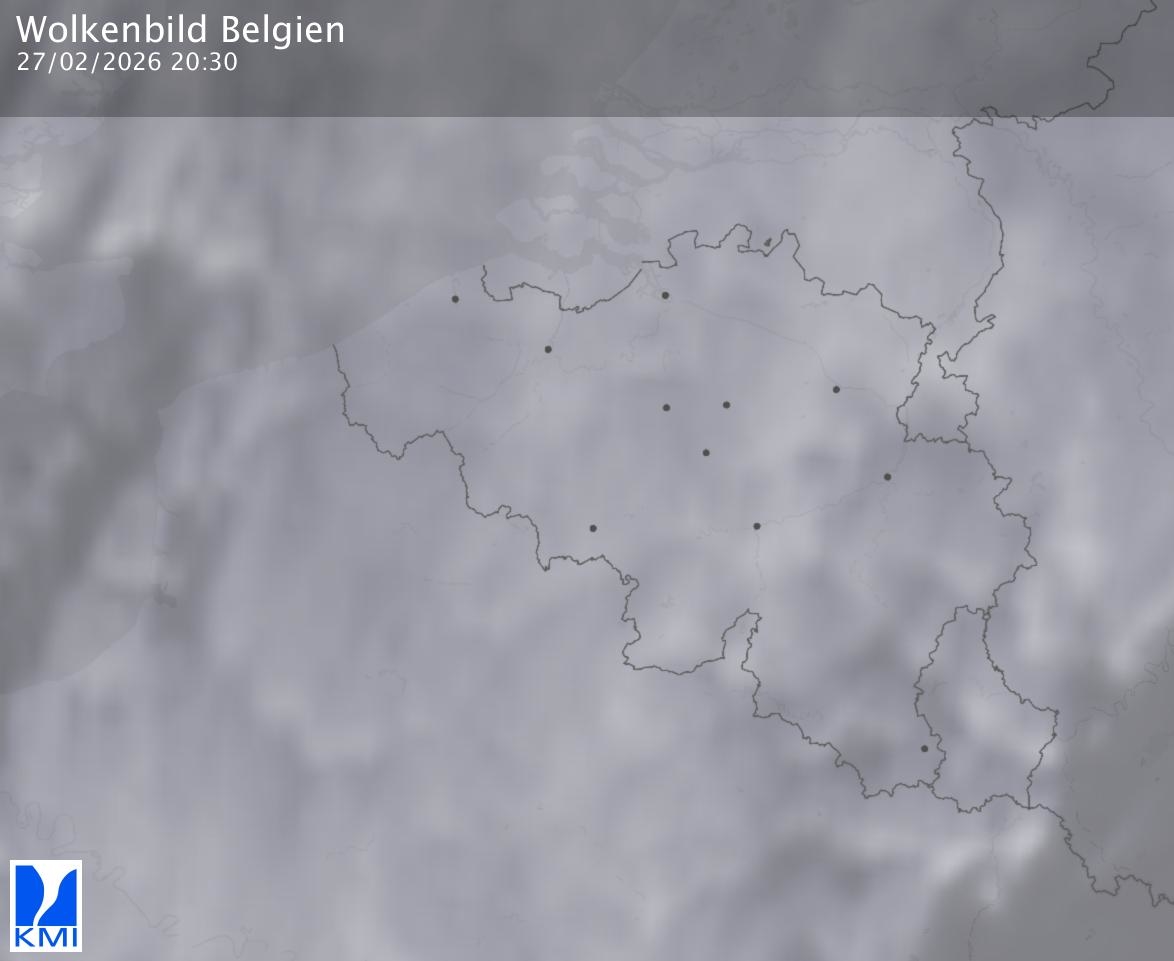 Das Wolkenbild Belgiens ist eine Kombination der sichtbaren und Infrarotkanäle des Satelliten.