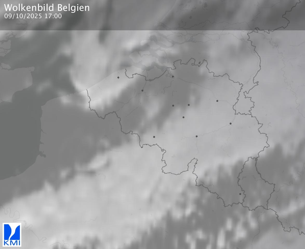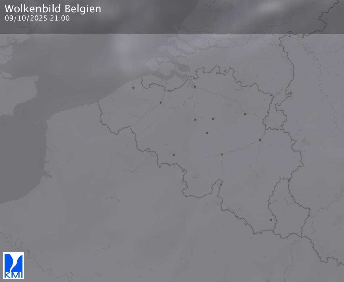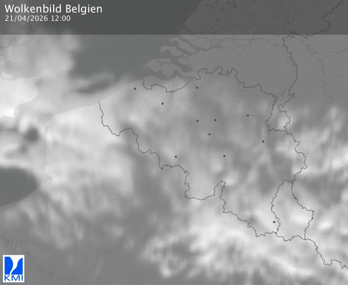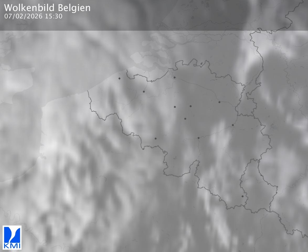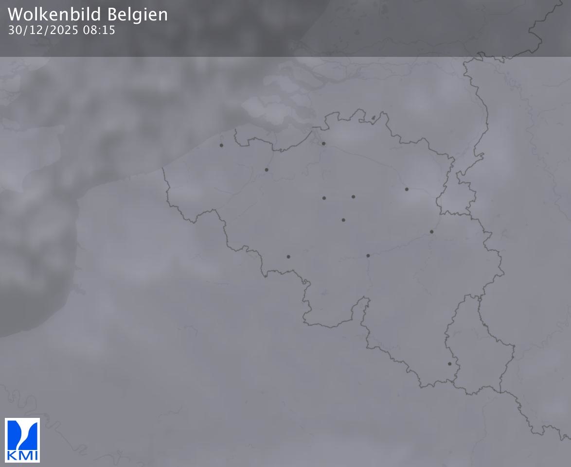 Das Wolkenbild Belgiens ist eine Kombination der sichtbaren und Infrarotkanäle des Satelliten.