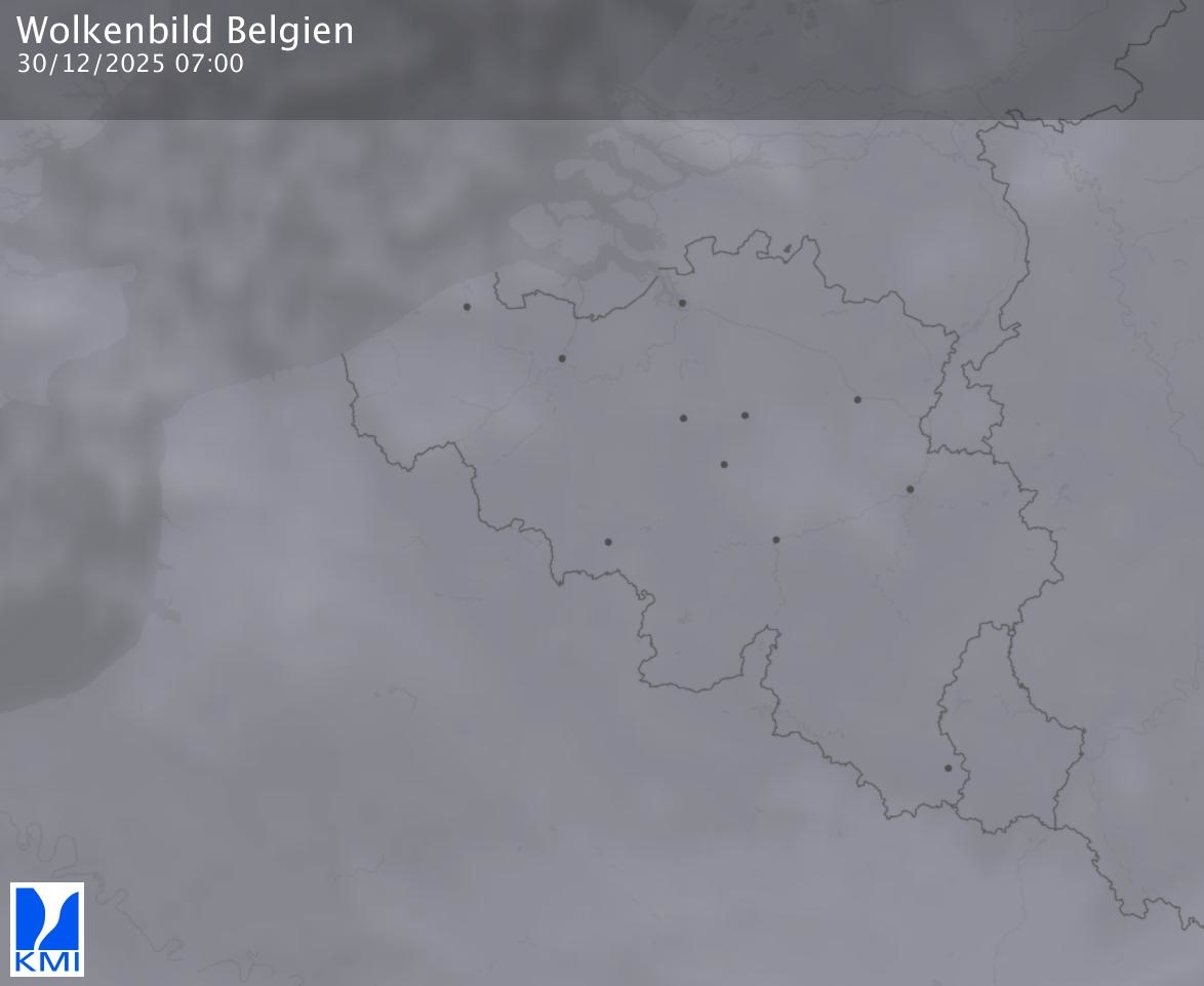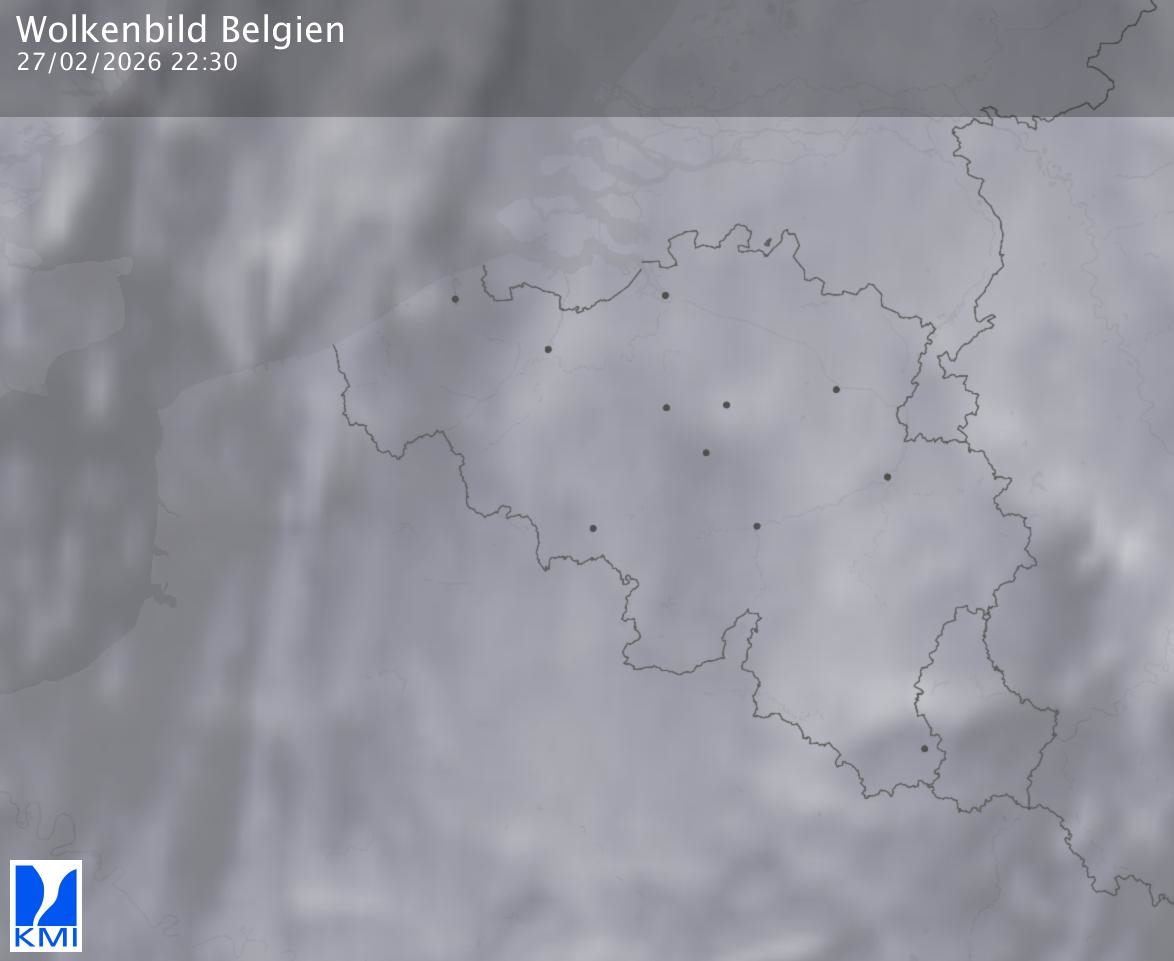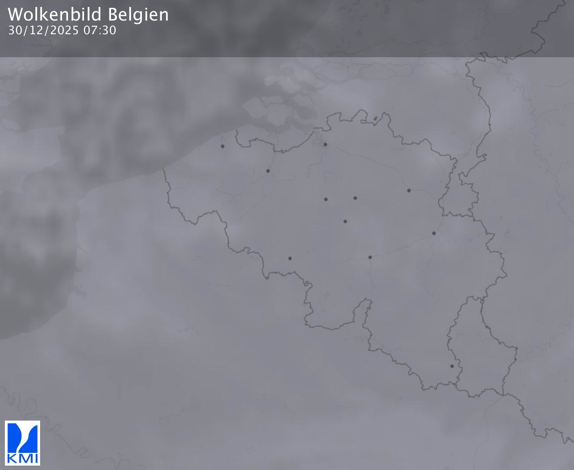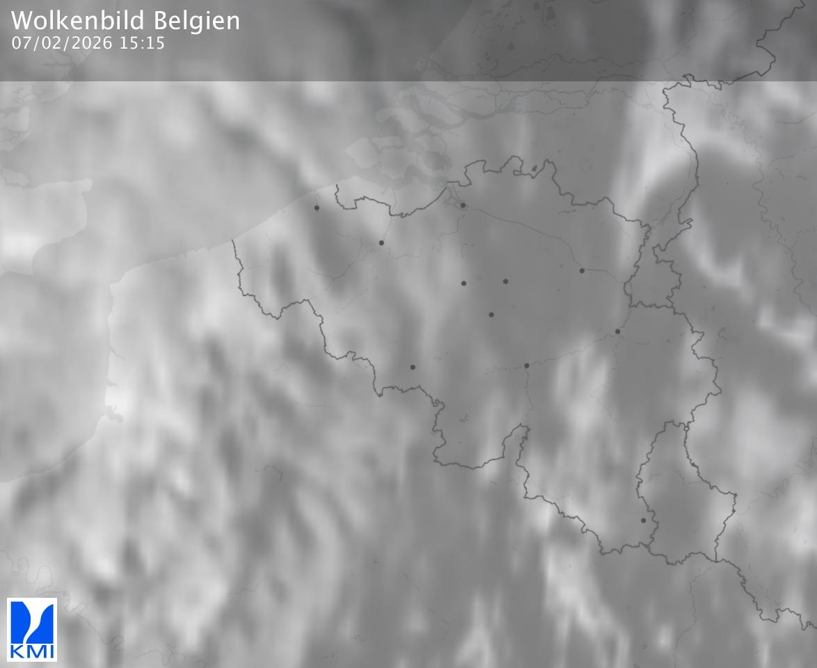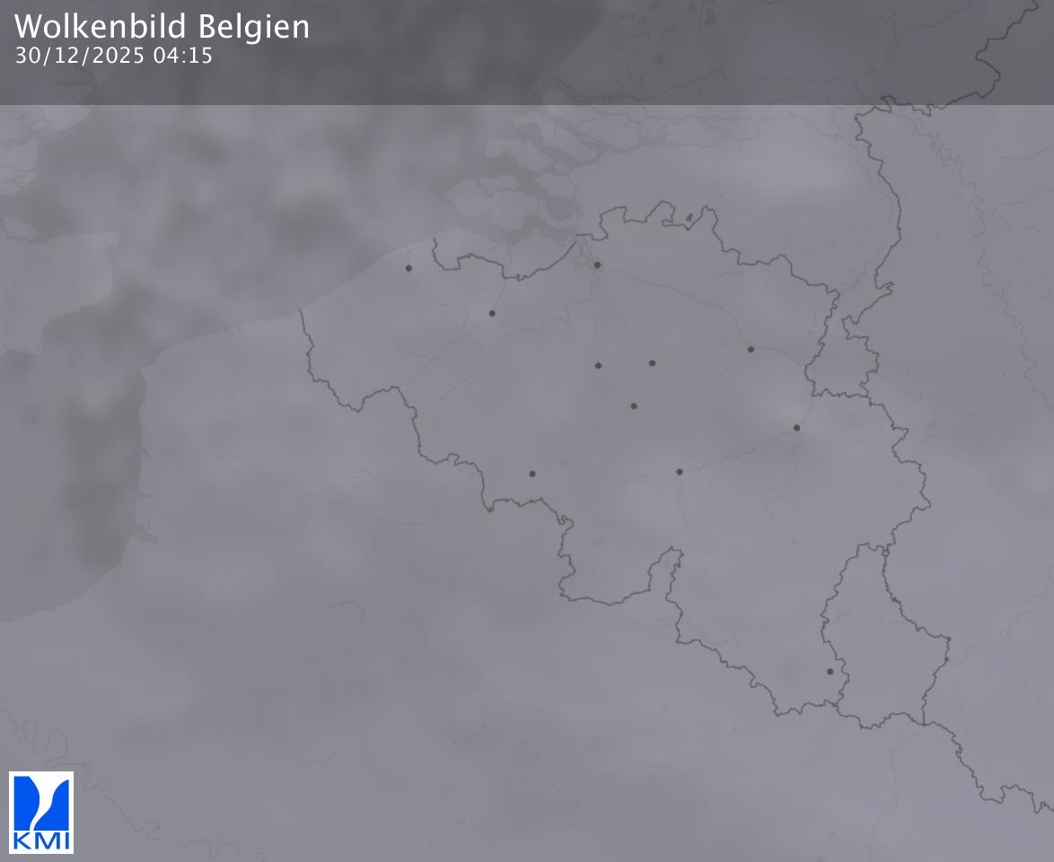 Das Wolkenbild Belgiens ist eine Kombination der sichtbaren und Infrarotkanäle des Satelliten.