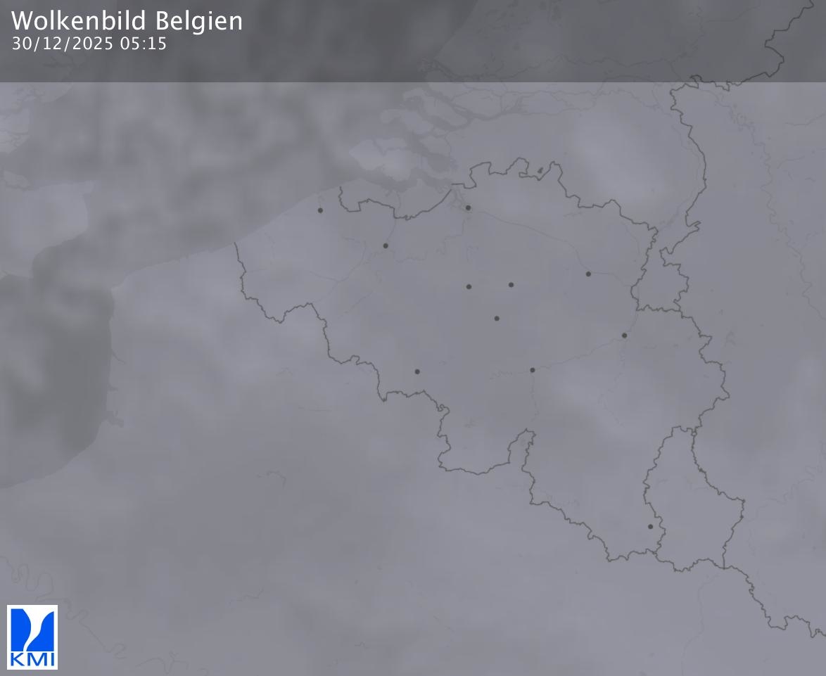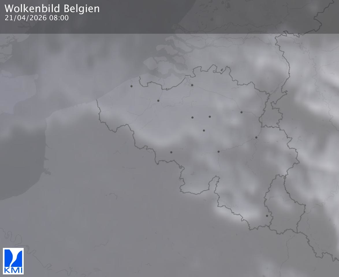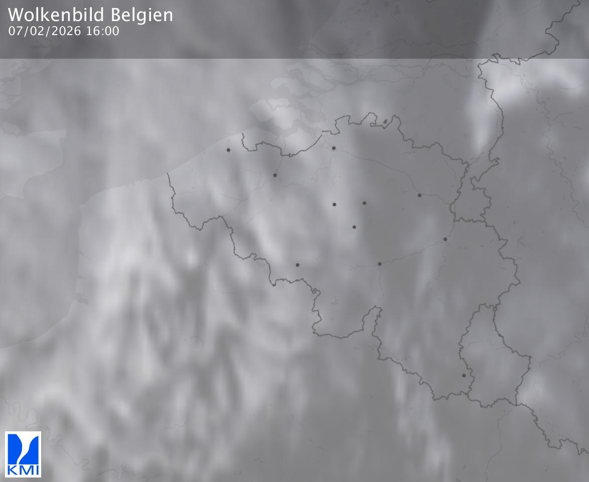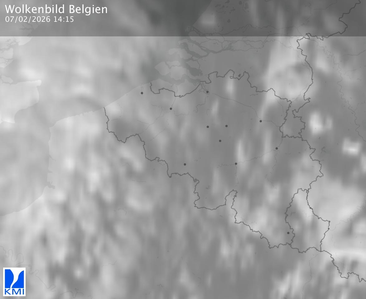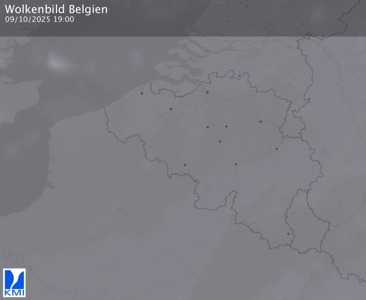 Das Wolkenbild Belgiens ist eine Kombination der sichtbaren und Infrarotkanäle des Satelliten.