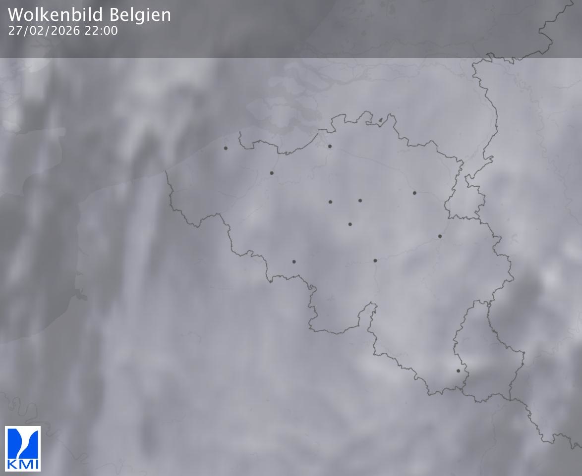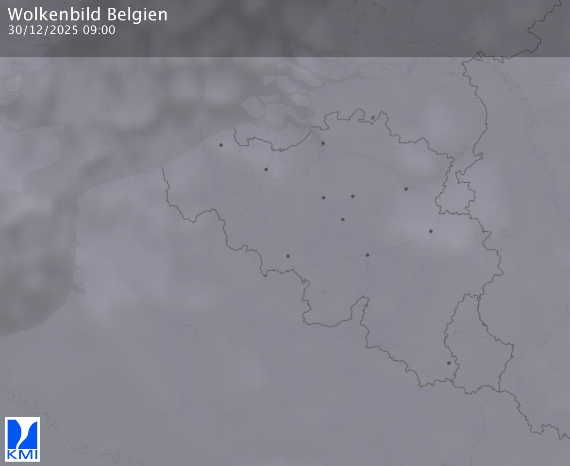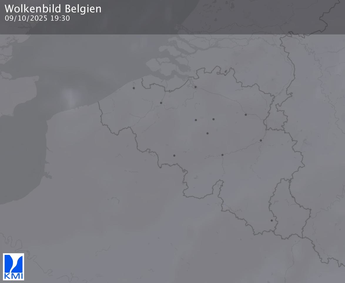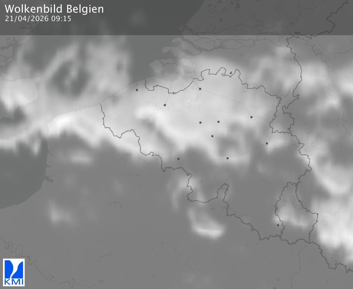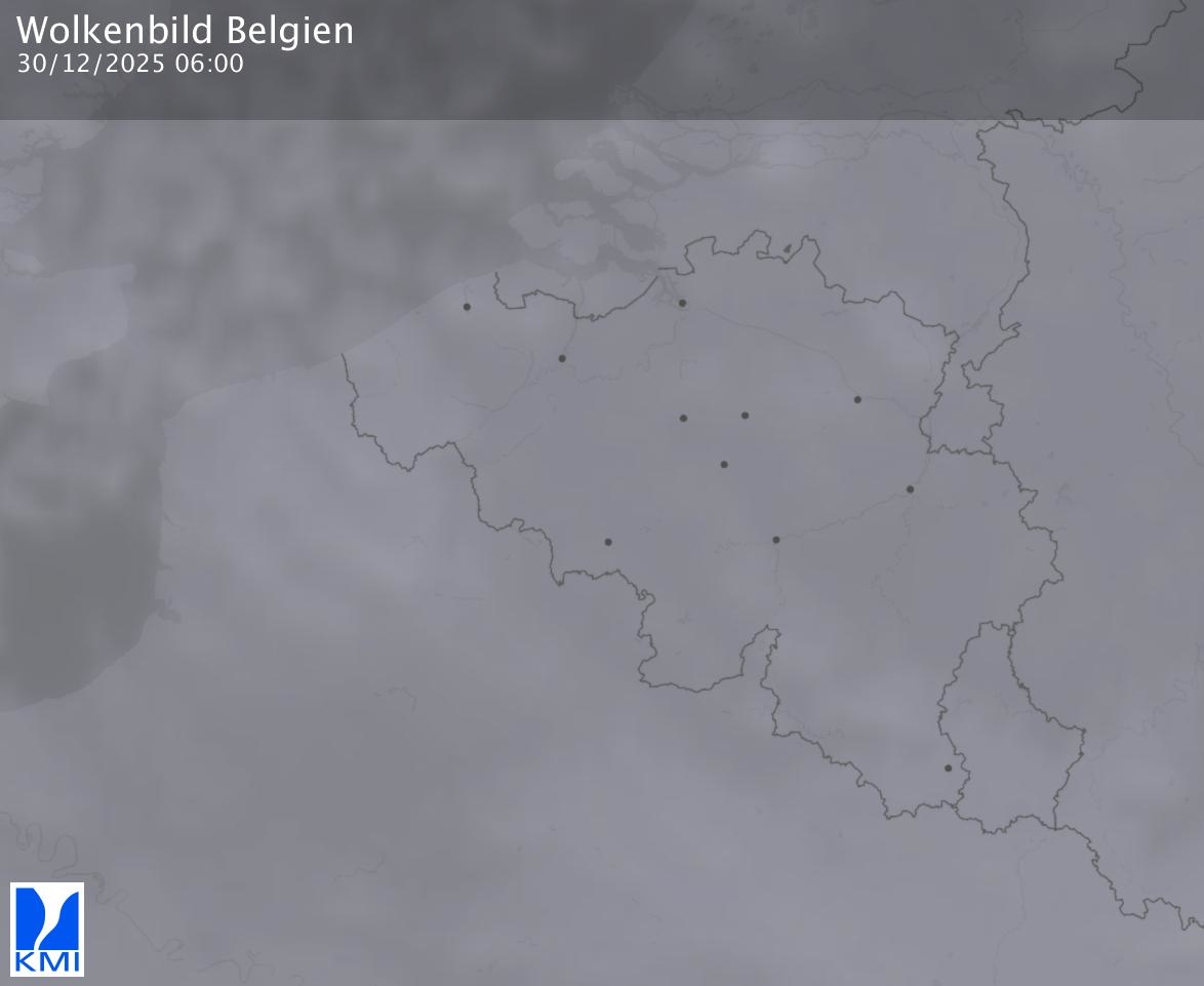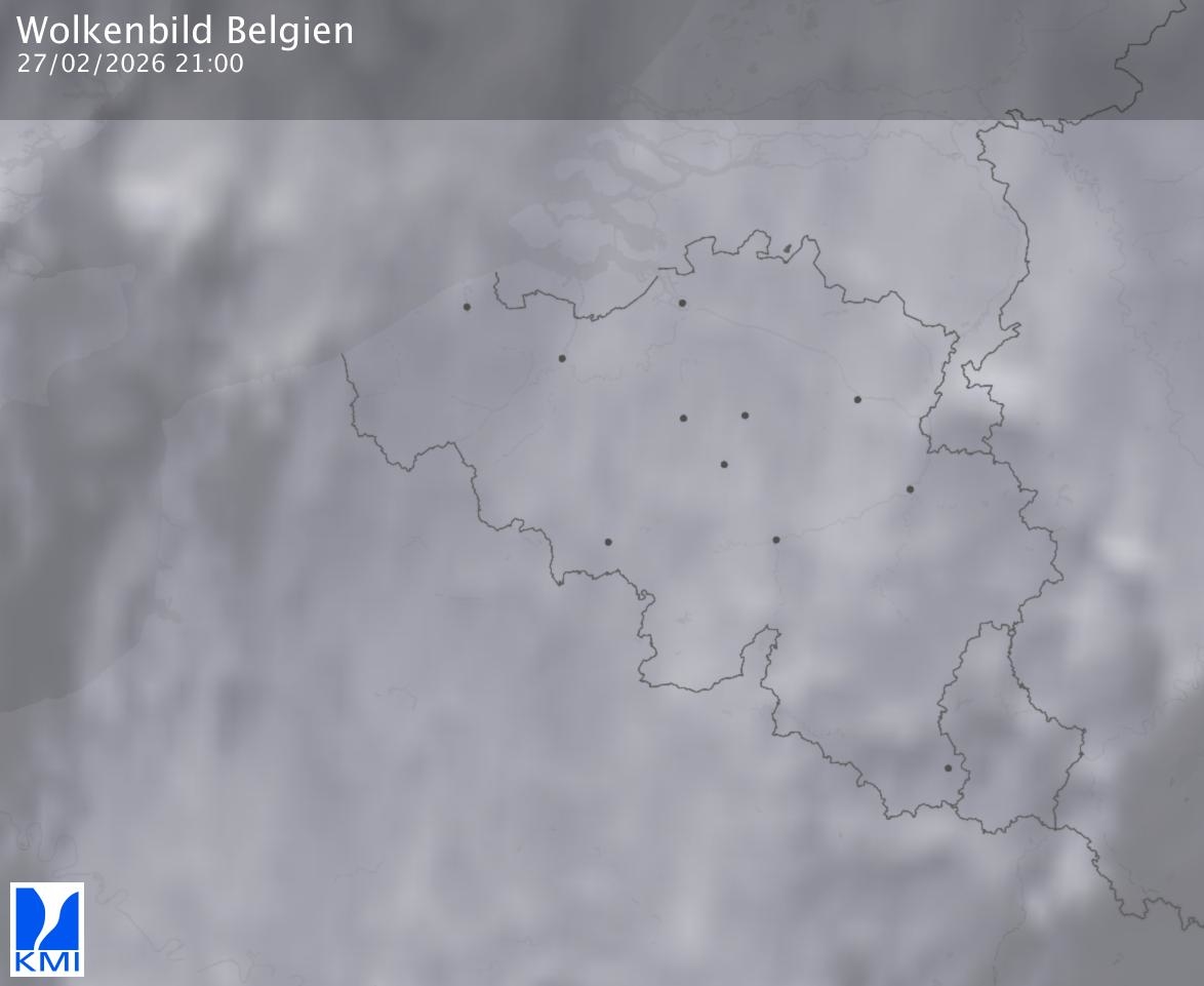Das Wolkenbild Belgiens ist eine Kombination der sichtbaren und Infrarotkanäle des Satelliten.
