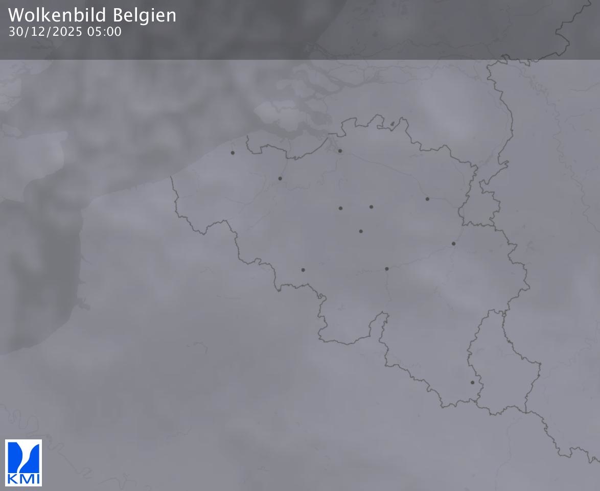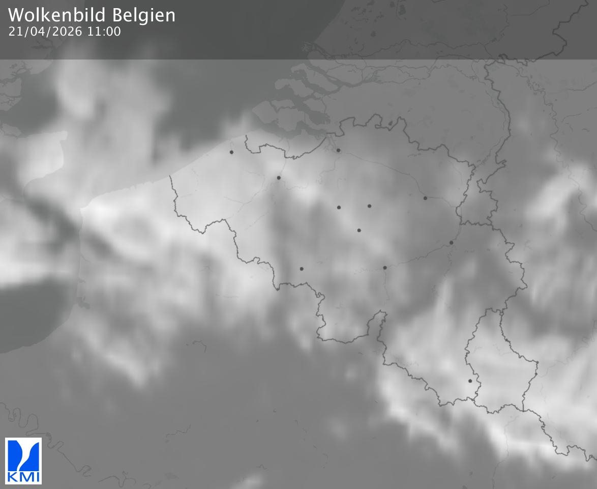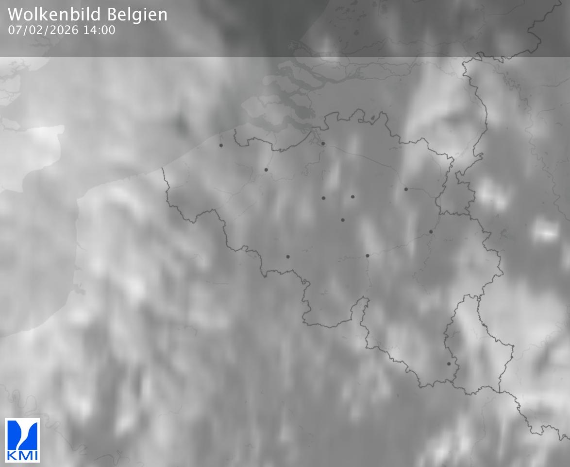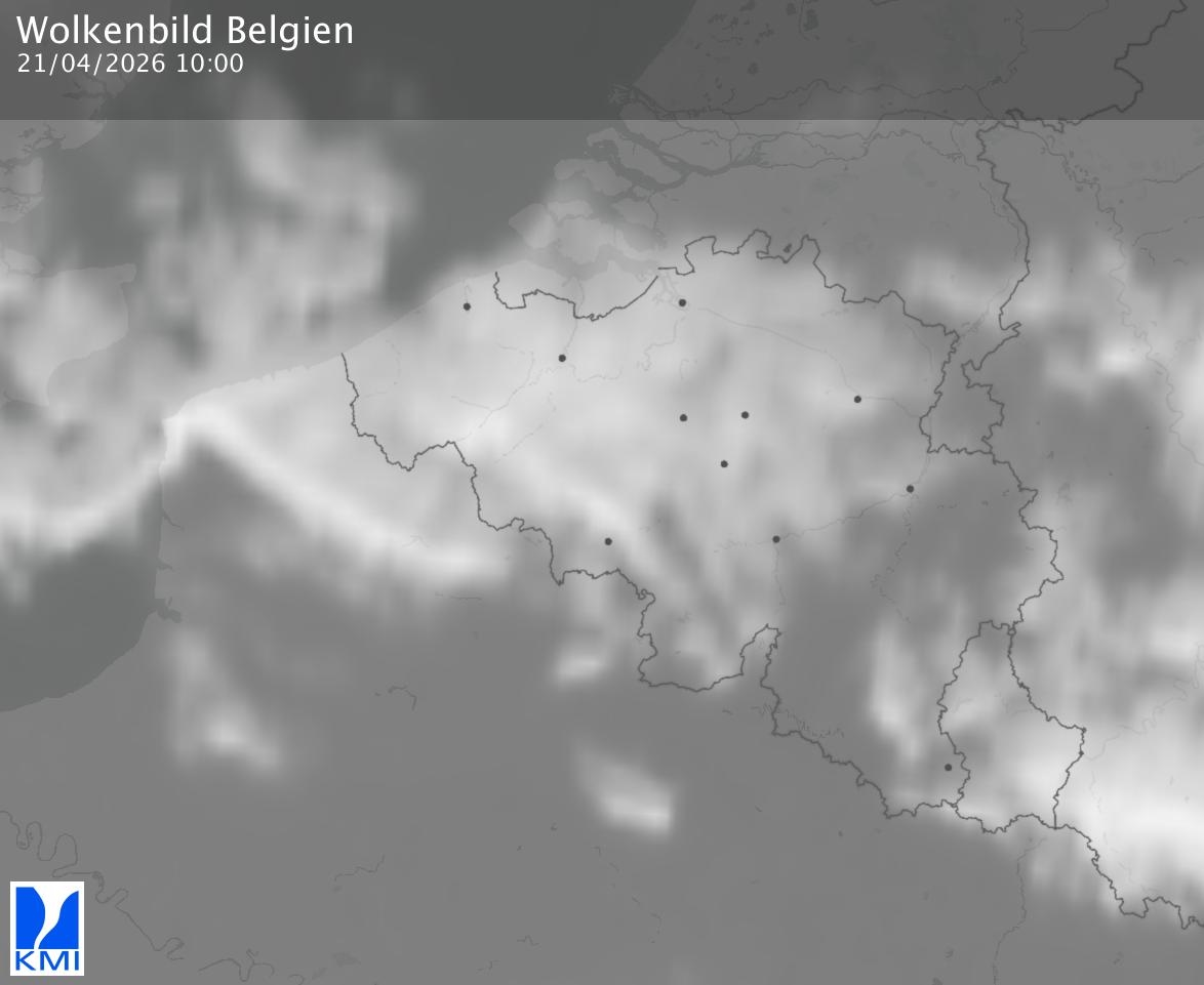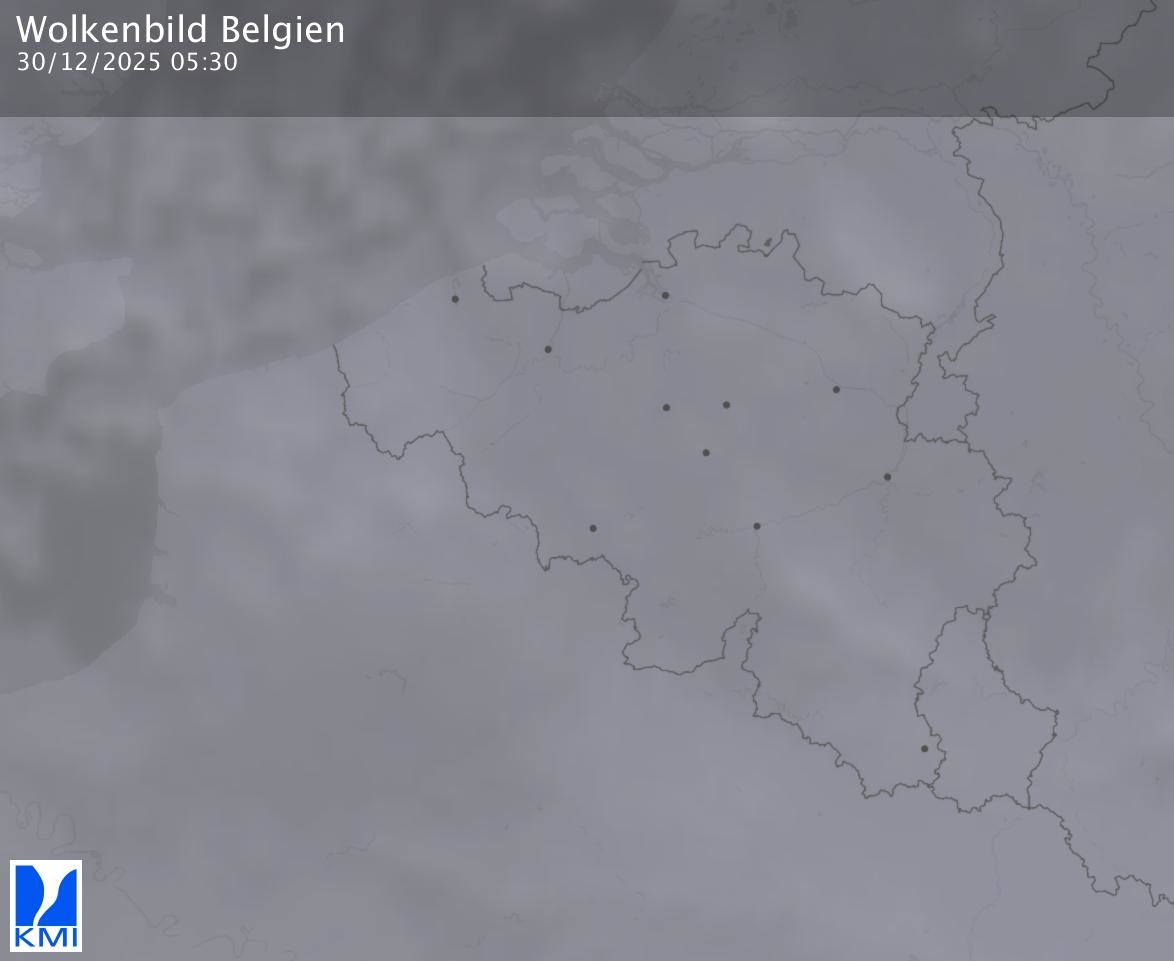 Das Wolkenbild Belgiens ist eine Kombination der sichtbaren und Infrarotkanäle des Satelliten.