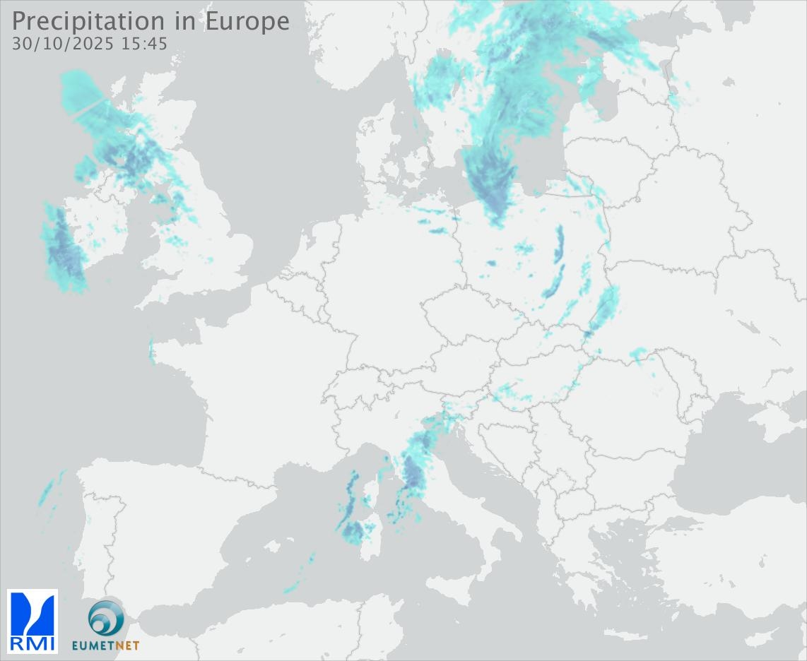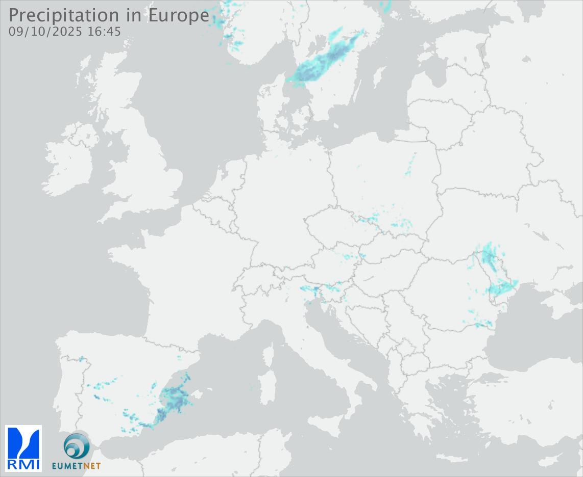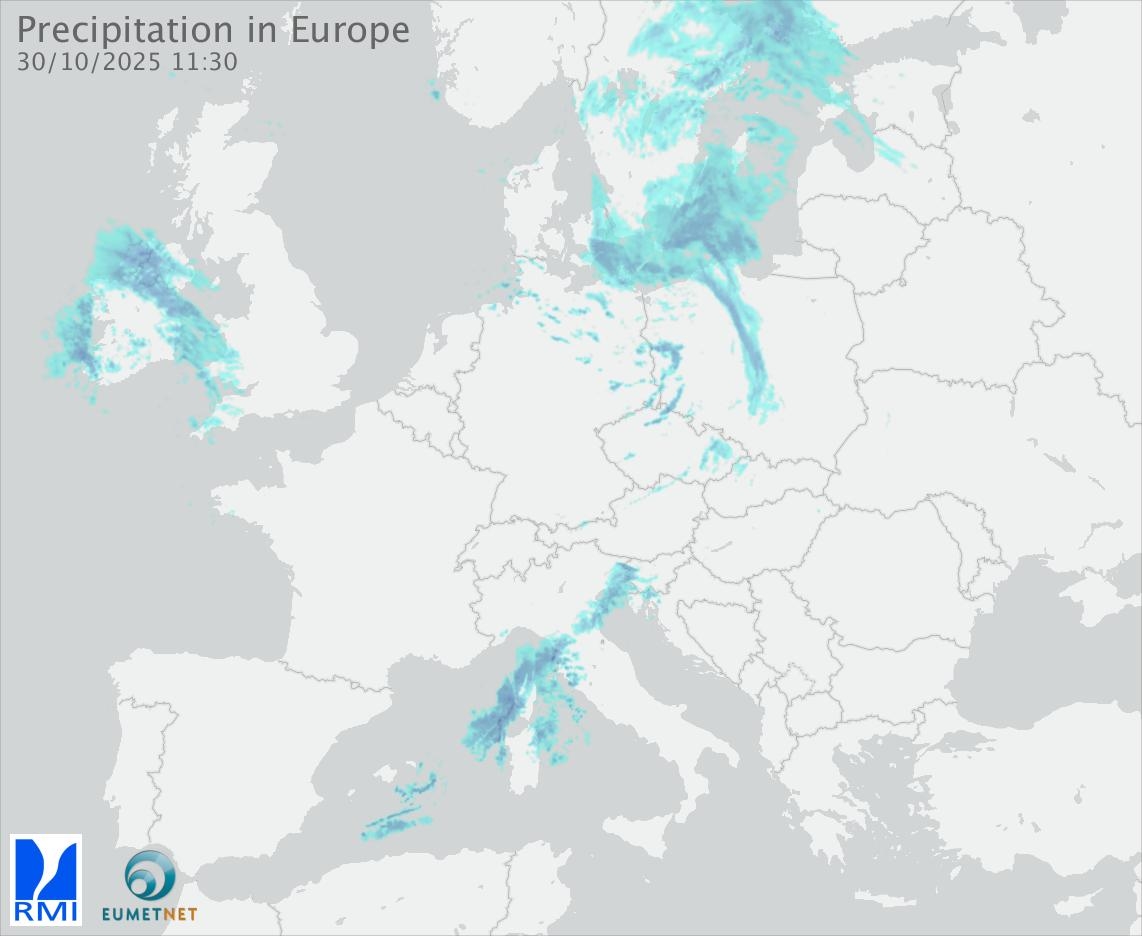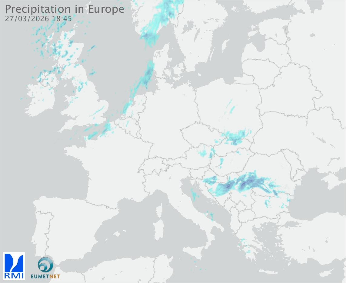 This animation shows the fallen precipitation observed by the radars of the European members of the OPERA program of Eumetnet.