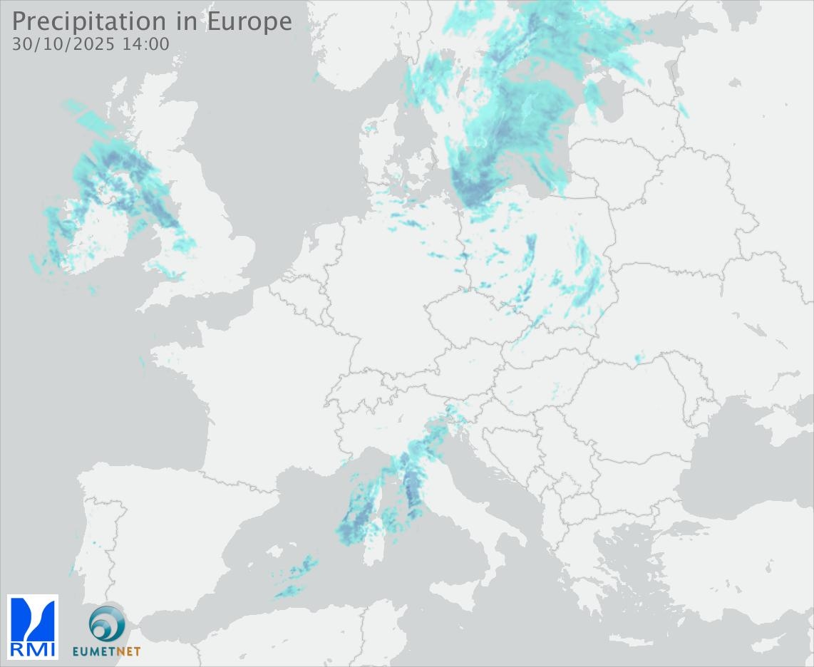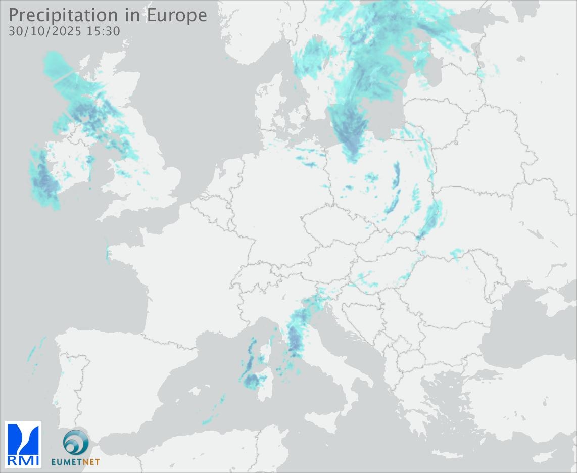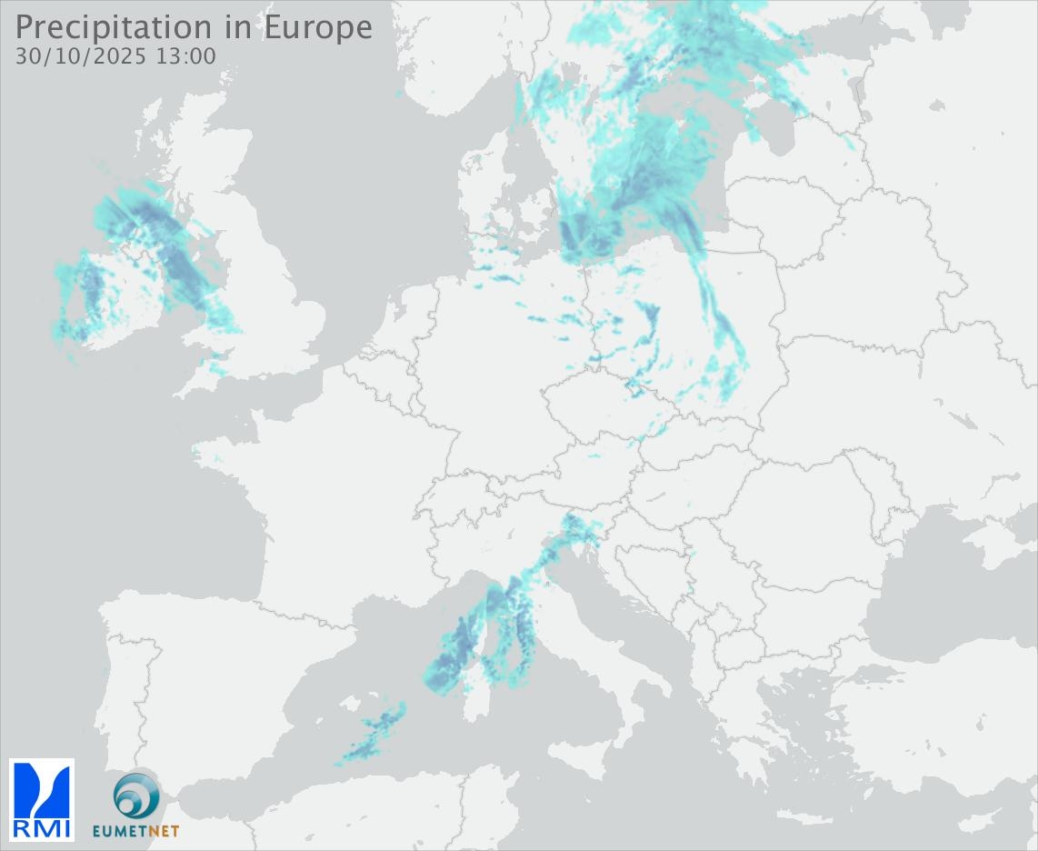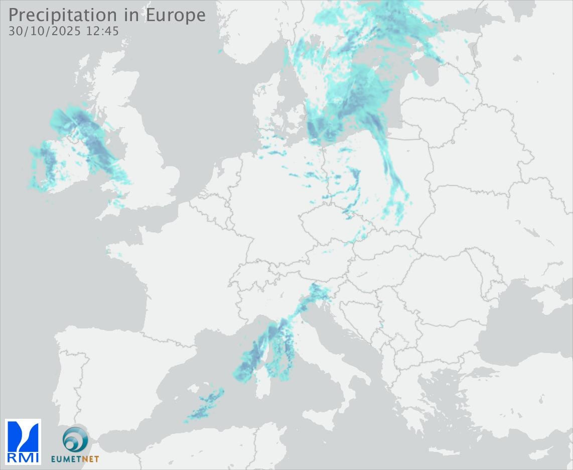 This animation shows the fallen precipitation observed by the radars of the European members of the OPERA program of Eumetnet.