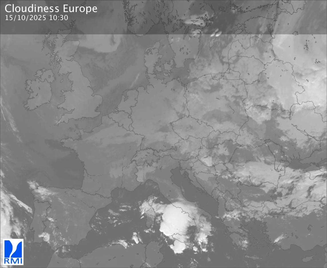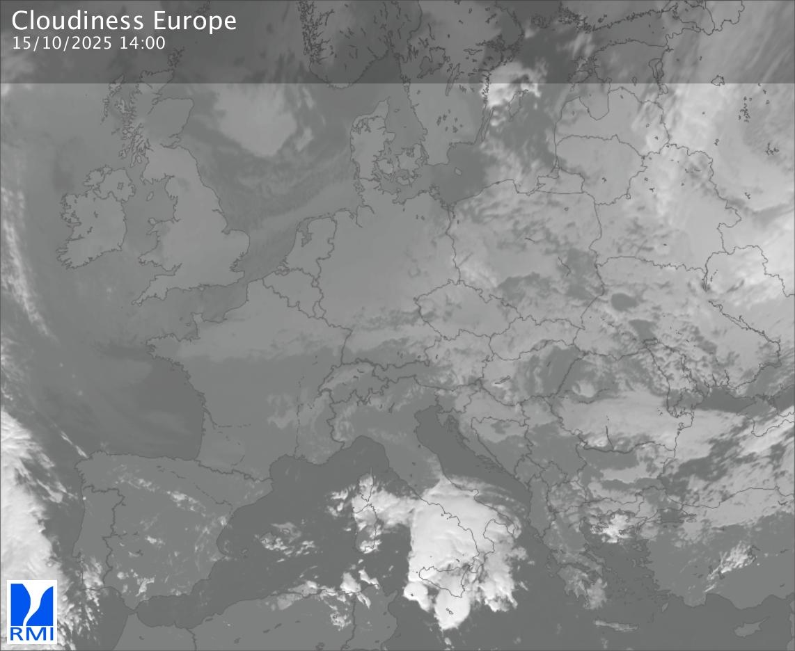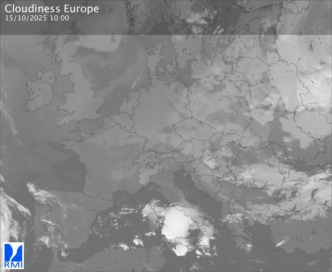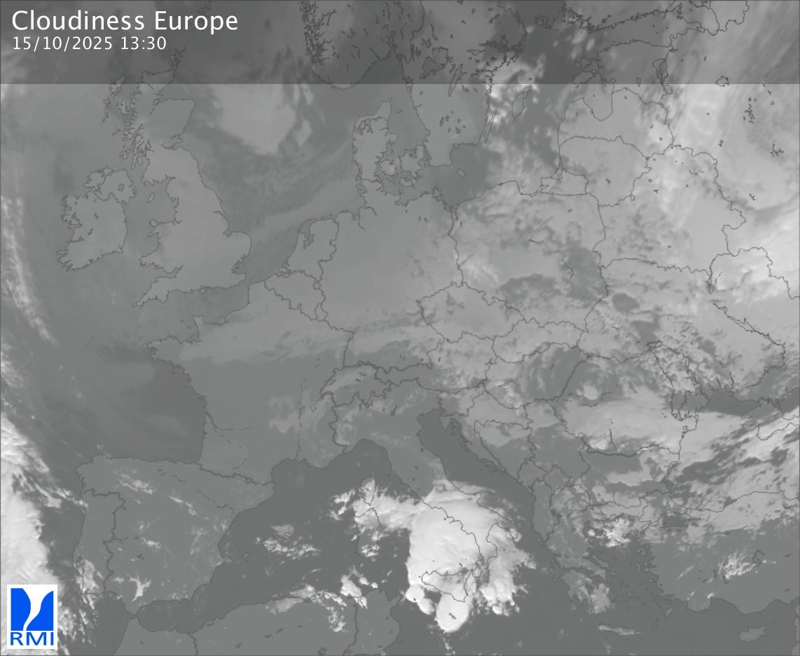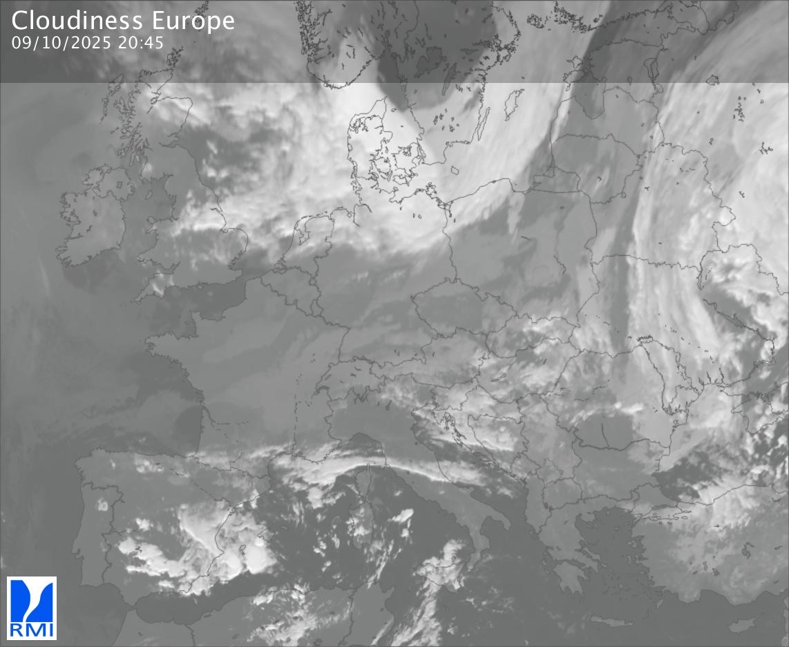 The infrared channels of Meteosat are sensitive to the temperature of the objects and allow to detect clouds day and night. The clouds are indeed colder than the cloud free surface. In the infrared imagery the clouds appear as bright as they are cold and are then located higher in the atmosphere.
