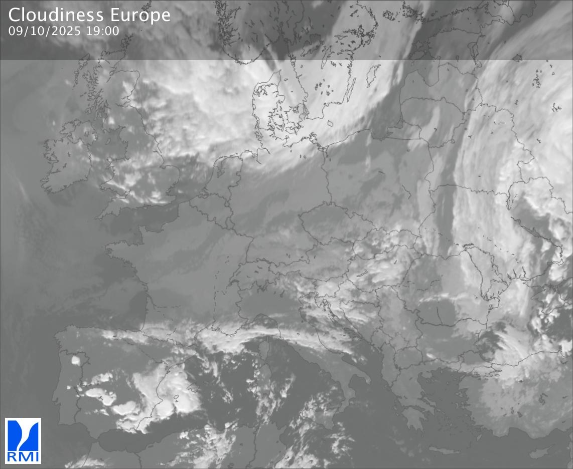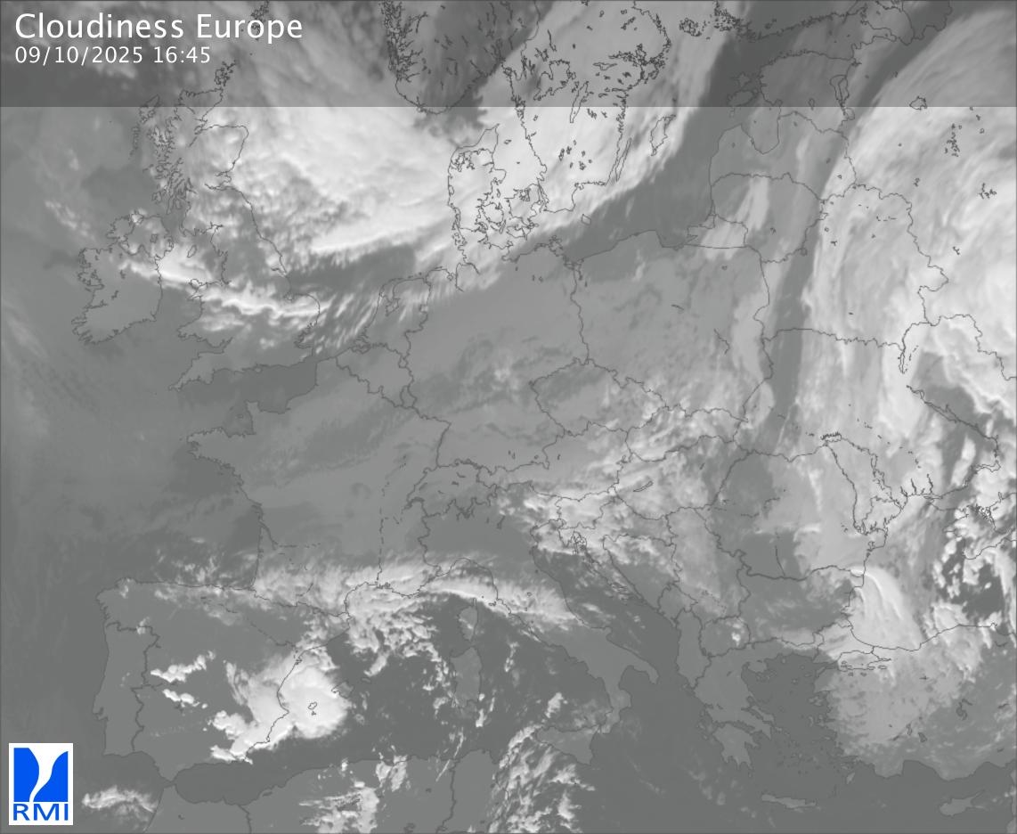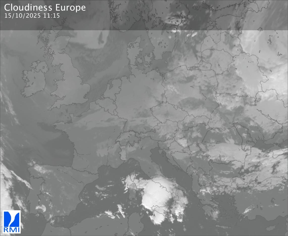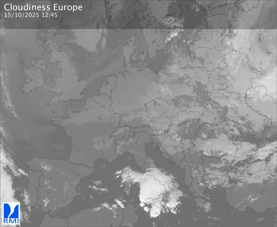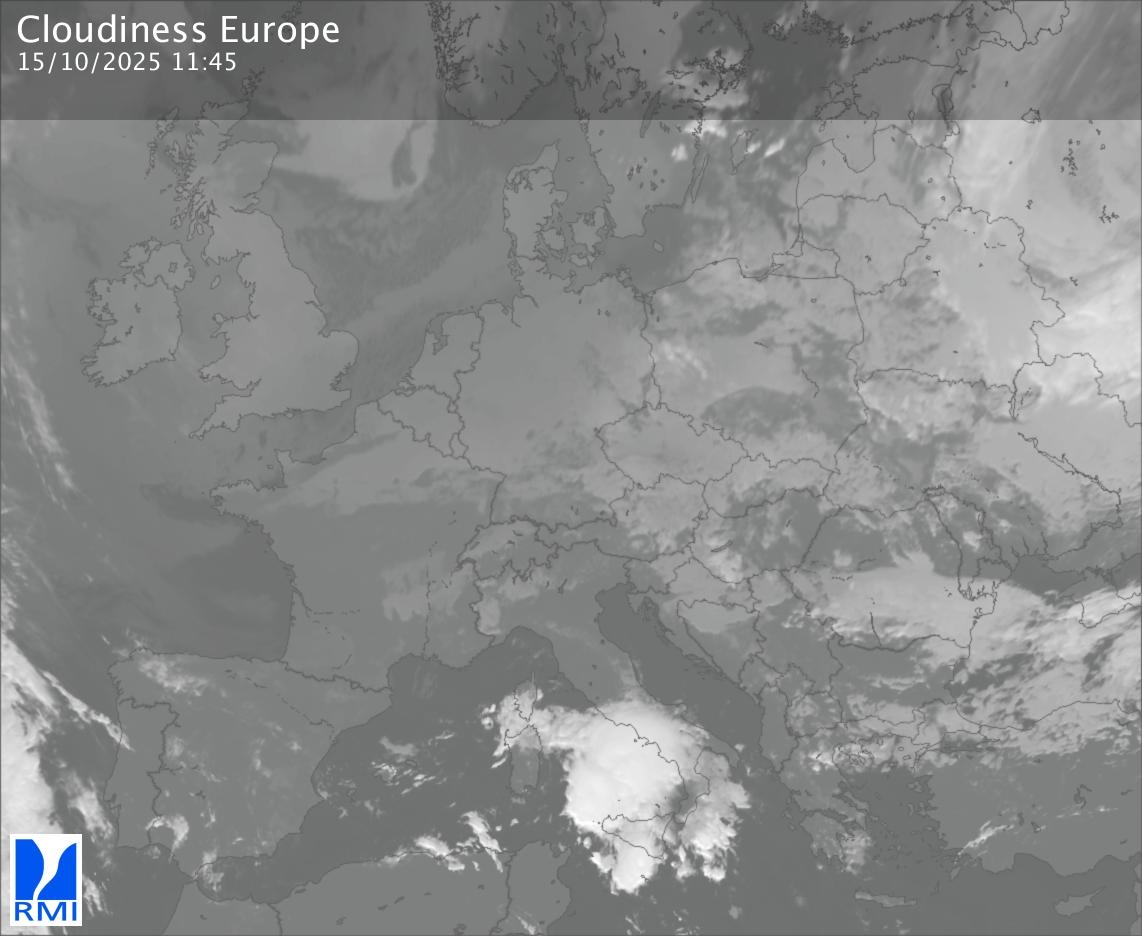 The infrared channels of Meteosat are sensitive to the temperature of the objects and allow to detect clouds day and night. The clouds are indeed colder than the cloud free surface. In the infrared imagery the clouds appear as bright as they are cold and are then located higher in the atmosphere.