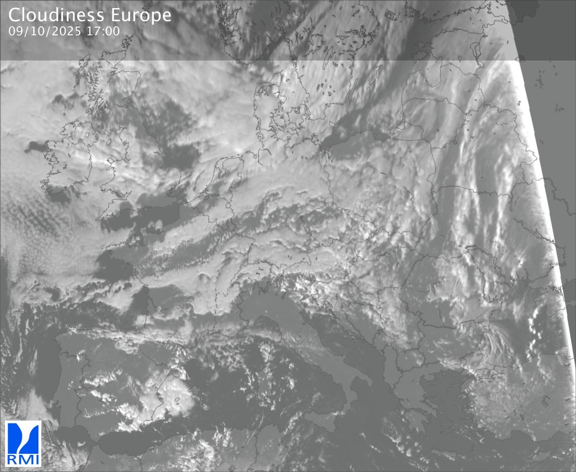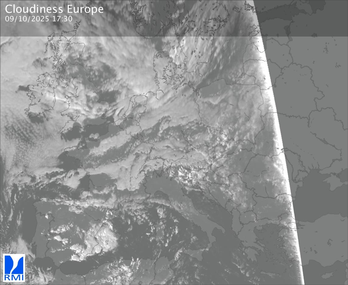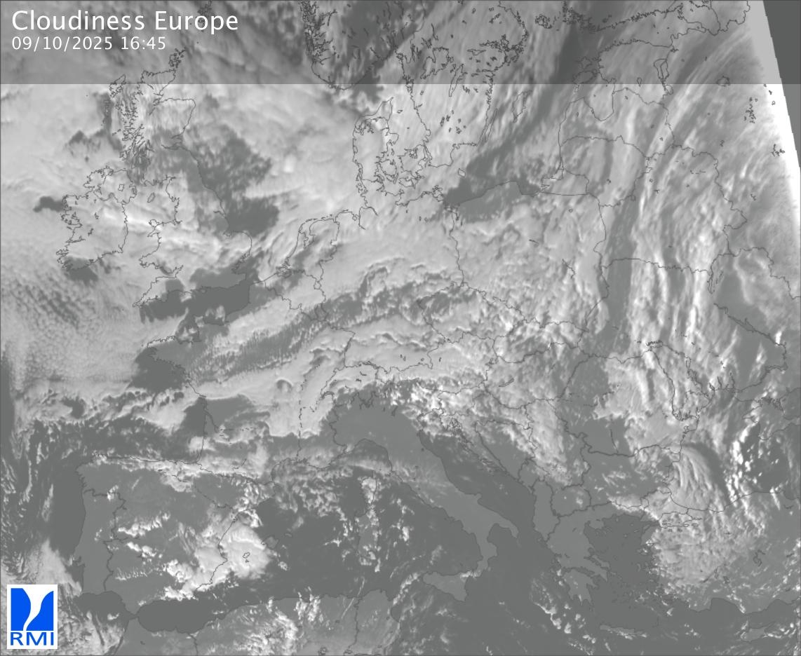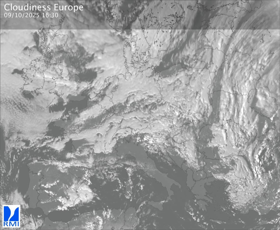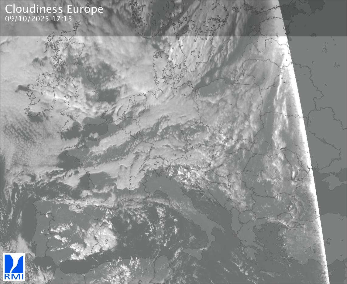 The visible channels of Meteosat are sensitive to the reflection of the solar radiation on the objects and allow to detect clouds during daytime. In the visible imagery the clouds appear as bright as they reflect the light and are then thicker.
