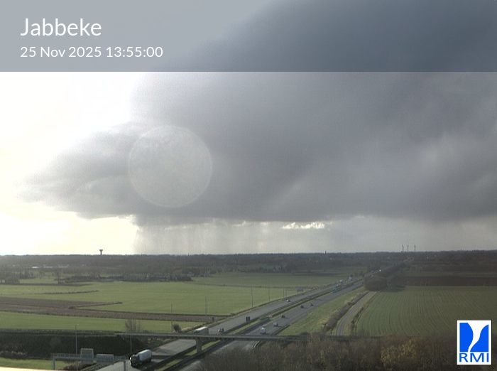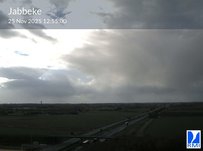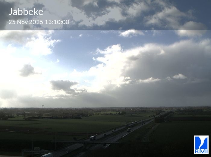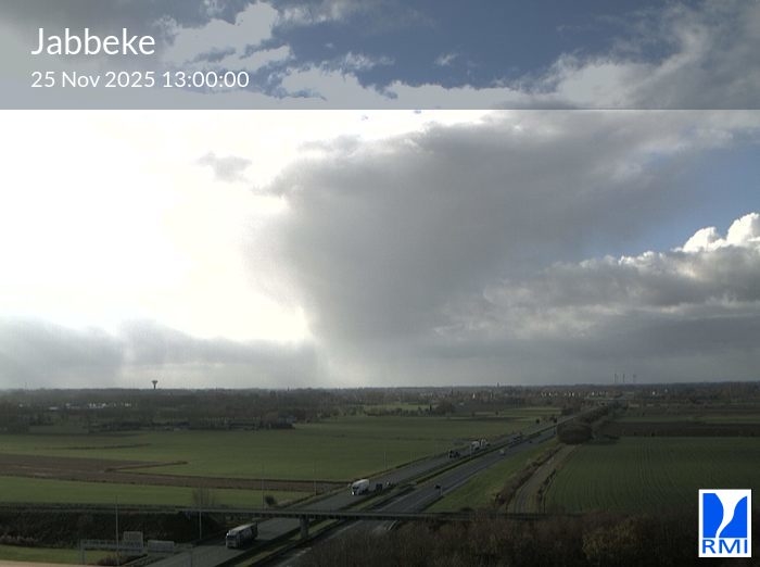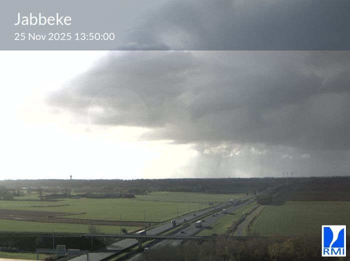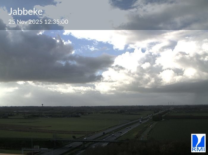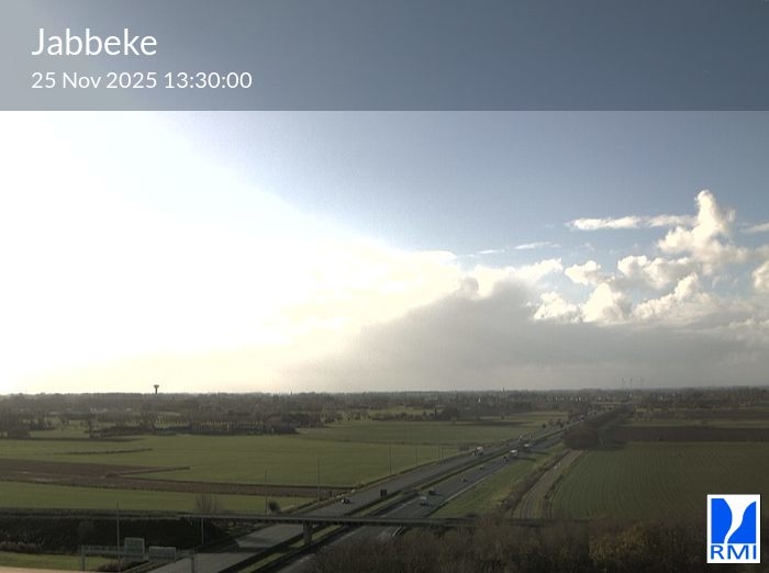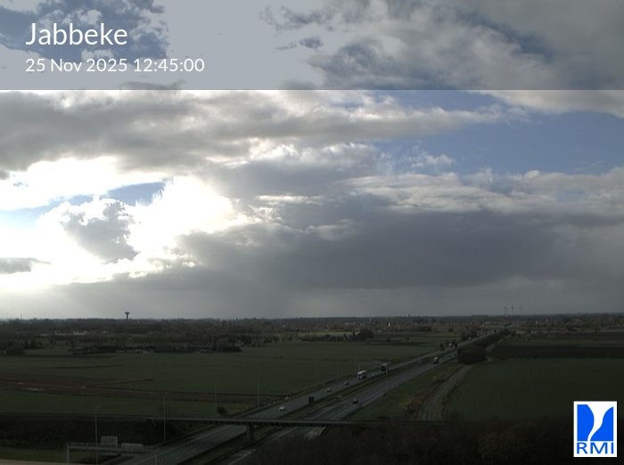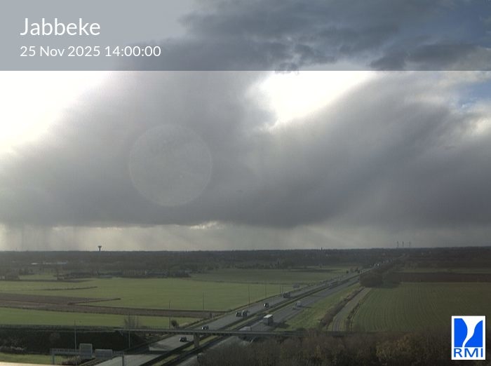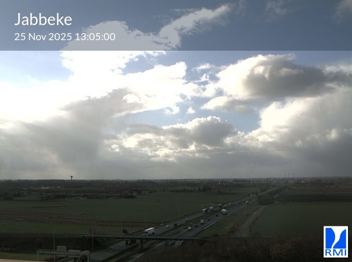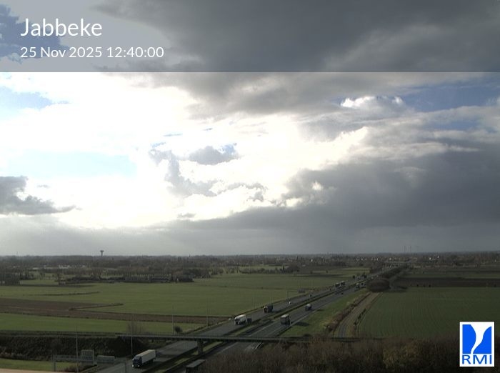 The webcam is located on the tower of the RMI weather radar in Jabbeke at the junction of the E40 highway towards France and the A10 to the coast (Ostend).