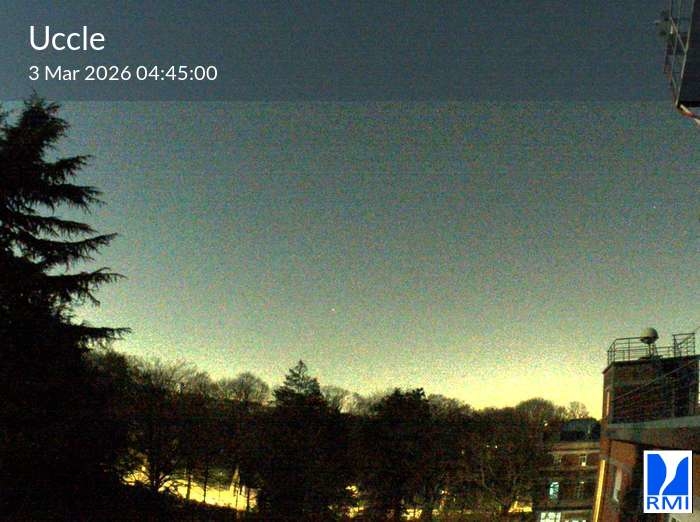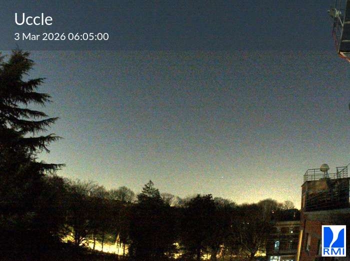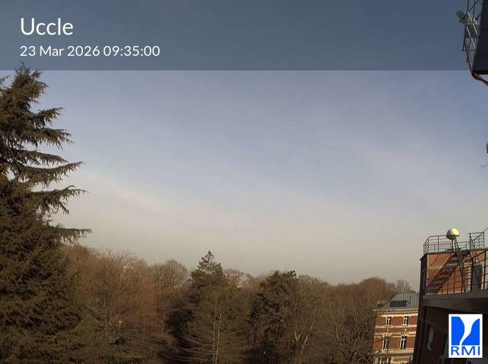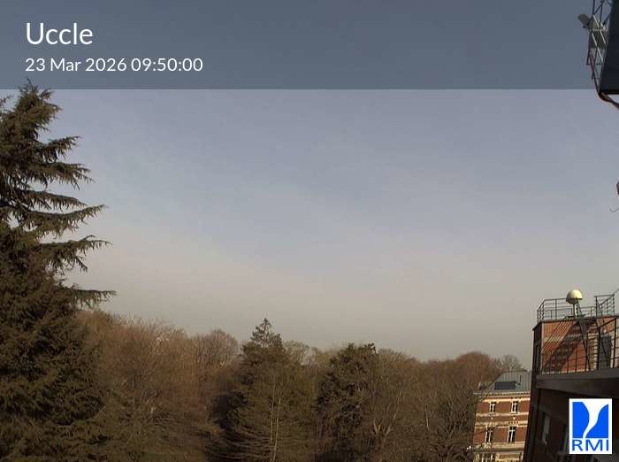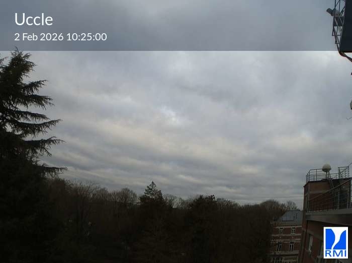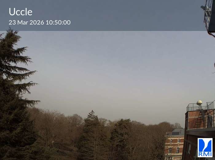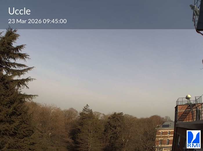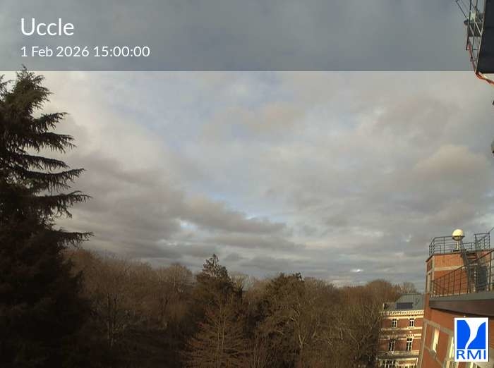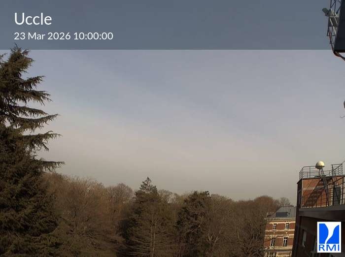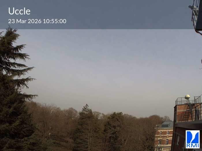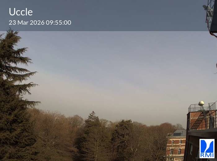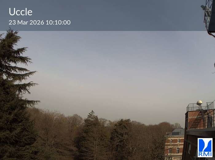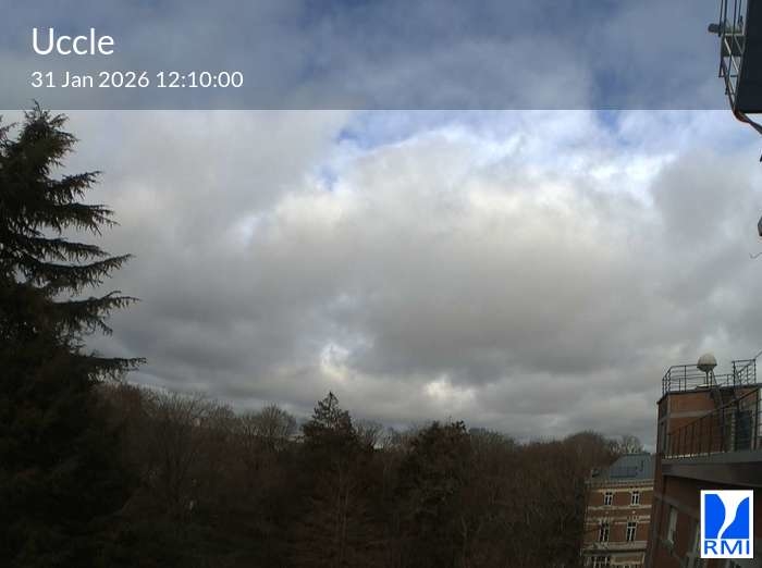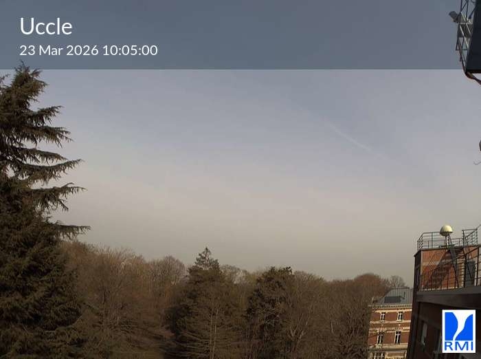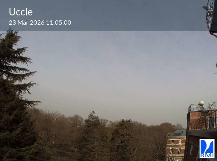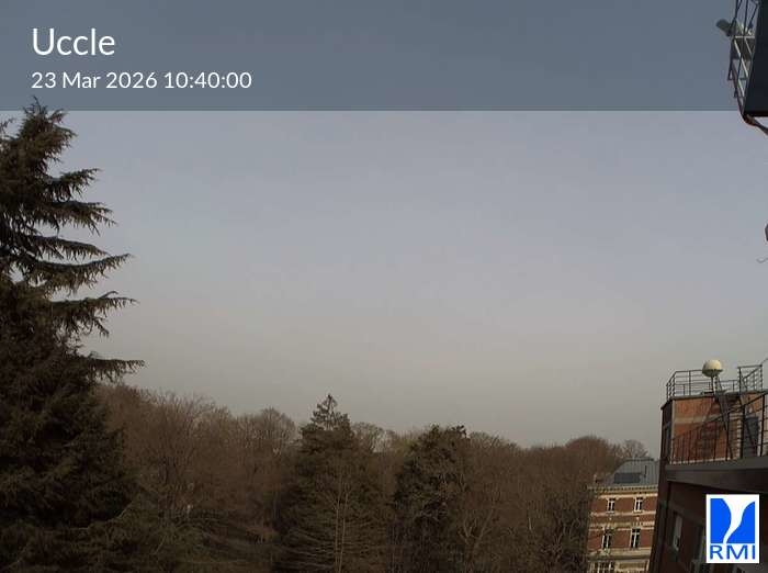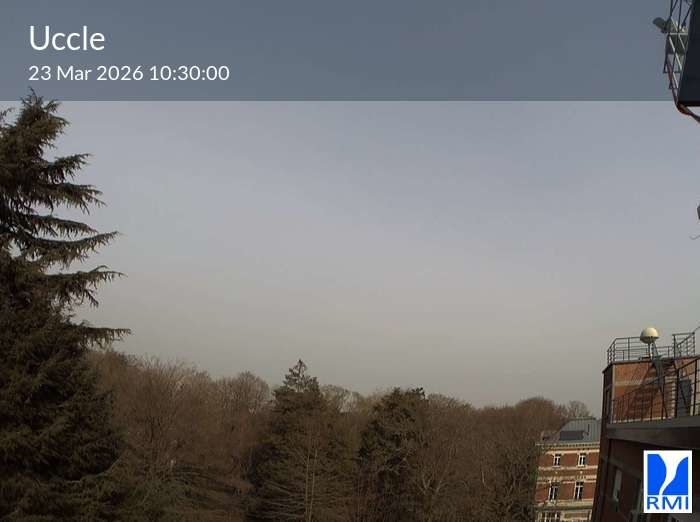 This webcam is situated on top of the observation tower in the RMI park in Uccle and is oriented to the North to avoid direct sunlight at noon.
