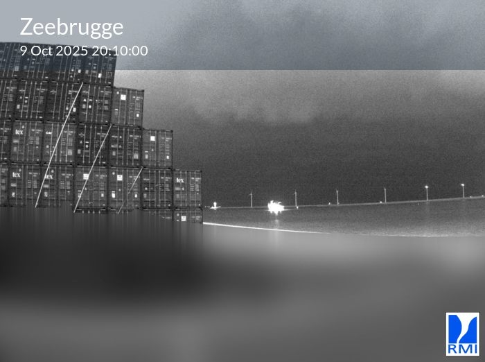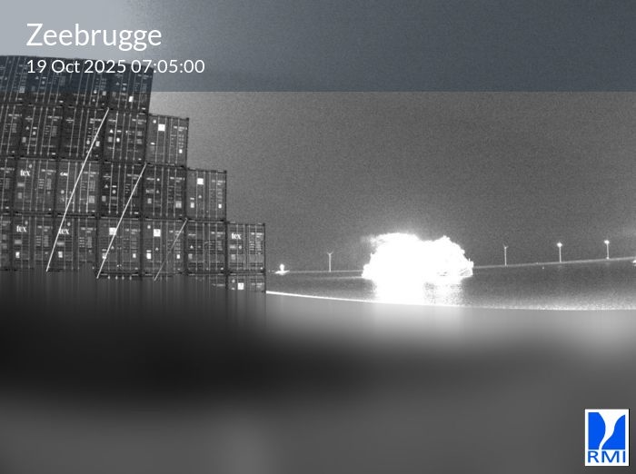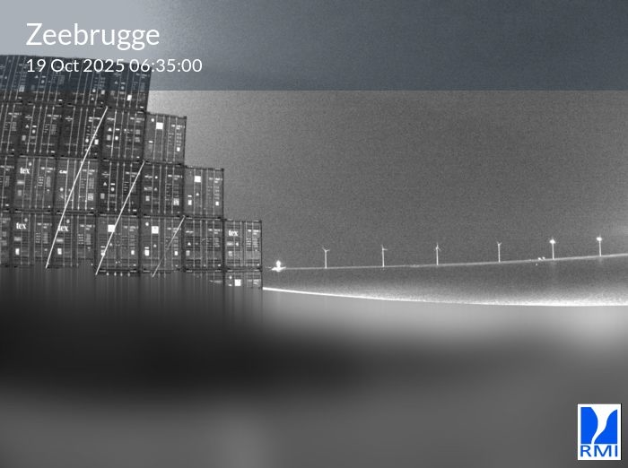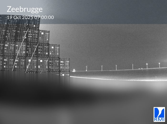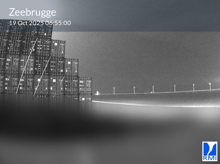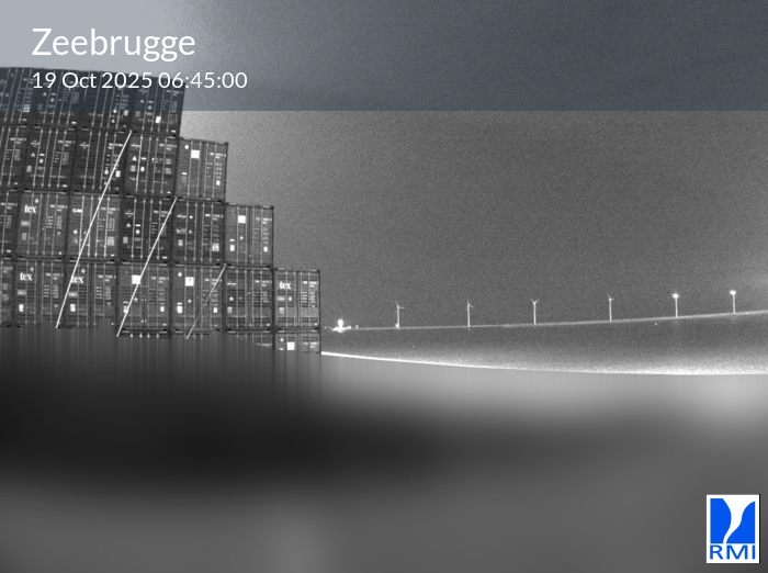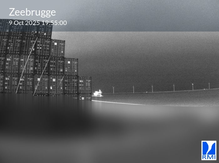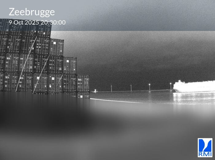The webcam is situated on the Leopold II dam in the port of Zeebrugge and it is oriented to the North to avoid direct sunlight at noon.
