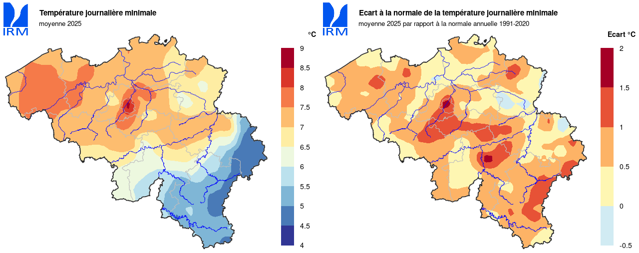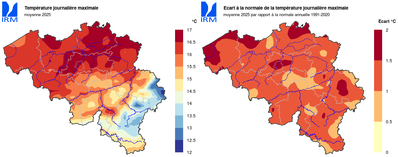 Selon l'Organisation météorologique mondiale, 2025 sera la deuxième ou troisième année la plus chaude à l'échelle planétaire (observations depuis les années 1860). À Uccle, 2025 a été, avec 2014, la quatrième année la plus chaude depuis le début des observations en 1833.