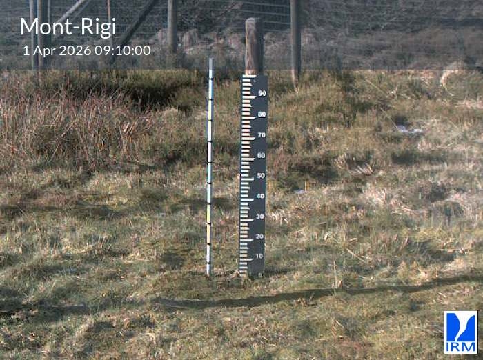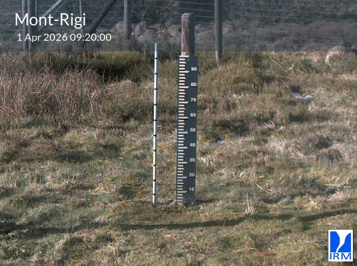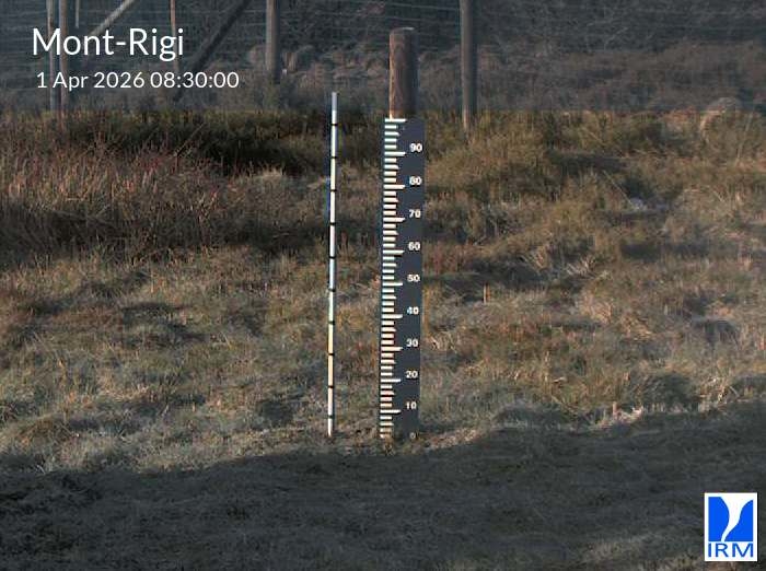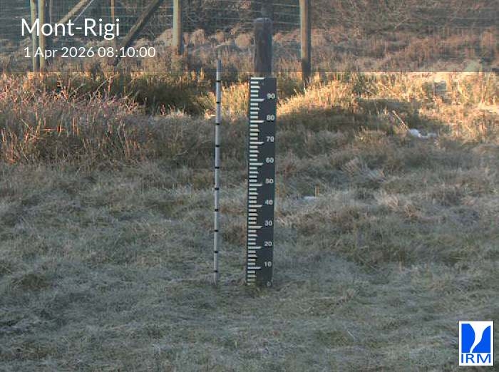 La latte de mesure sur l'image permet d'estimer la hauteur de neige actuelle (en cm).