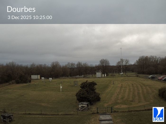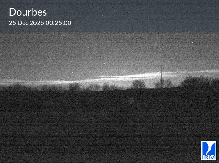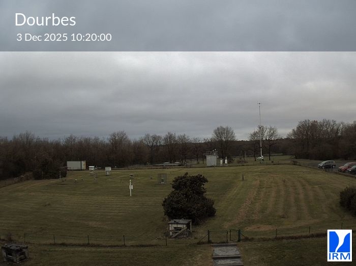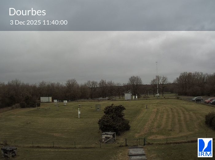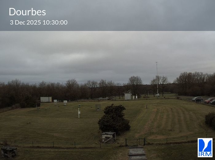 La webcam est installée au sommet du bâtimemt principal du Centre de Physique du Globe de l'IRM à Dourbes (Province de Namur). Elle est dirigée vers le nord afin d'éviter les rayons du soleil à midi.