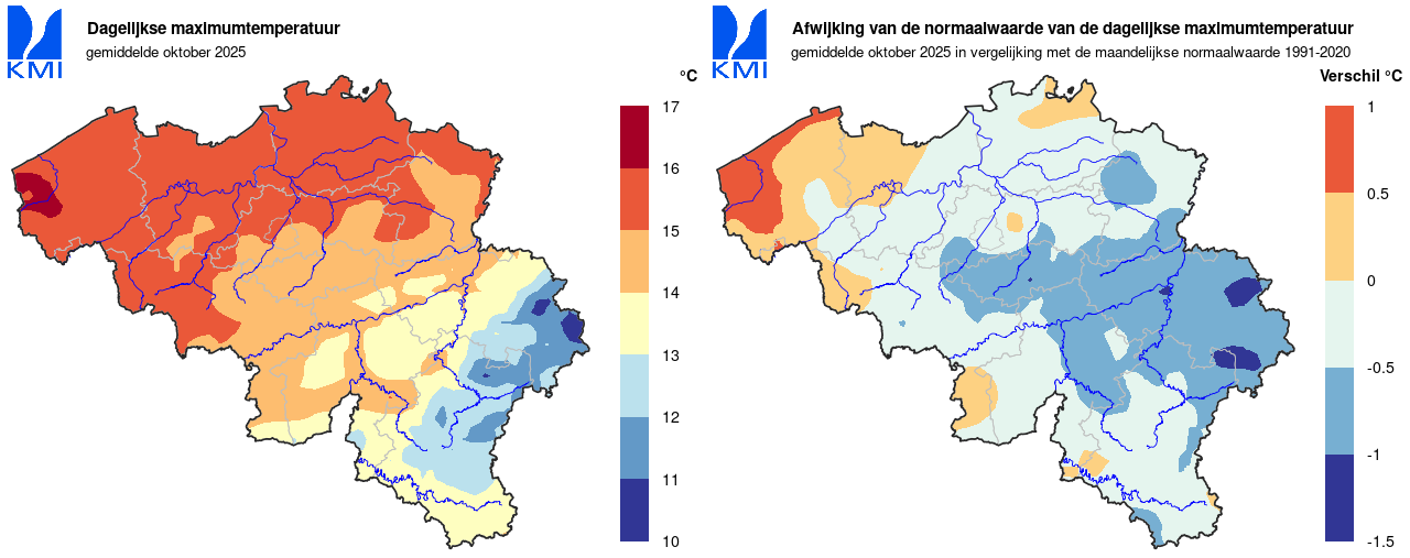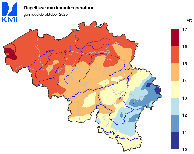 In de rest van ons land werd de laagste minimumtemperatuur op 2 oktober in Elsenborn (Bütgenbach) gemeten met -1,6°C. De hoogste maximumtemperatuur werd op de 1ste in Zulzeke (Kluisbergen) geregistreerd met 20,1°C.