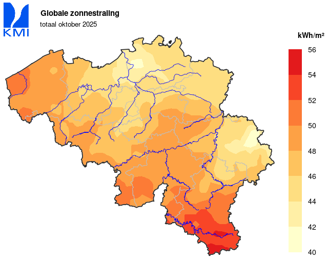 | Globale zonnestraling | kWh/m² | 44.7 | 56.3 | -- | 71.5 | 2018 | 33 | 1998 |