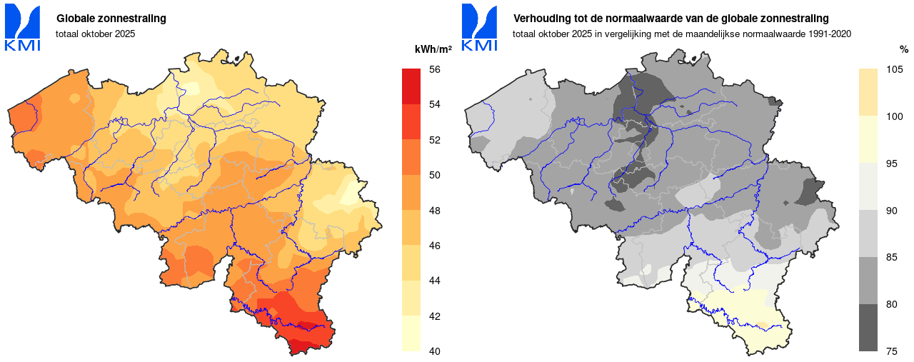 De volledige maand oktober was héél somber. De zon scheen in Ukkel slechts 46u 10min (normaal: 112u 38min). Daarmee is dit de tweede somberste oktobermaand sinds het begin van de metingen in 1887. Enkel in oktober 1998 scheen de zon nog minder (42u 48 min).