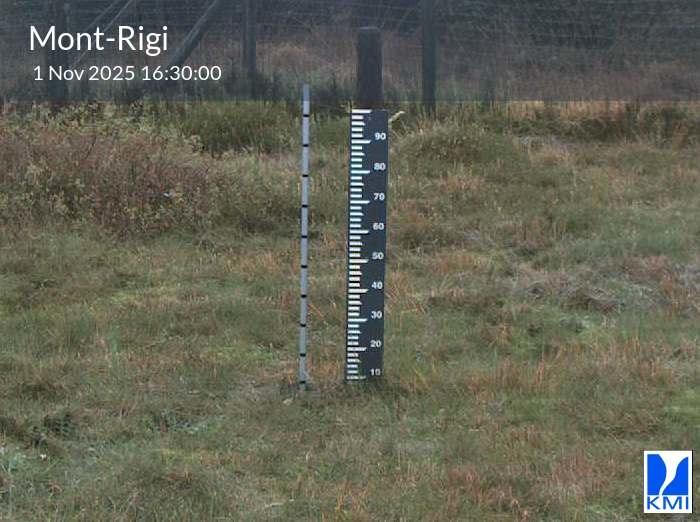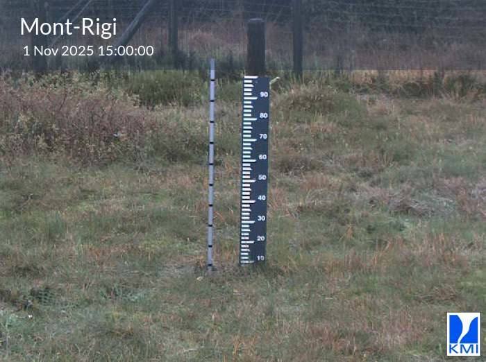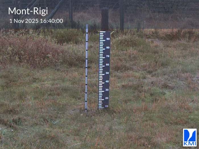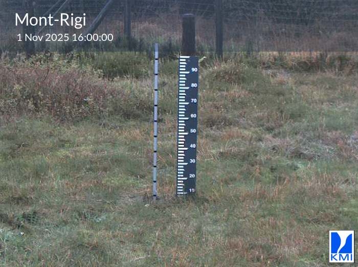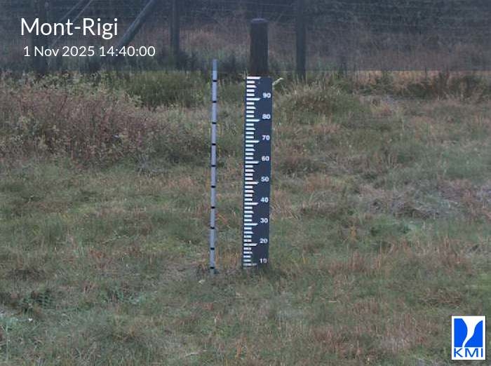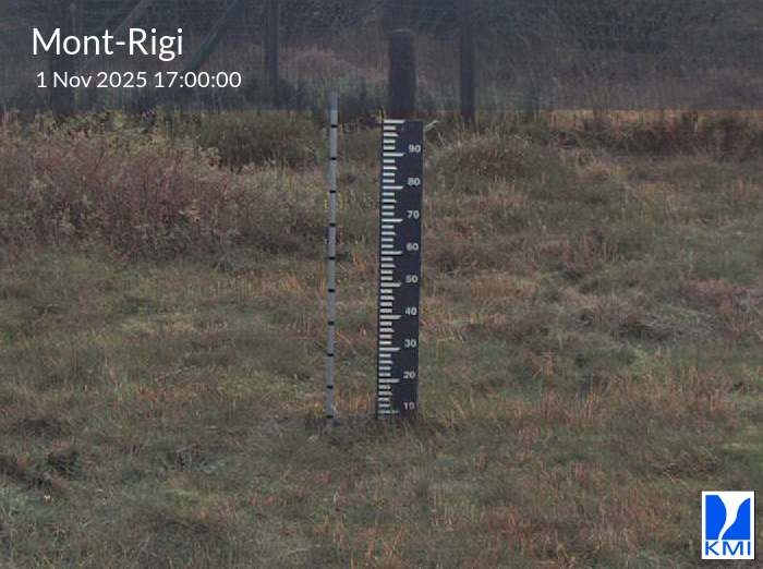 De meetlat op het beeld laat toe om de actuele sneeuwhoogte (in cm) in te schatten.