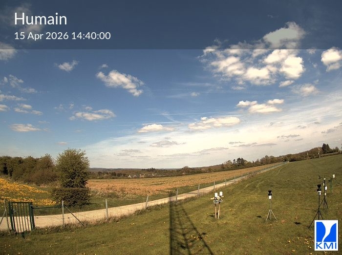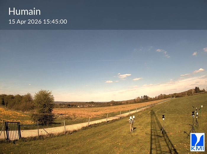 De camera kijkt uit op de Famenne, meer bepaald het kalksteenplateau van Gerny, en is naar het noorden gericht om het rechtstreekse zonlicht tijdens het middaguur te vermijden.