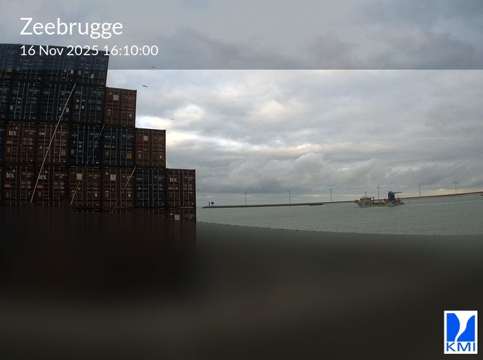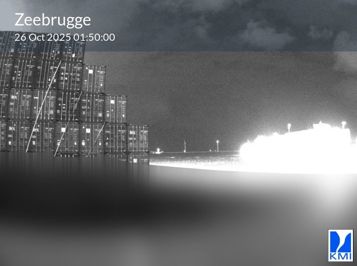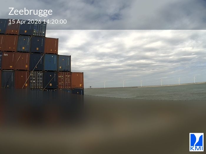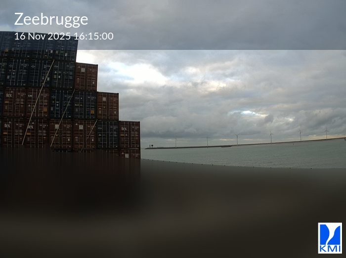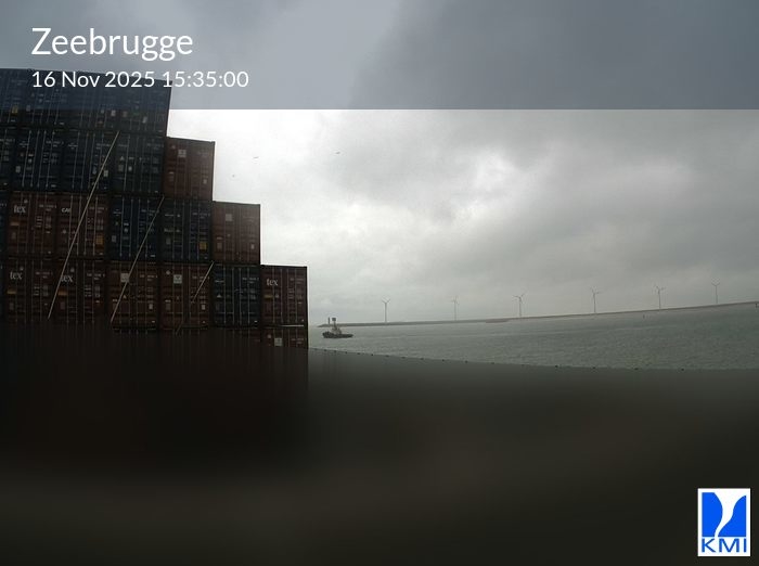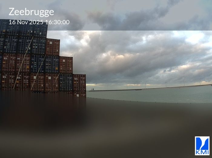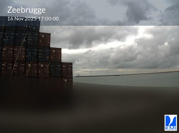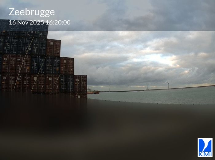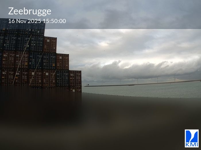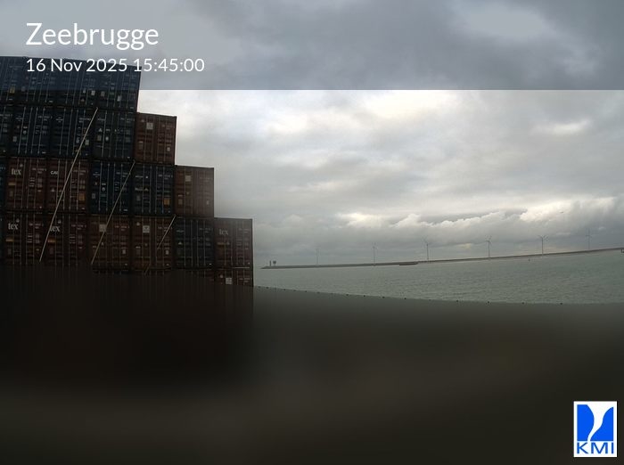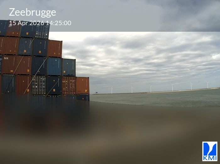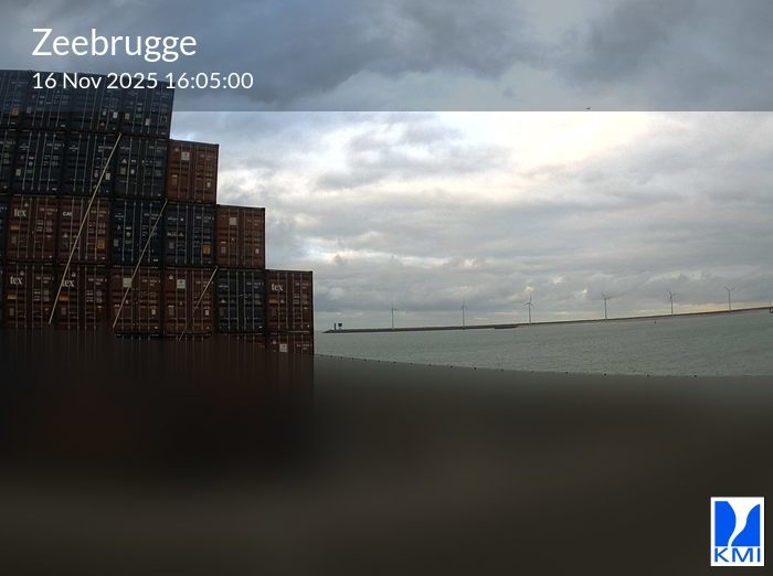 De webcam bevindt zich op de Leopold II-Dam in de haven van Zeebrugge aan de Belgische Kust en is naar het noorden gericht om het rechtstreekse zonlicht tijdens het middaguur te vermijden.