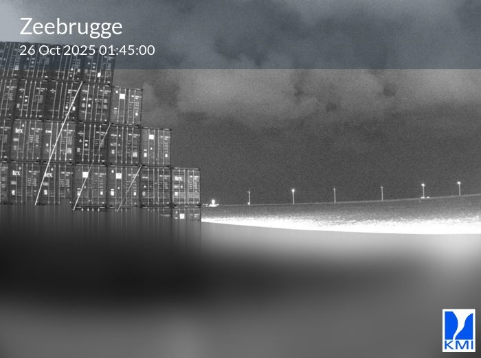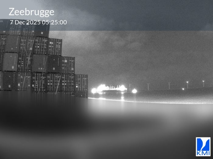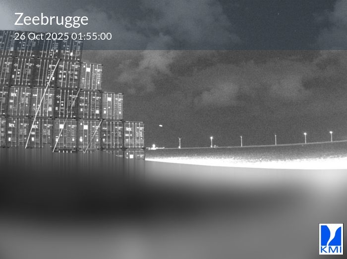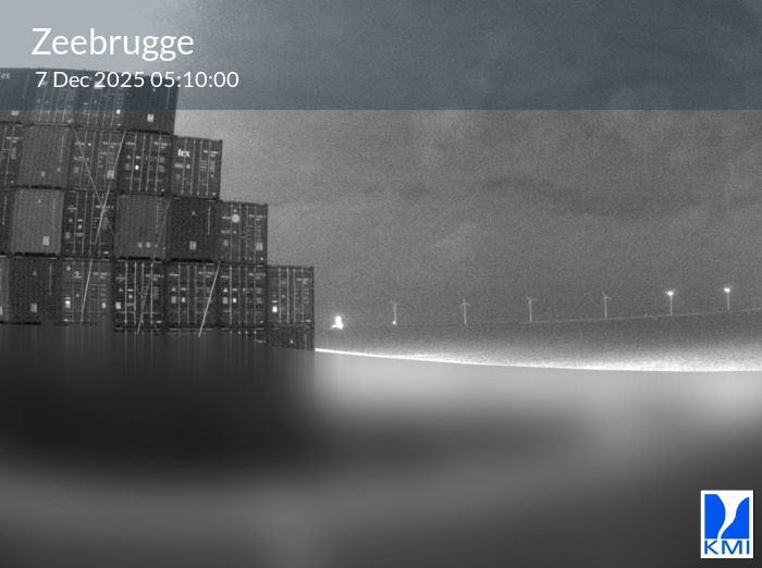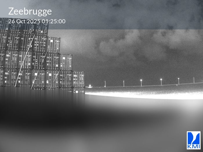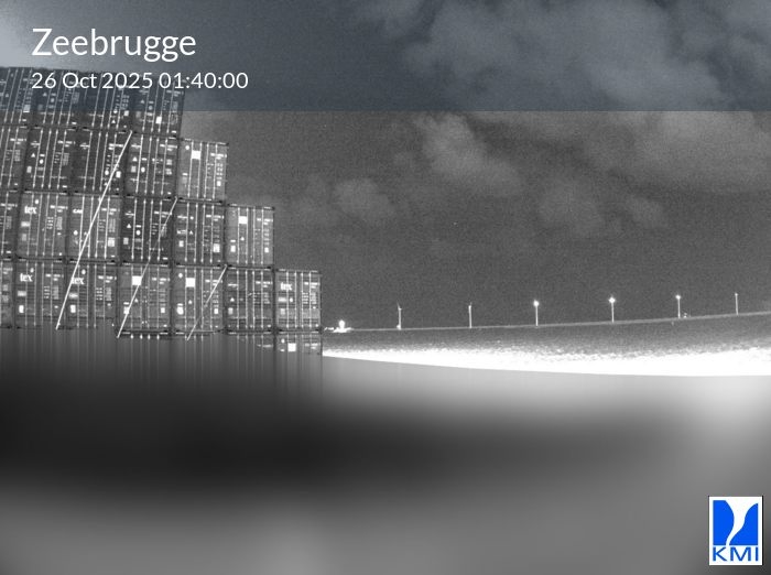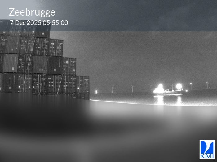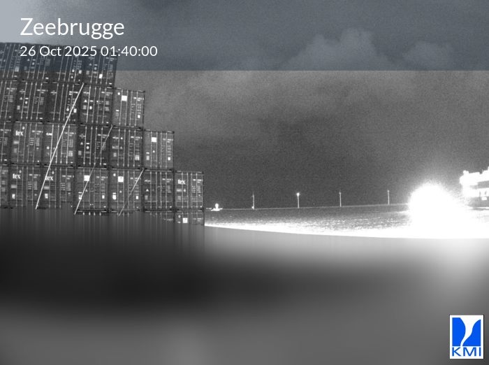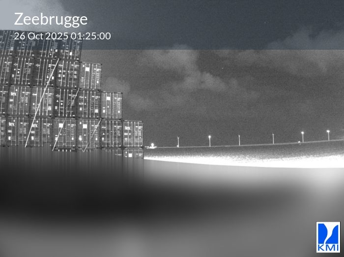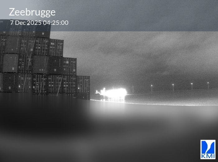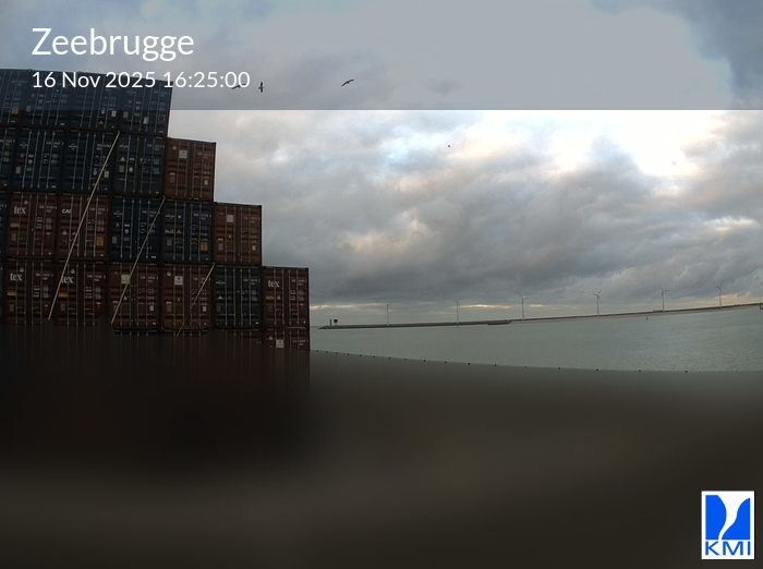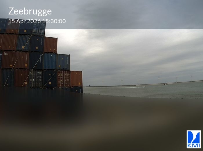 De webcam bevindt zich op de Leopold II-Dam in de haven van Zeebrugge aan de Belgische Kust en is naar het noorden gericht om het rechtstreekse zonlicht tijdens het middaguur te vermijden.