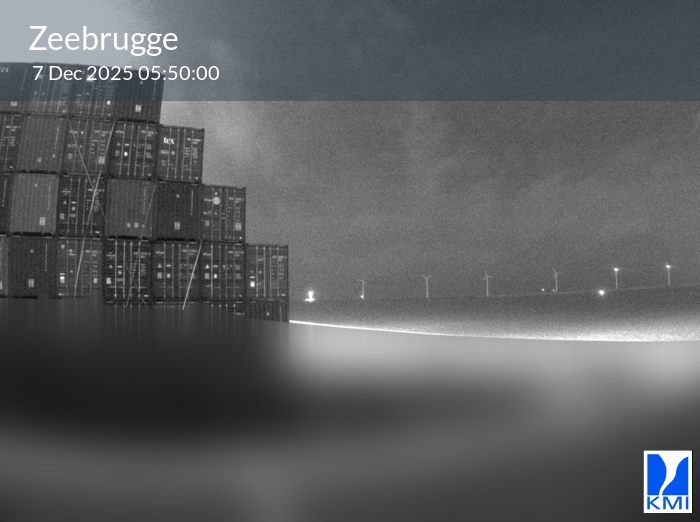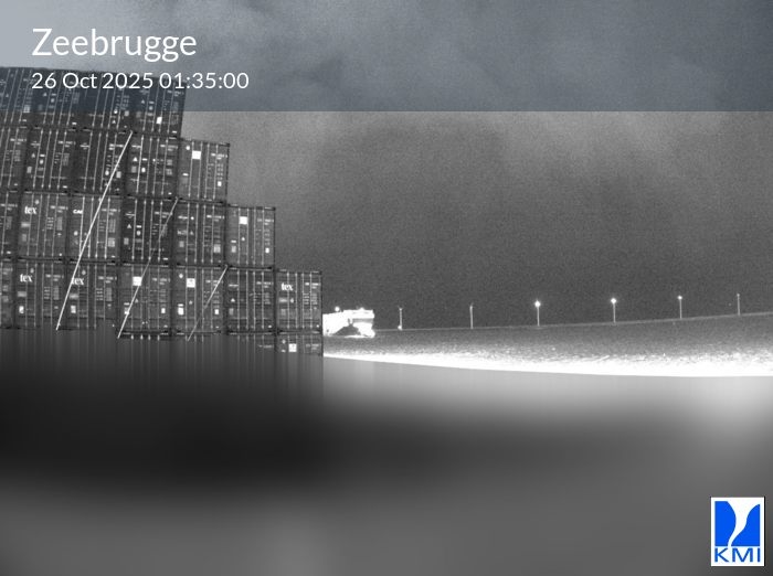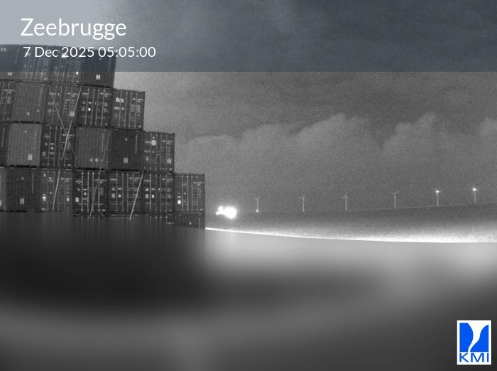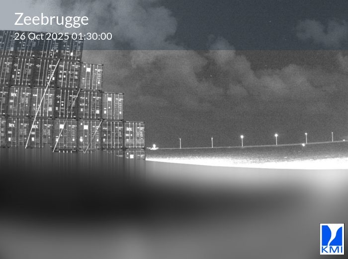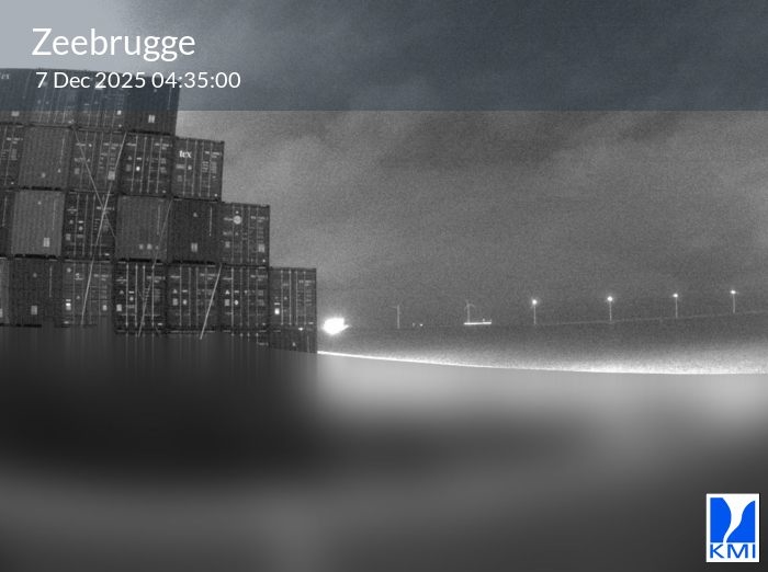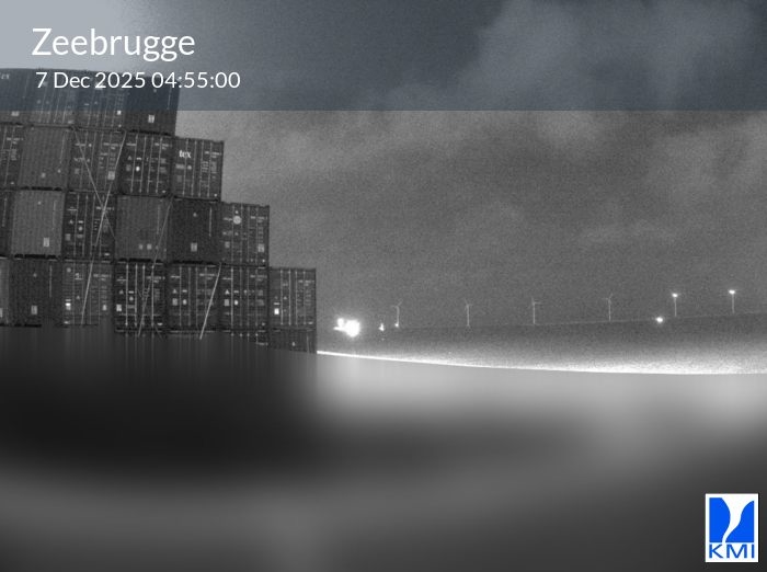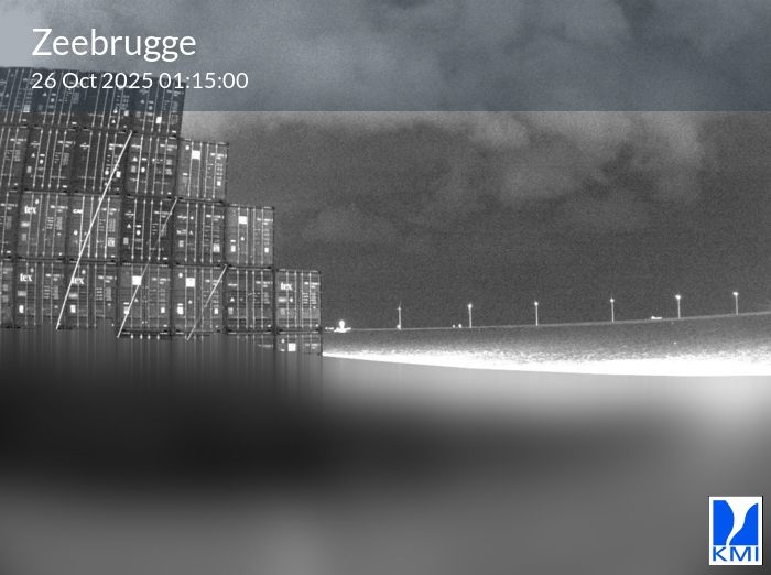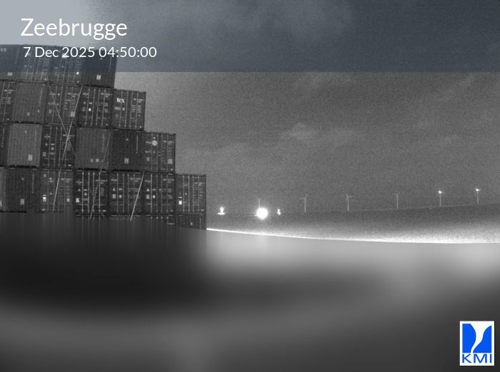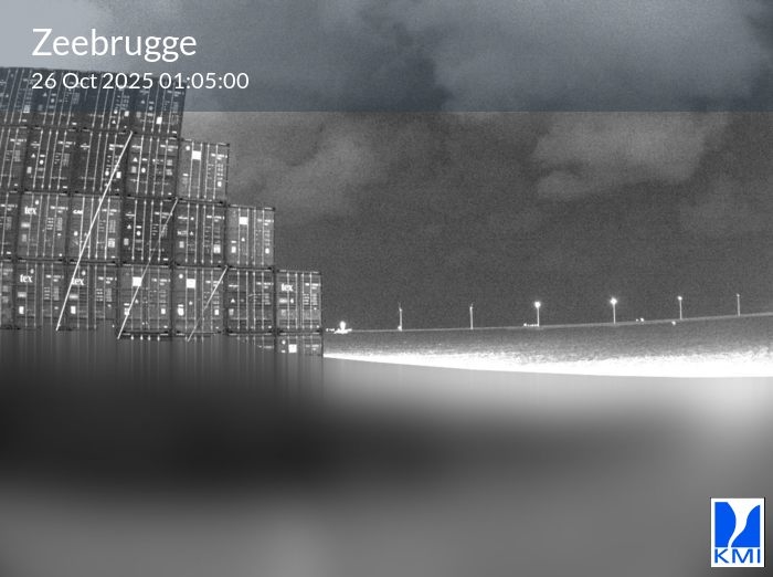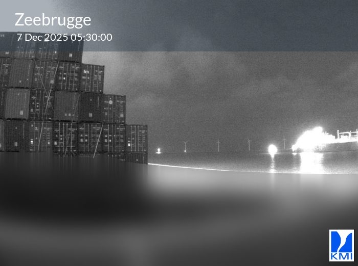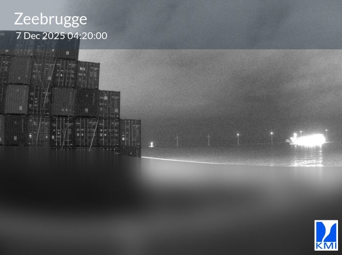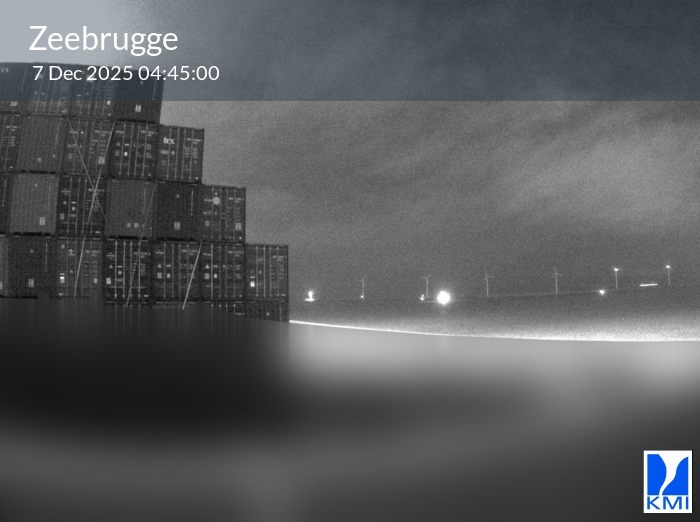 De webcam bevindt zich op de Leopold II-Dam in de haven van Zeebrugge aan de Belgische Kust en is naar het noorden gericht om het rechtstreekse zonlicht tijdens het middaguur te vermijden.