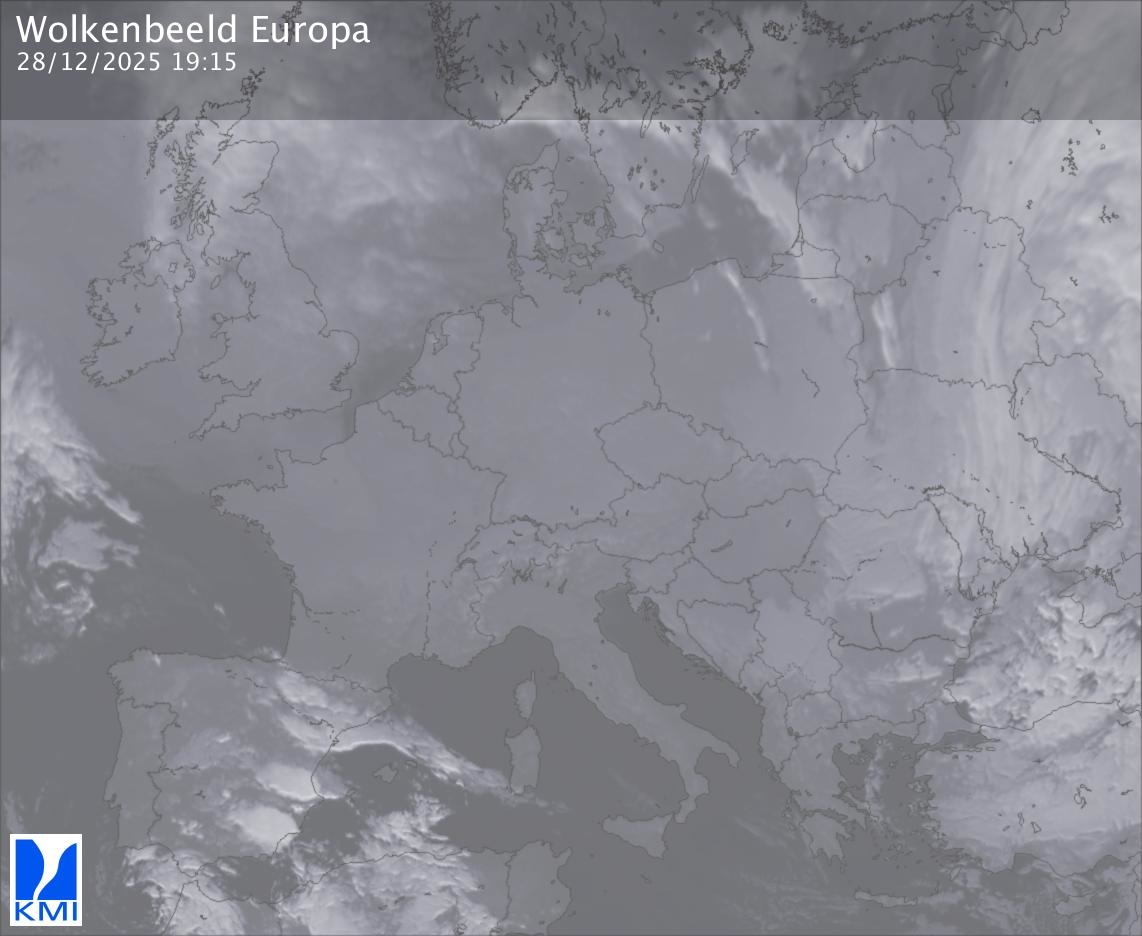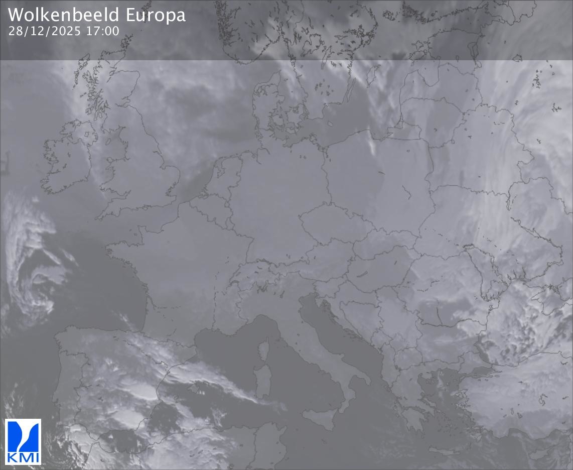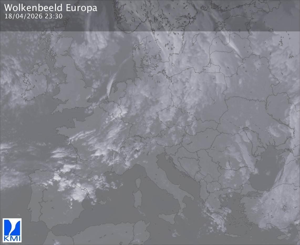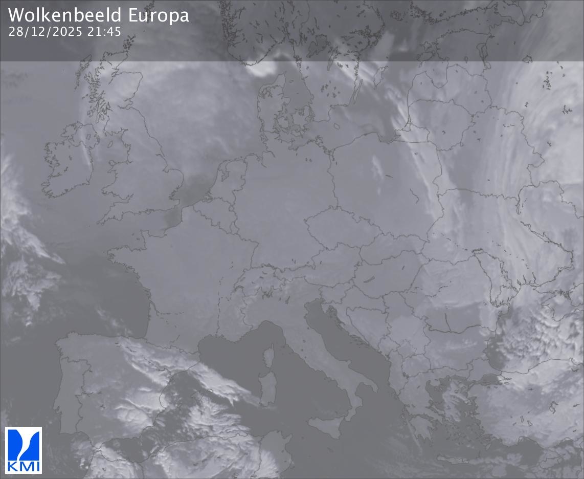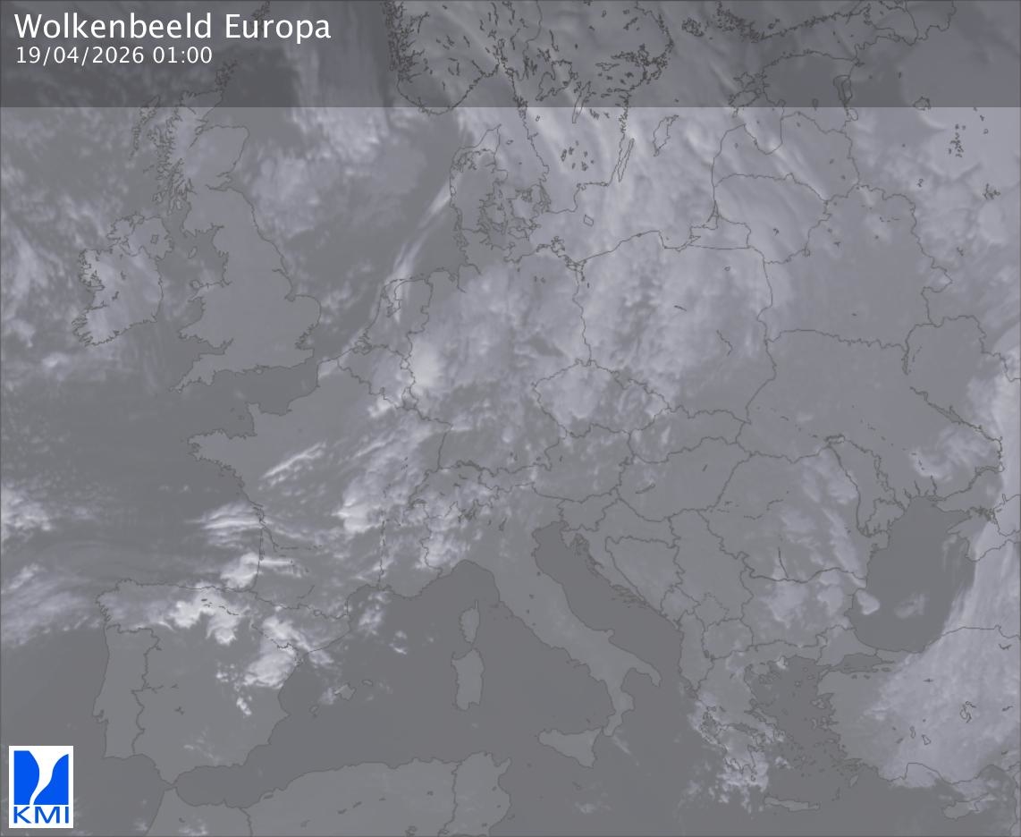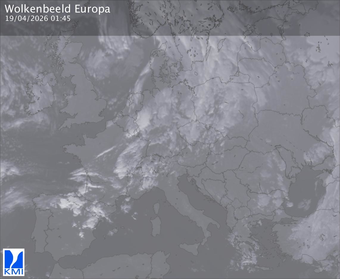 Wolkenbeelden van Europa: een combinatie uit het zichtbare (dag) en infrarode (nacht) spectrum.