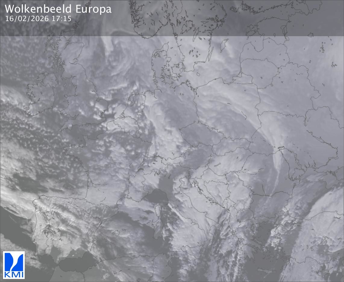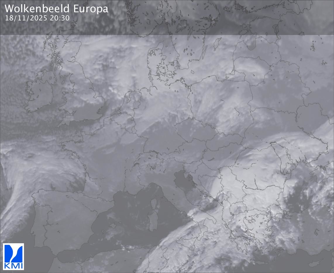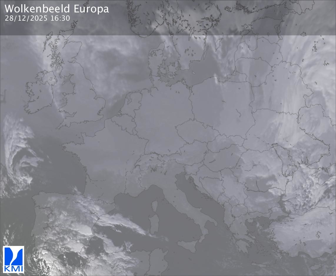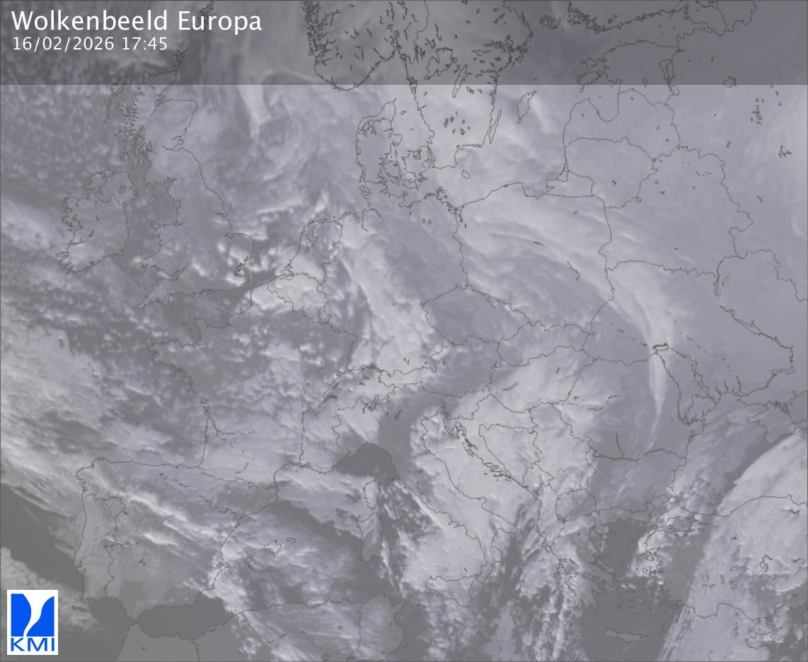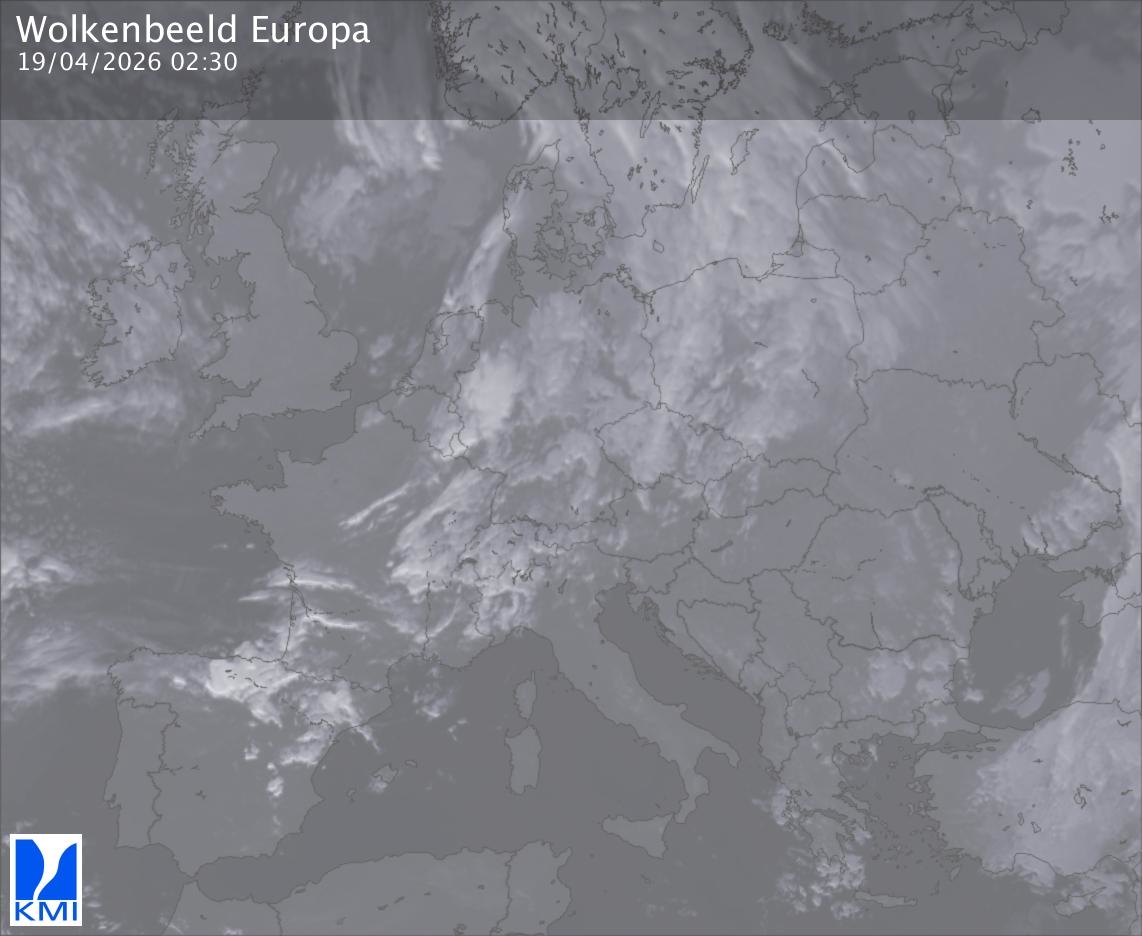 Wolkenbeelden van Europa: een combinatie uit het zichtbare (dag) en infrarode (nacht) spectrum.