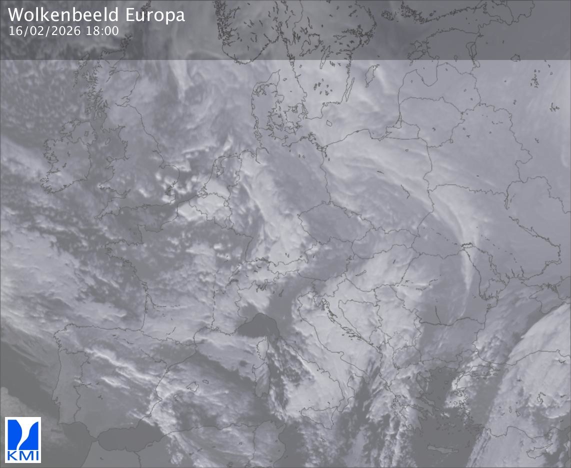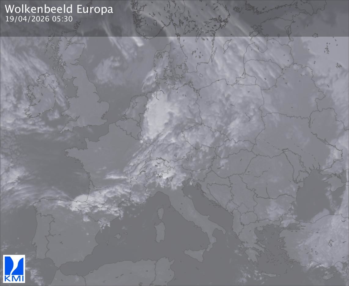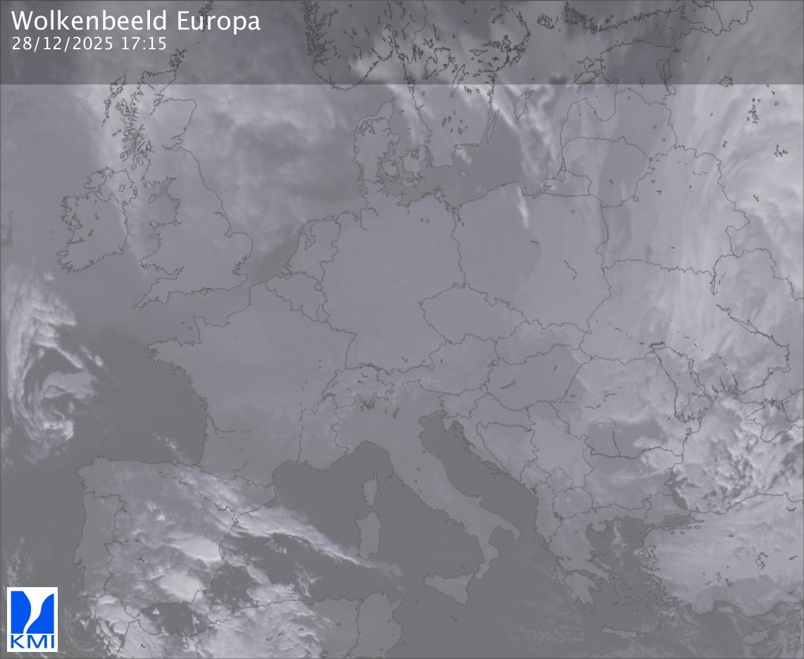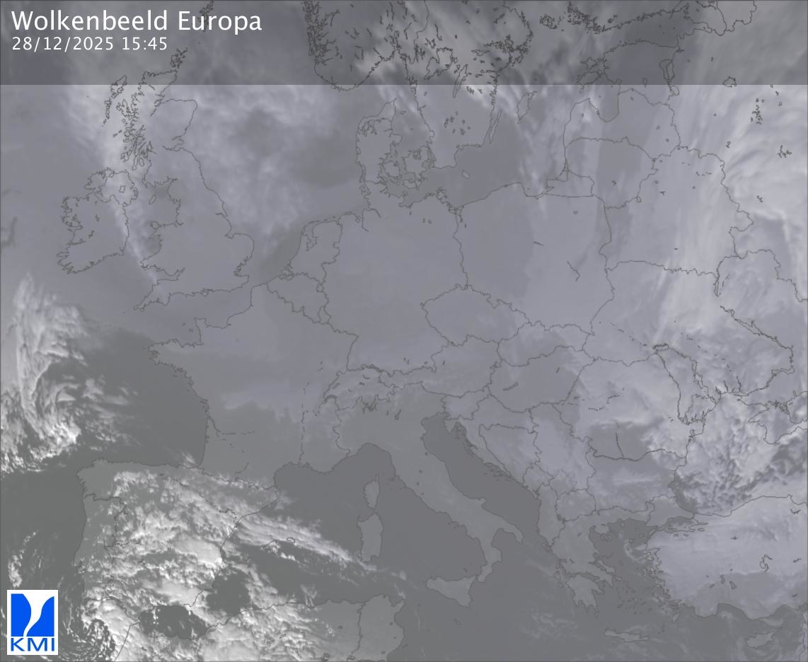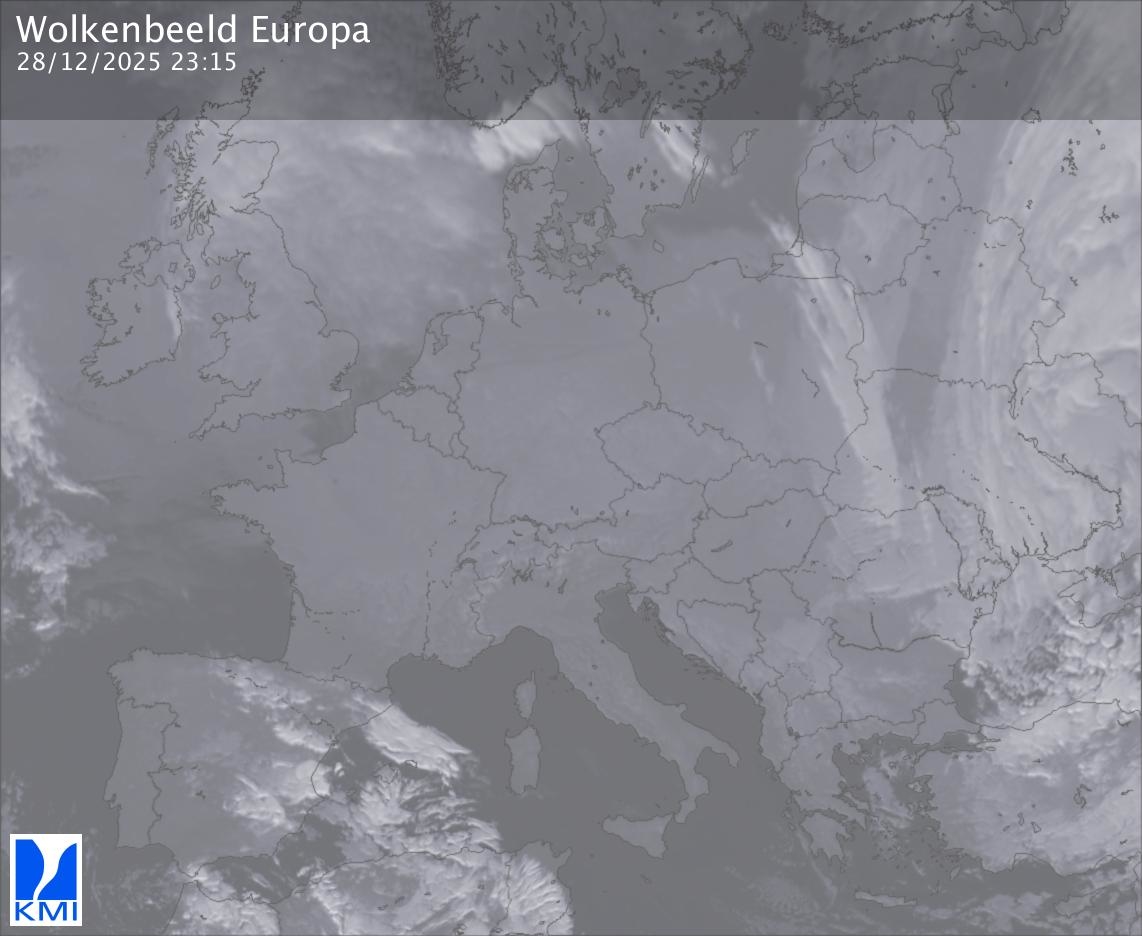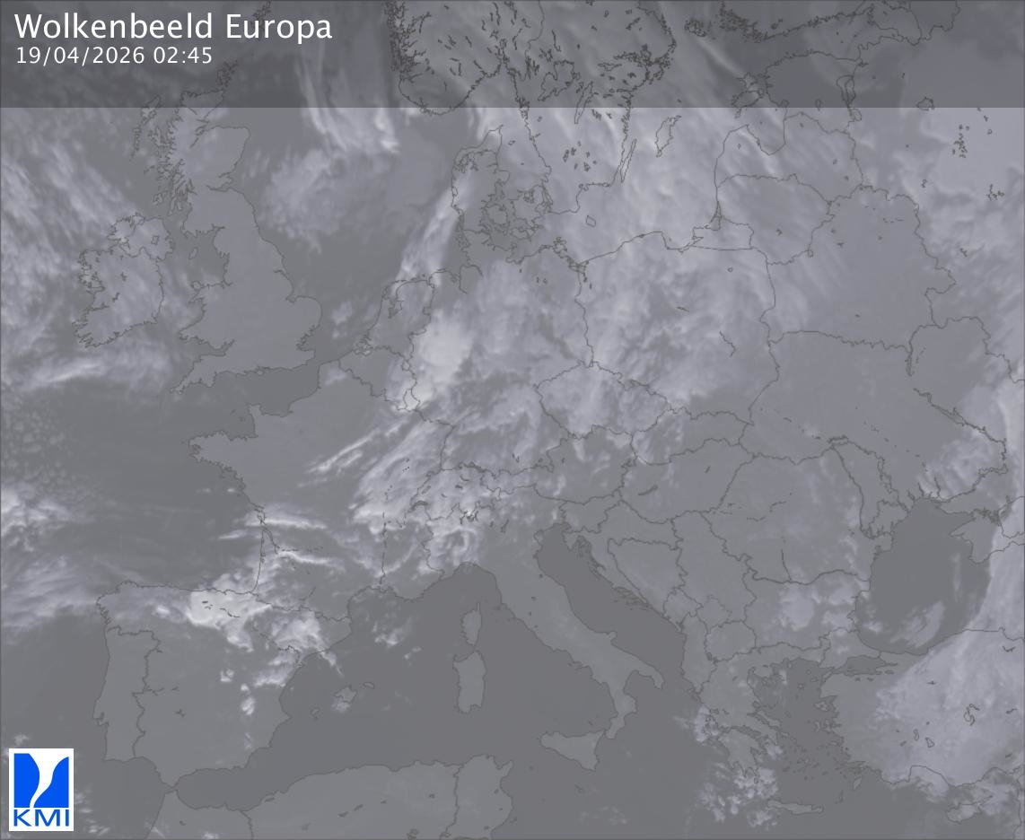 Wolkenbeelden van Europa: een combinatie uit het zichtbare (dag) en infrarode (nacht) spectrum.