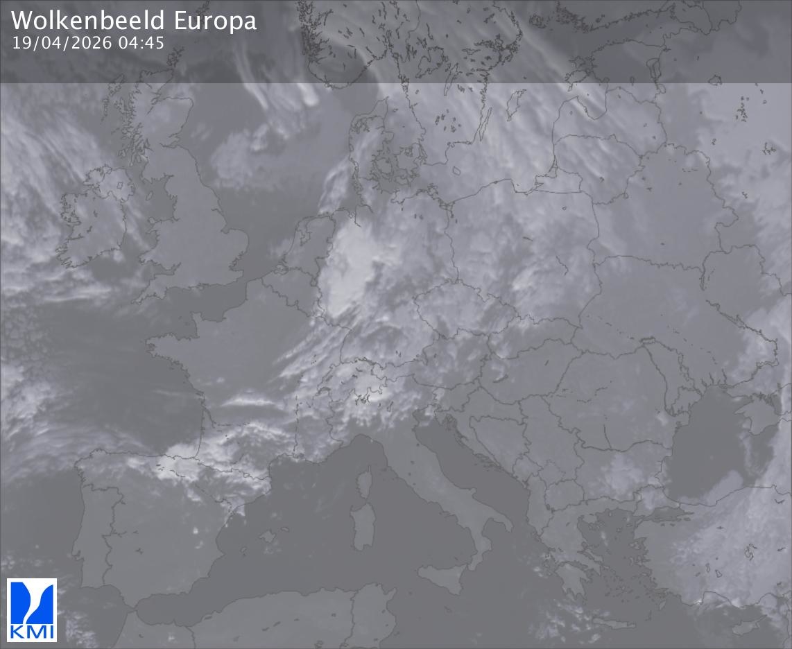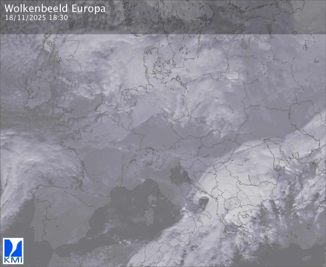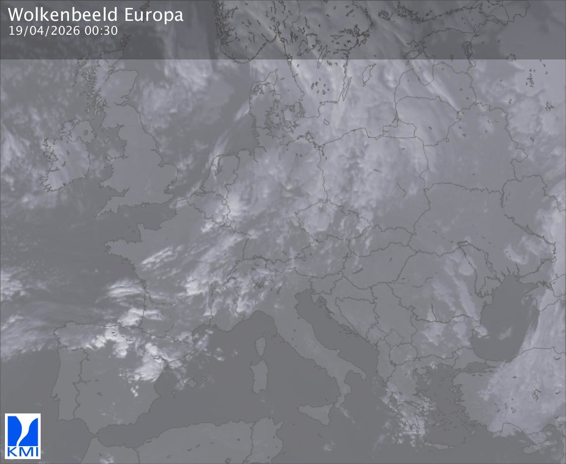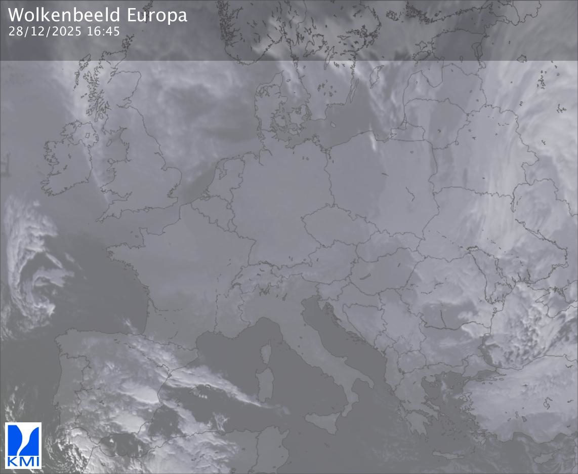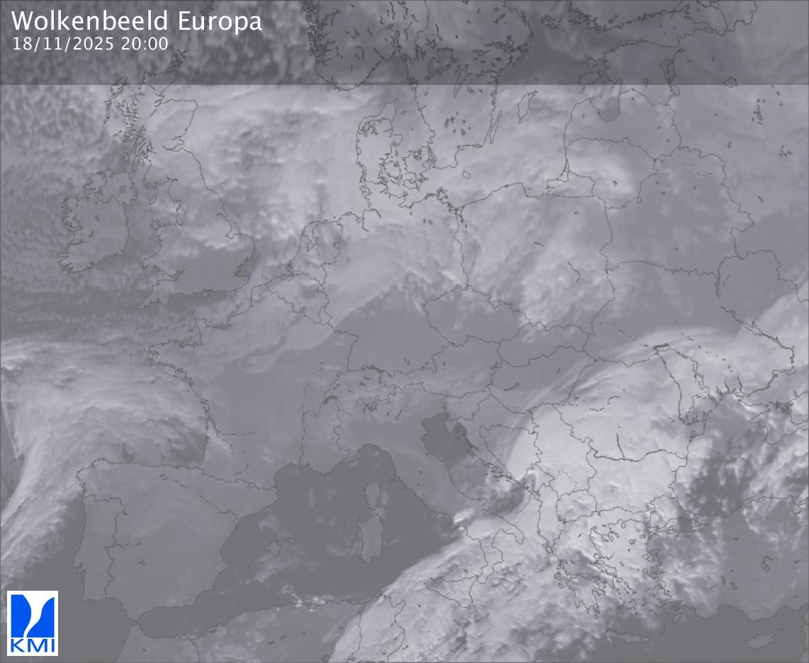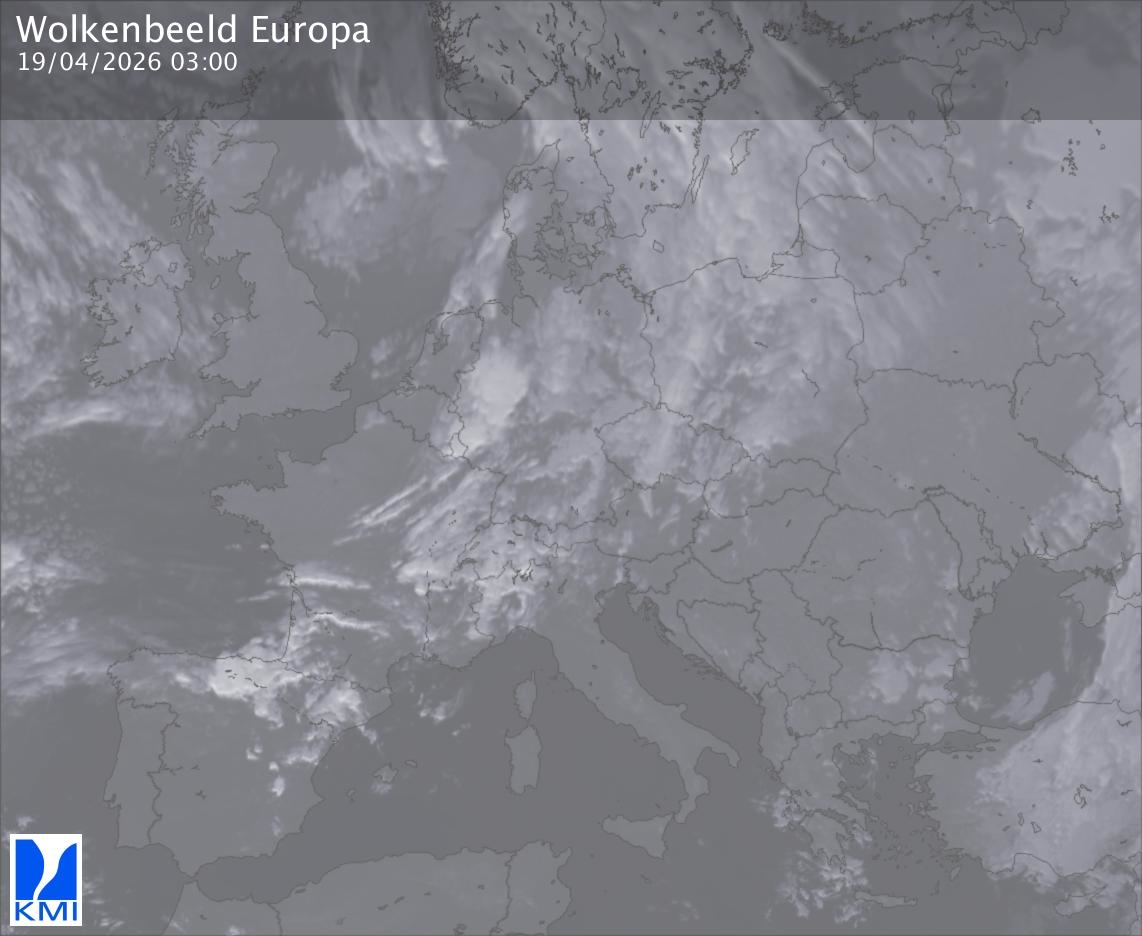 Wolkenbeelden van Europa: een combinatie uit het zichtbare (dag) en infrarode (nacht) spectrum.