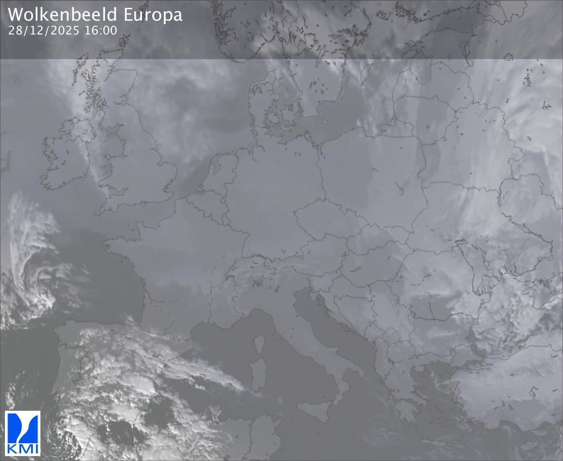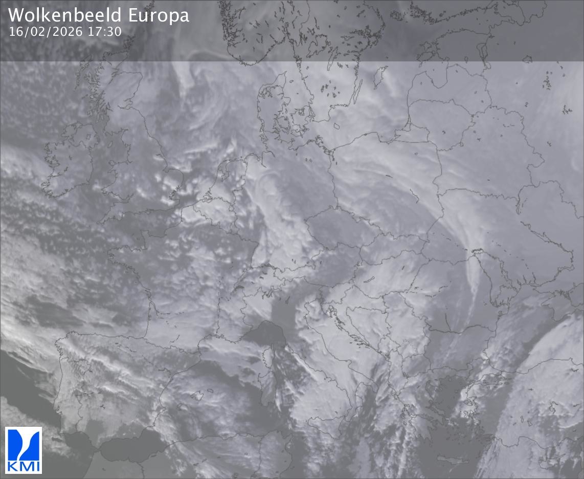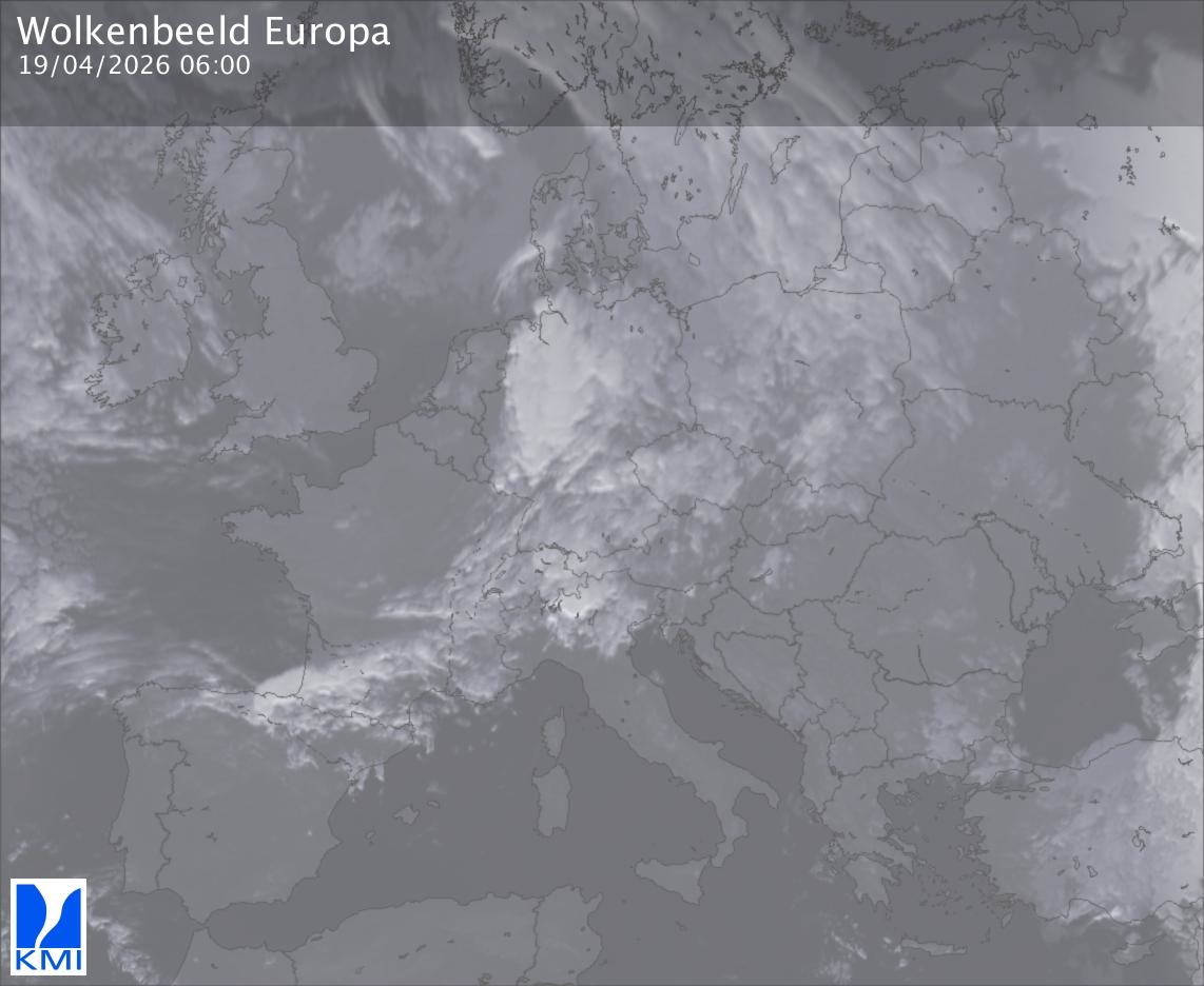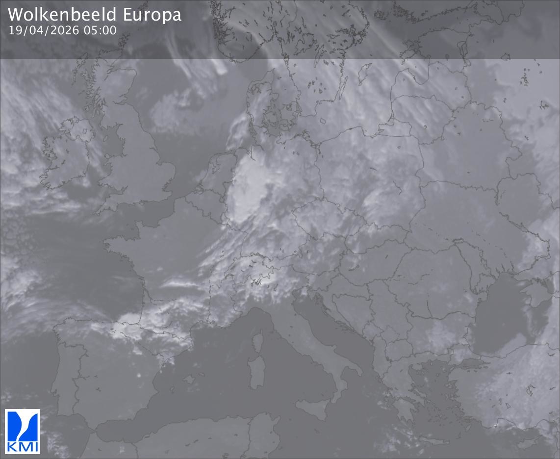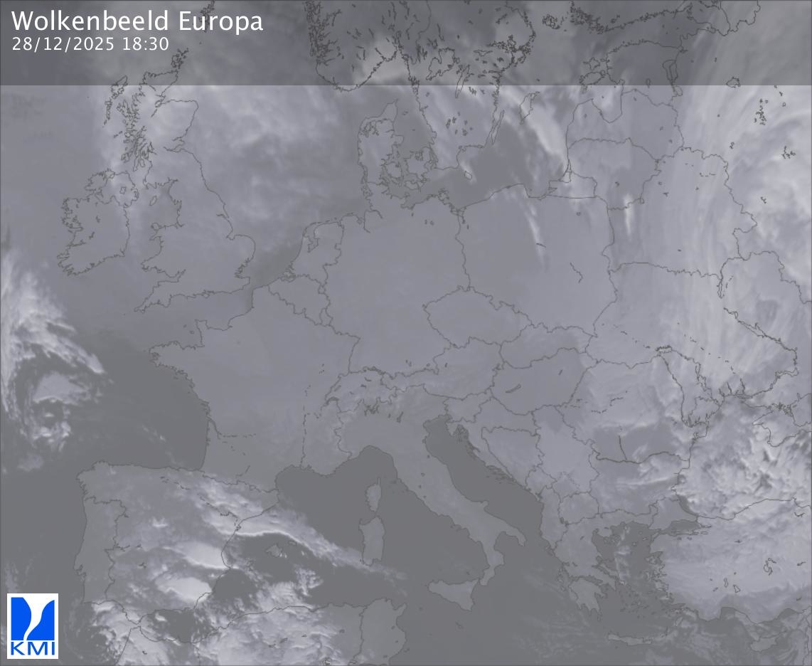 Wolkenbeelden van Europa: een combinatie uit het zichtbare (dag) en infrarode (nacht) spectrum.