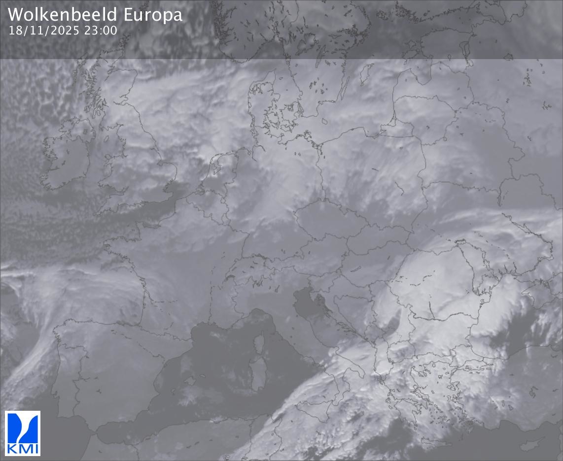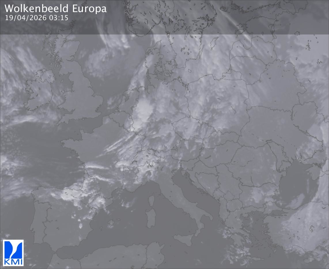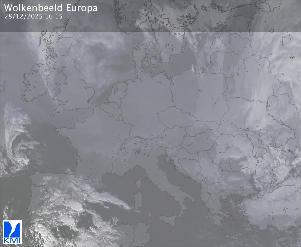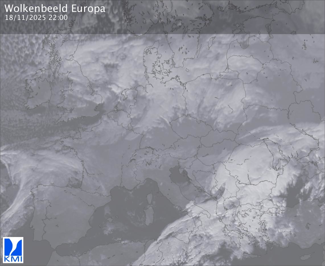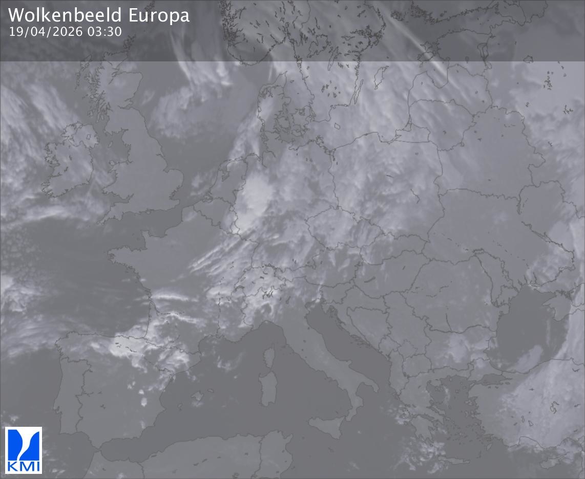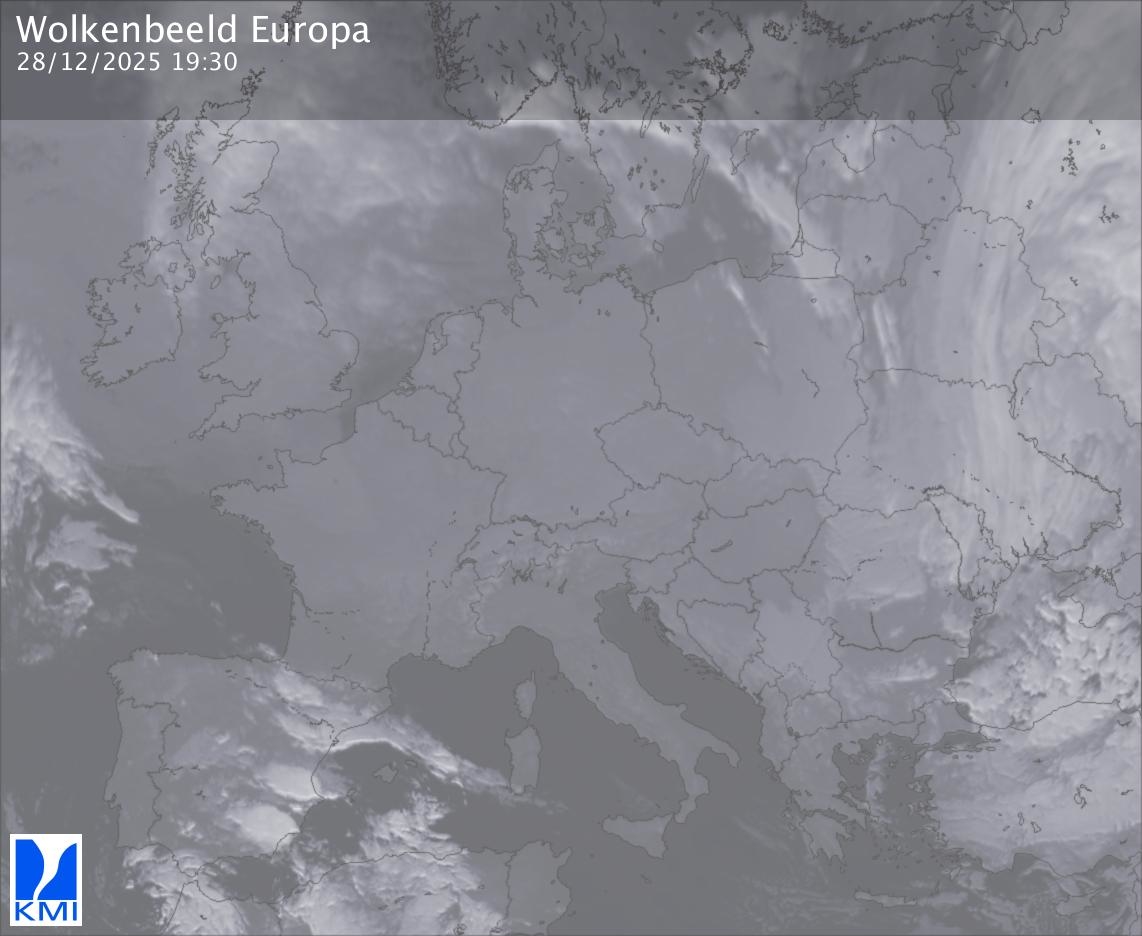 Wolkenbeelden van Europa: een combinatie uit het zichtbare (dag) en infrarode (nacht) spectrum.