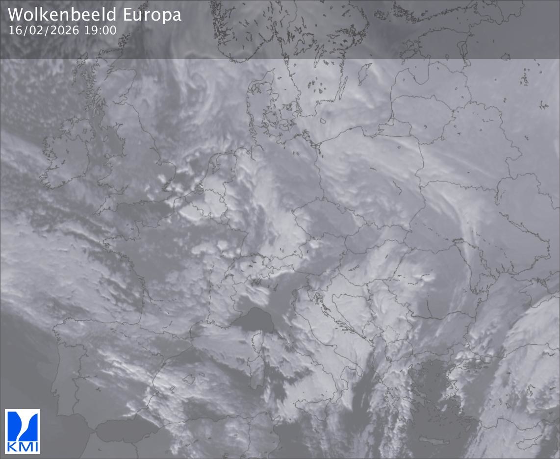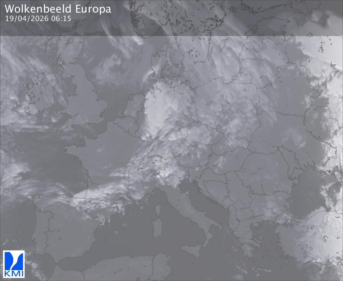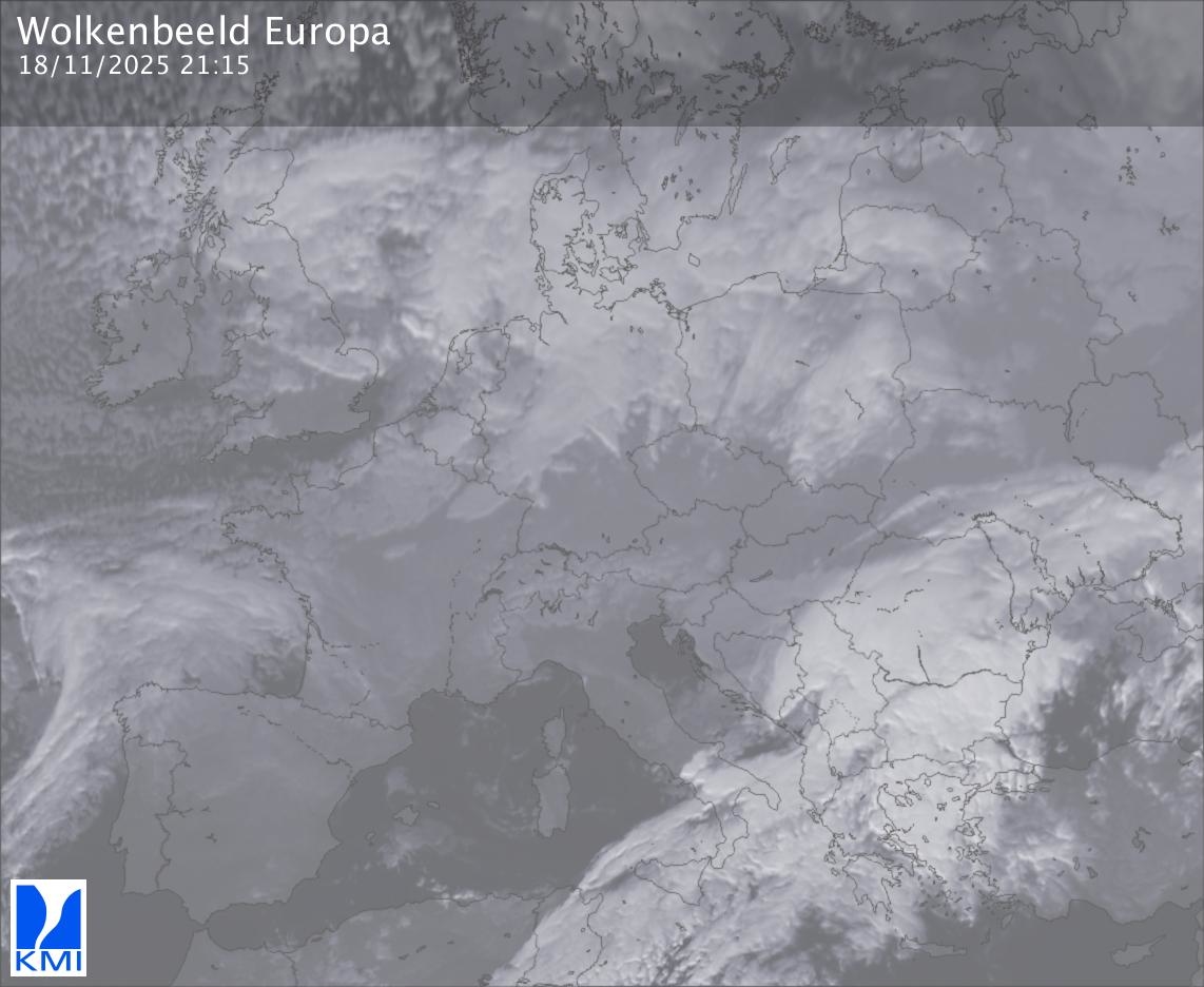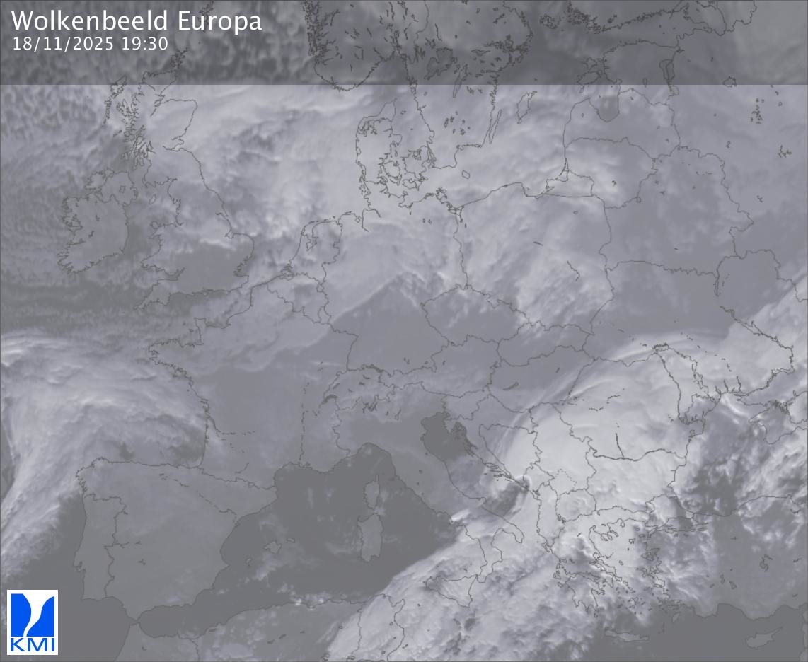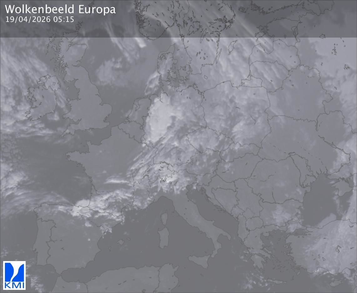 Wolkenbeelden van Europa: een combinatie uit het zichtbare (dag) en infrarode (nacht) spectrum.