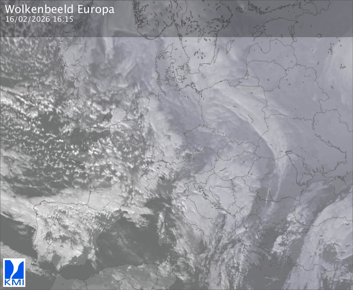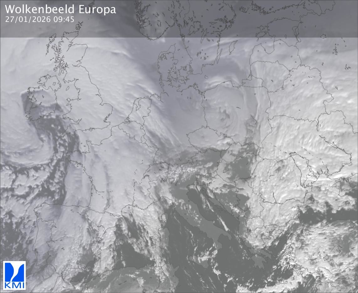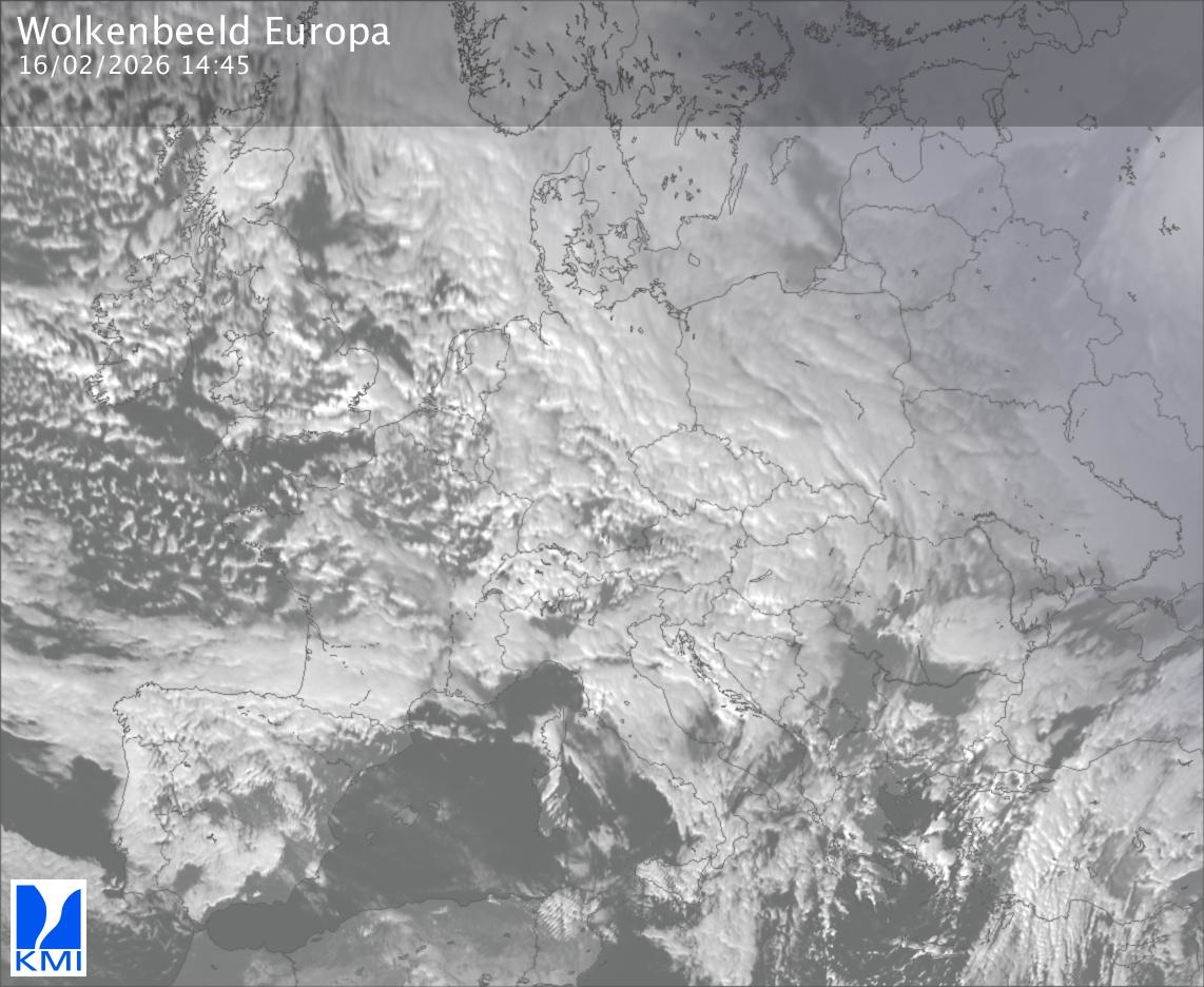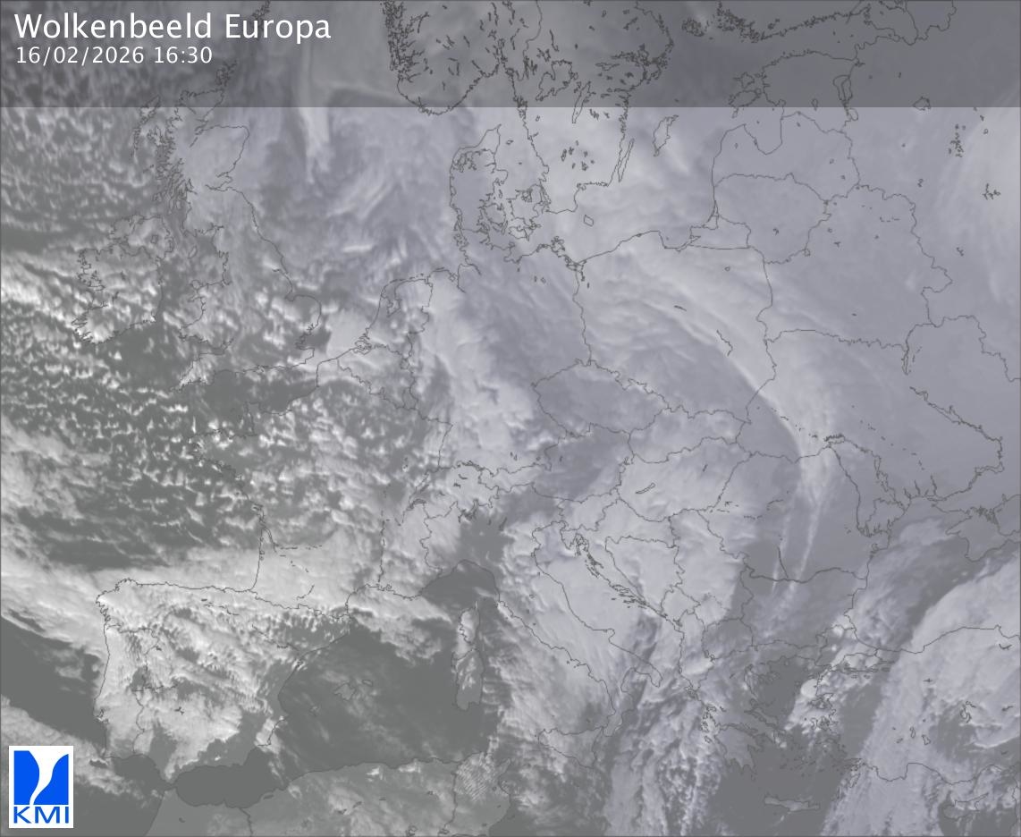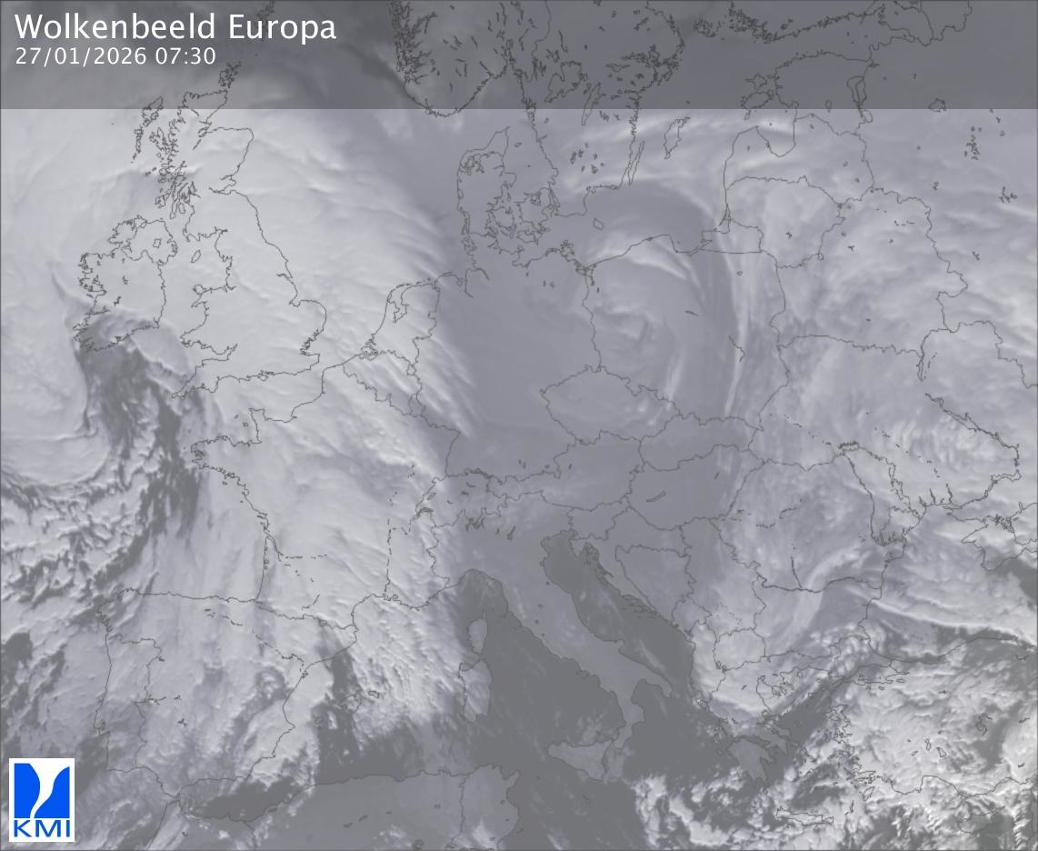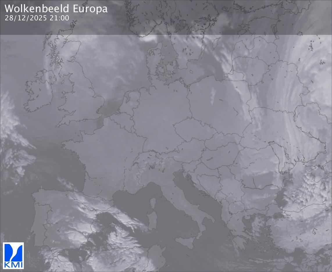 Wolkenbeelden van Europa: een combinatie uit het zichtbare (dag) en infrarode (nacht) spectrum.