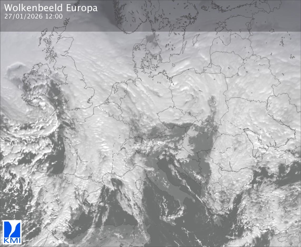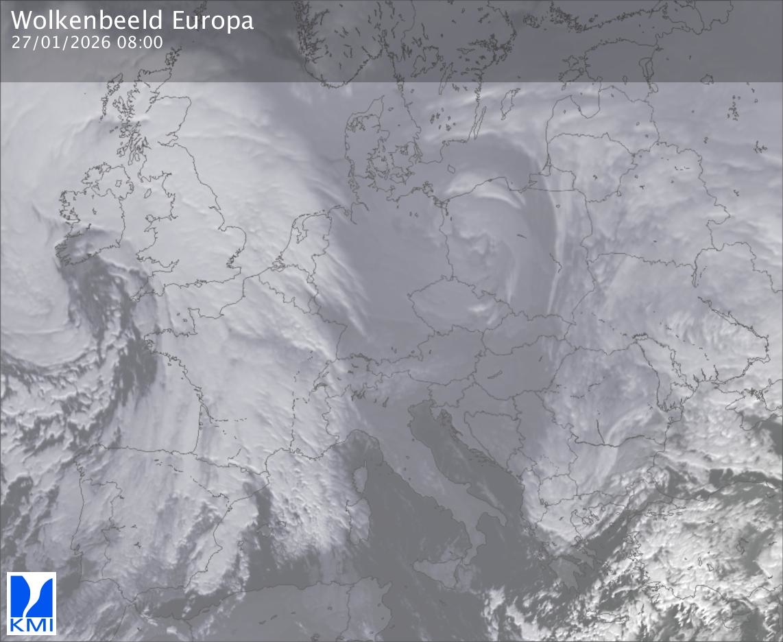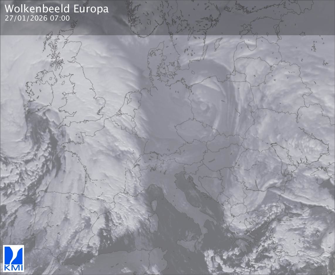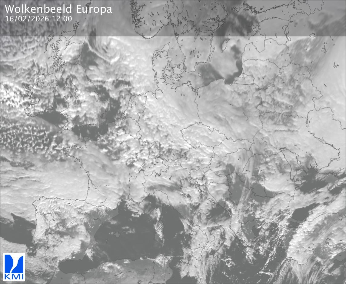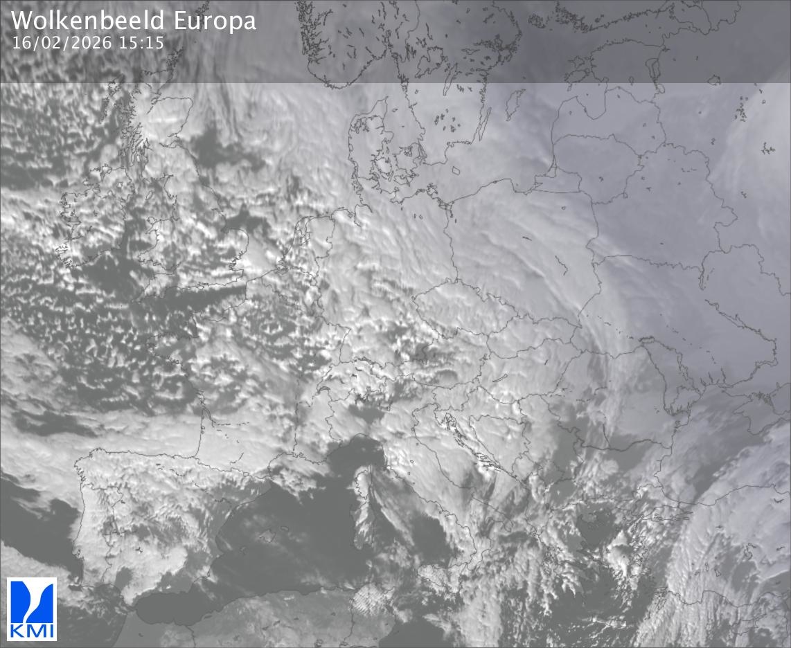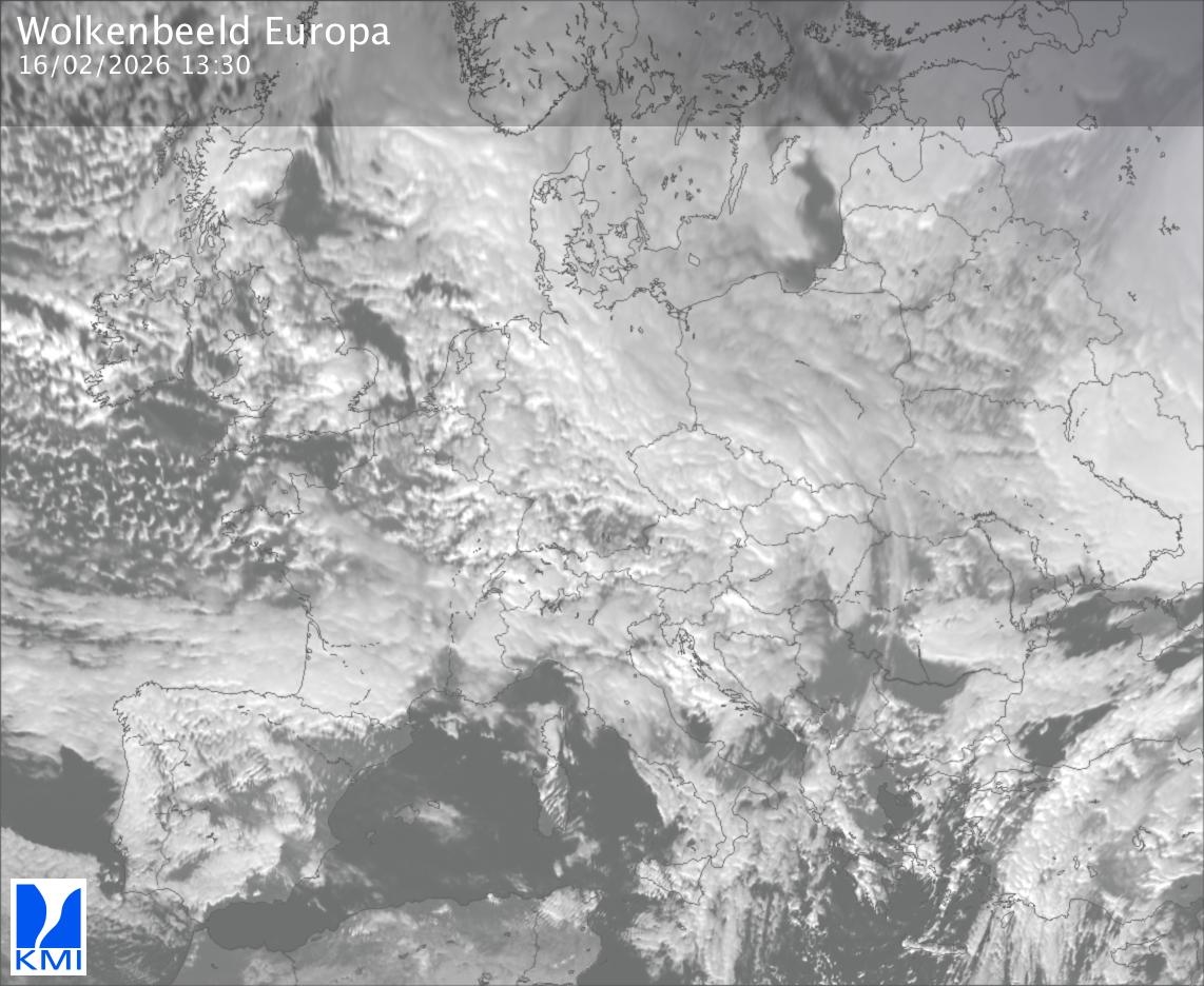 Wolkenbeelden van Europa: een combinatie uit het zichtbare (dag) en infrarode (nacht) spectrum.