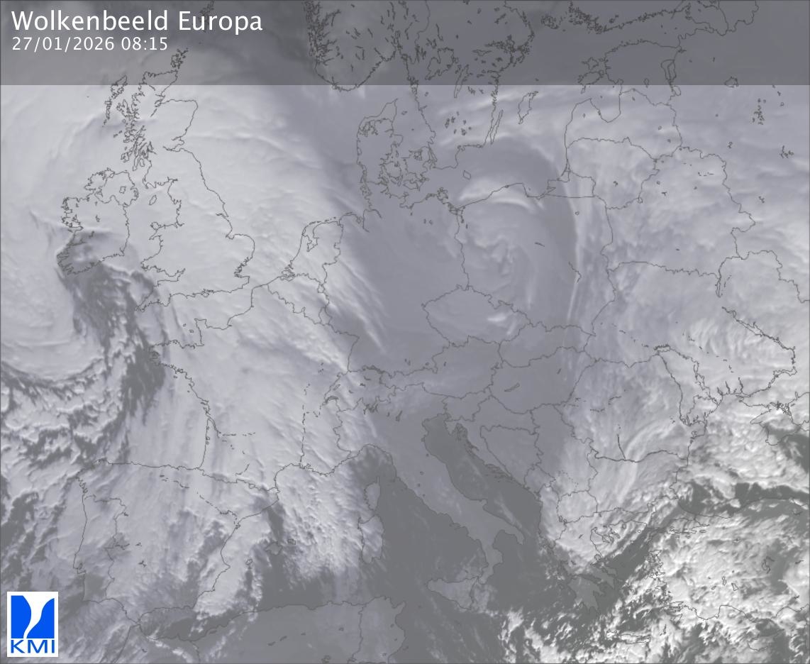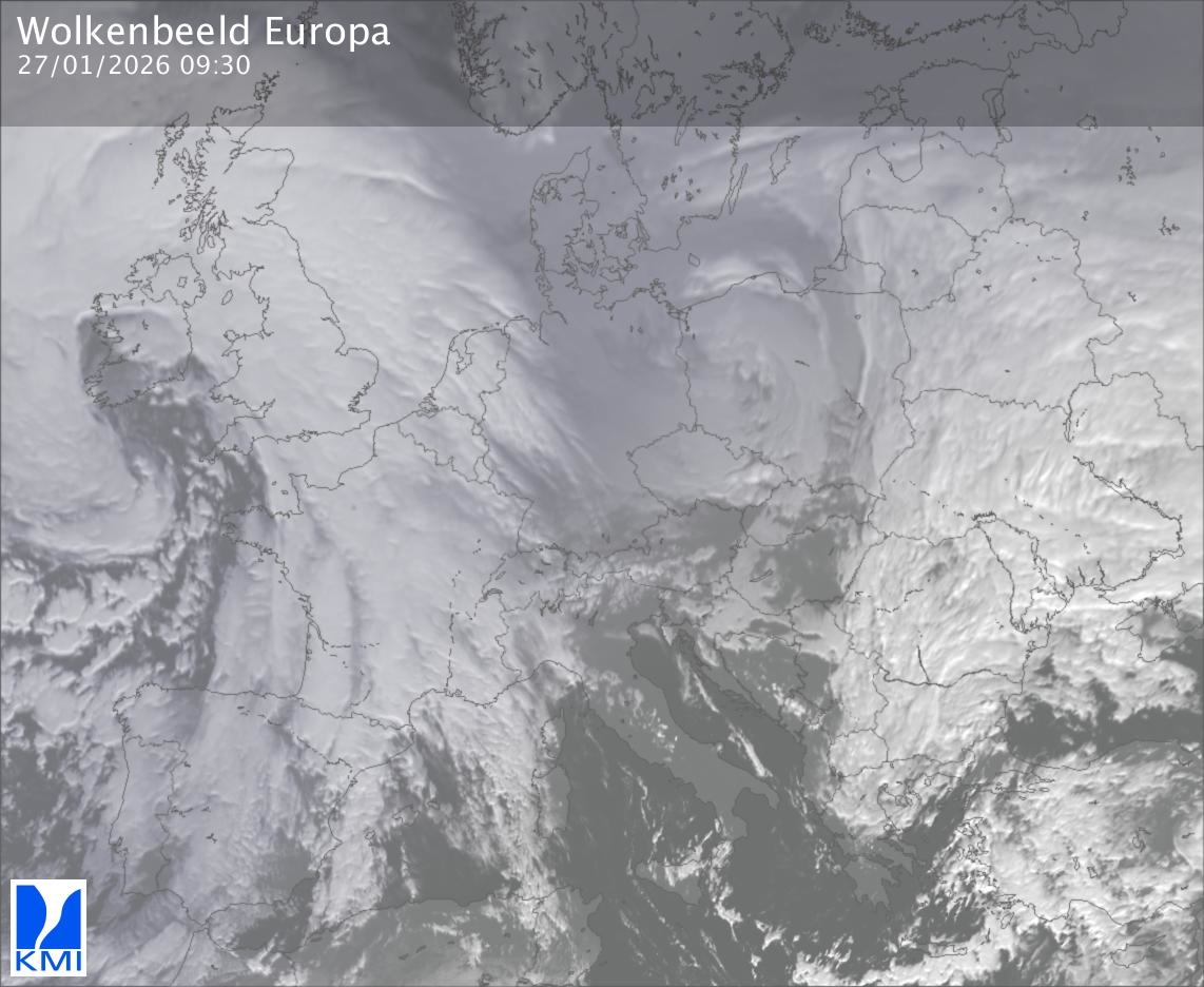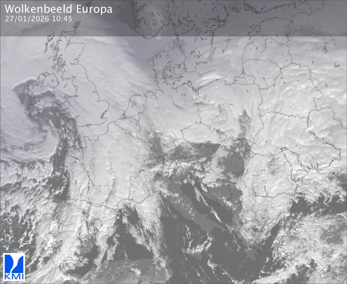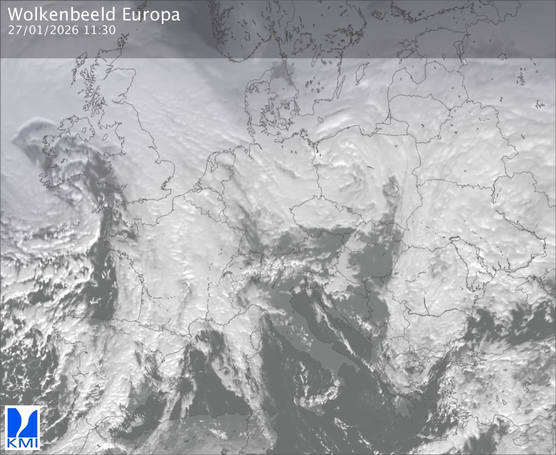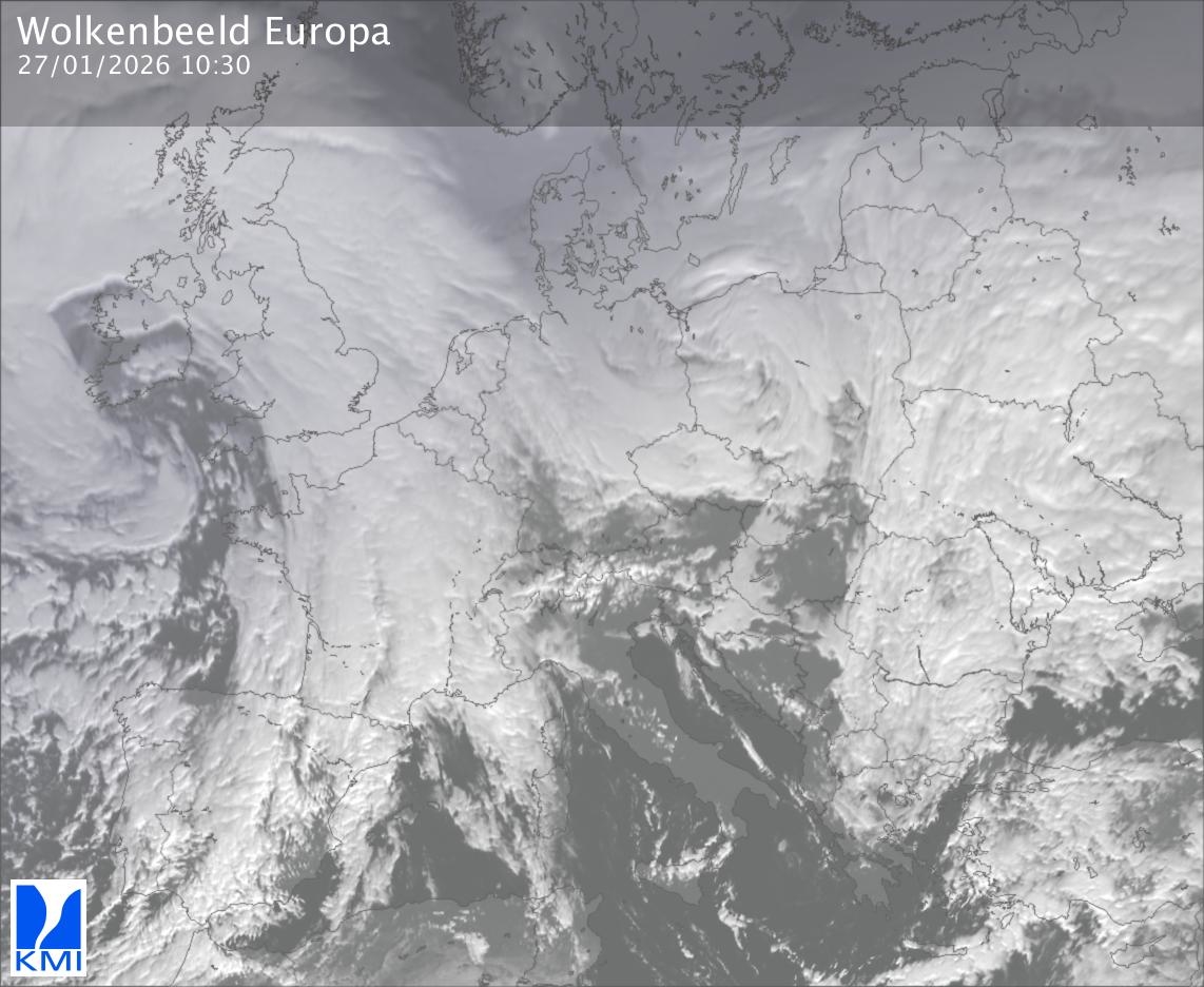 Wolkenbeelden van Europa: een combinatie uit het zichtbare (dag) en infrarode (nacht) spectrum.