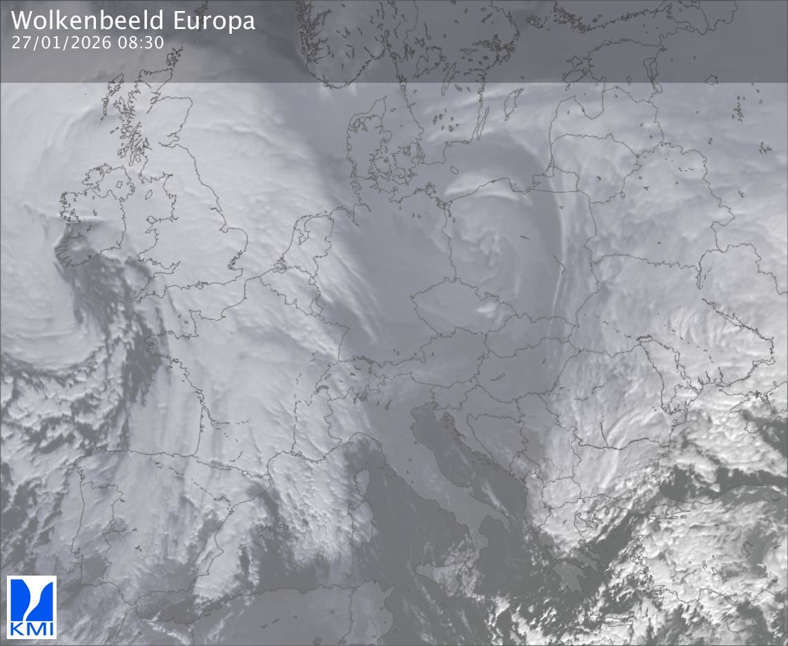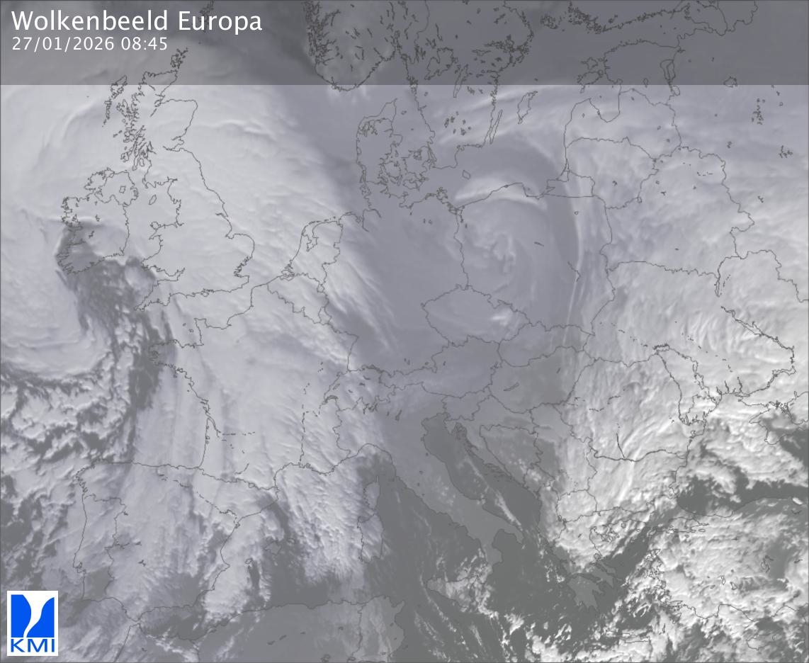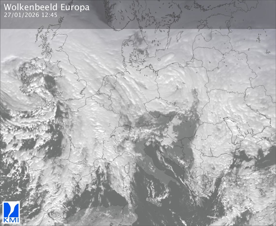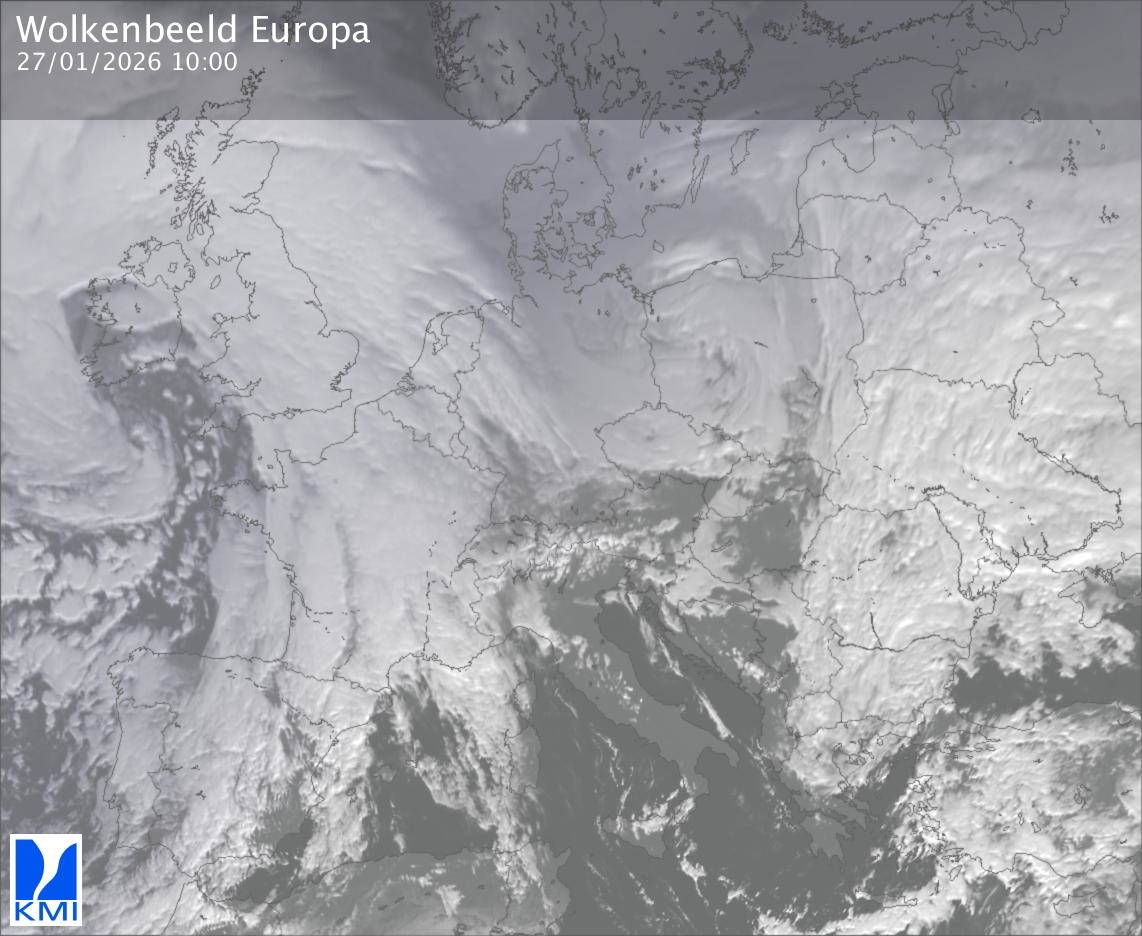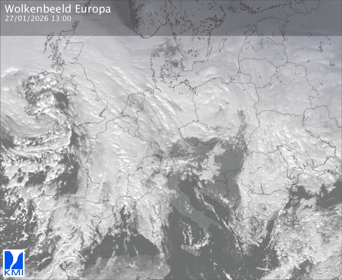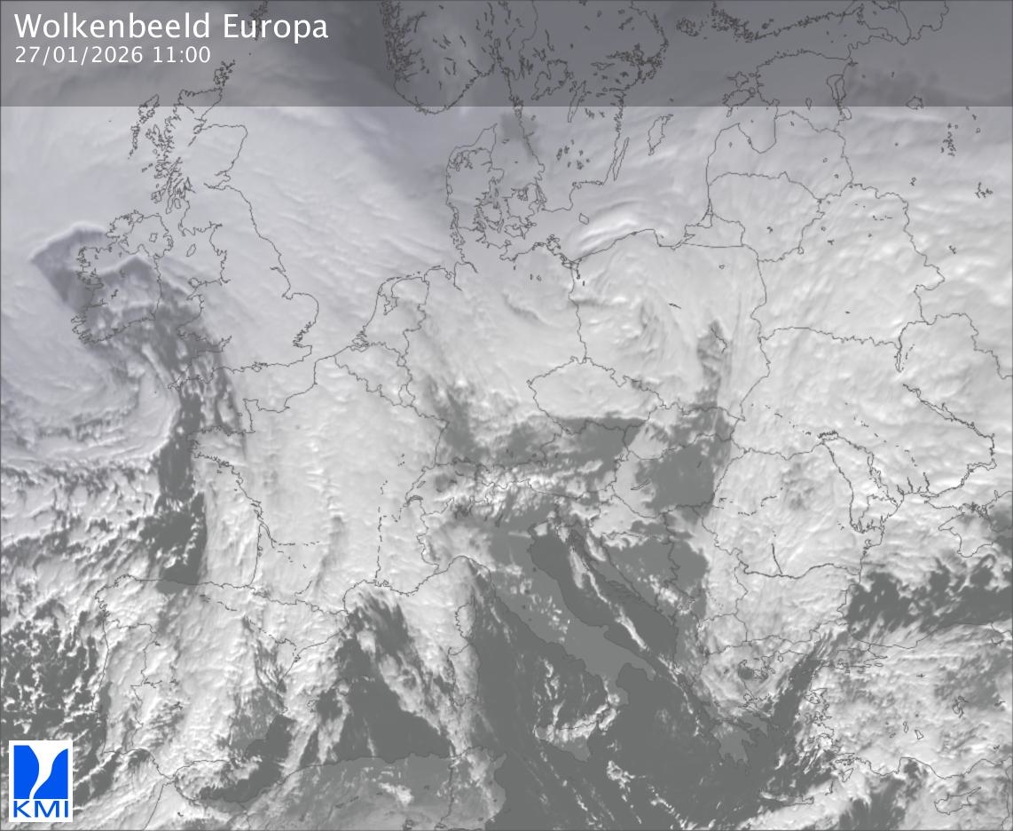 Wolkenbeelden van Europa: een combinatie uit het zichtbare (dag) en infrarode (nacht) spectrum.