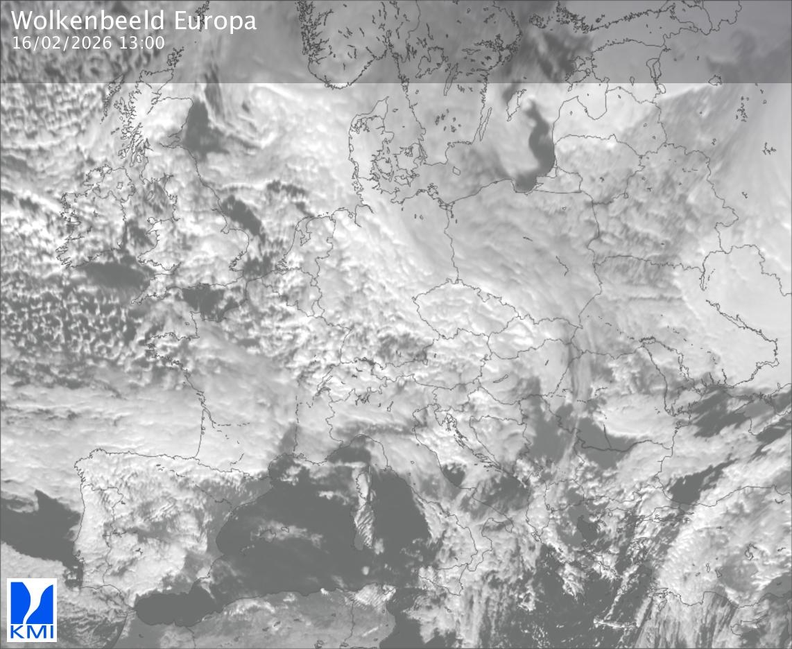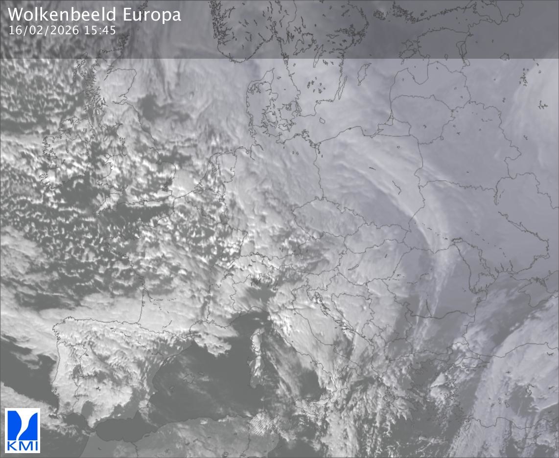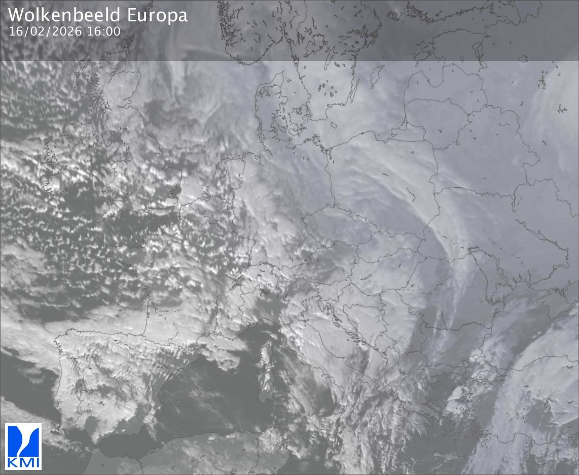 Hier ziet men wolkenbeelden die samengesteld worden door de satellietwaarnemingen uit het infrarode en het zichtbare golflengtebereik.