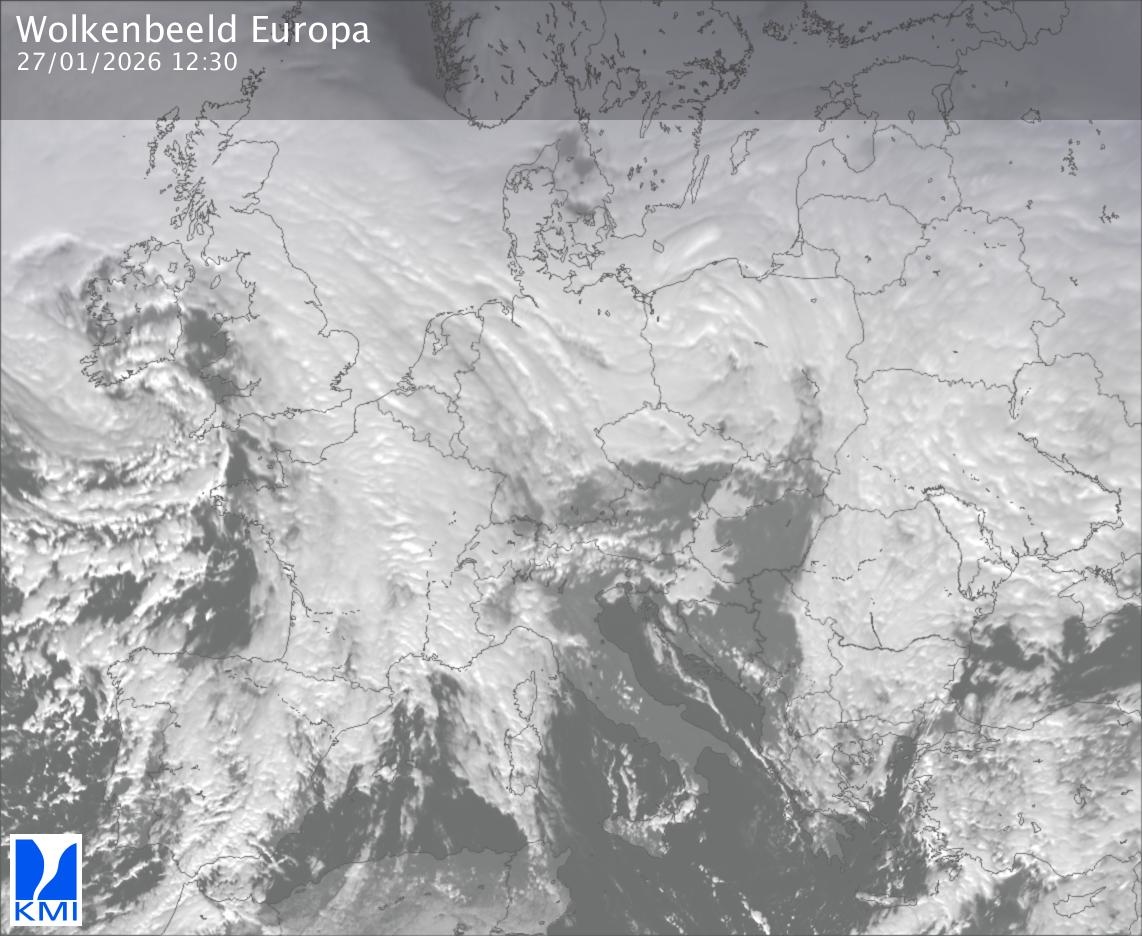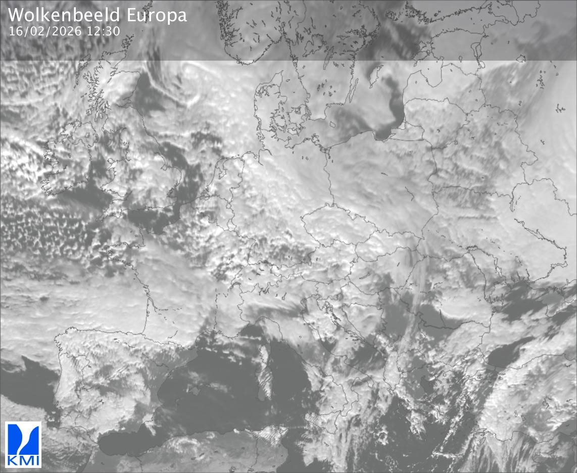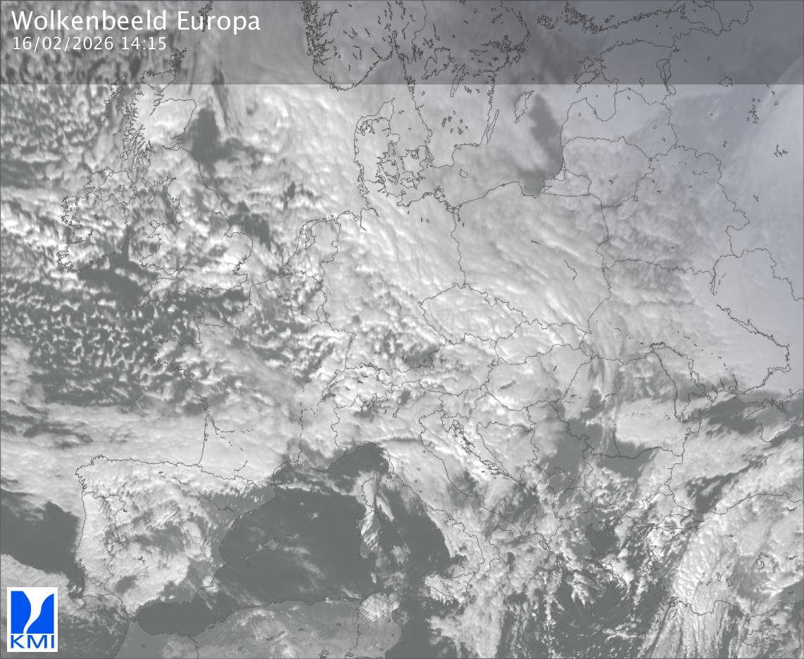 Hier ziet men wolkenbeelden die samengesteld worden door de satellietwaarnemingen uit het infrarode en het zichtbare golflengtebereik.